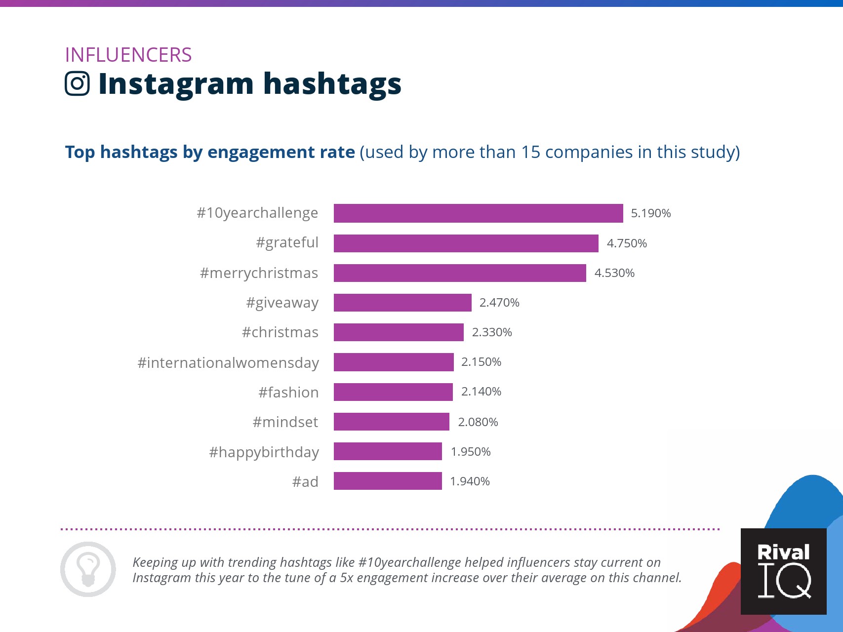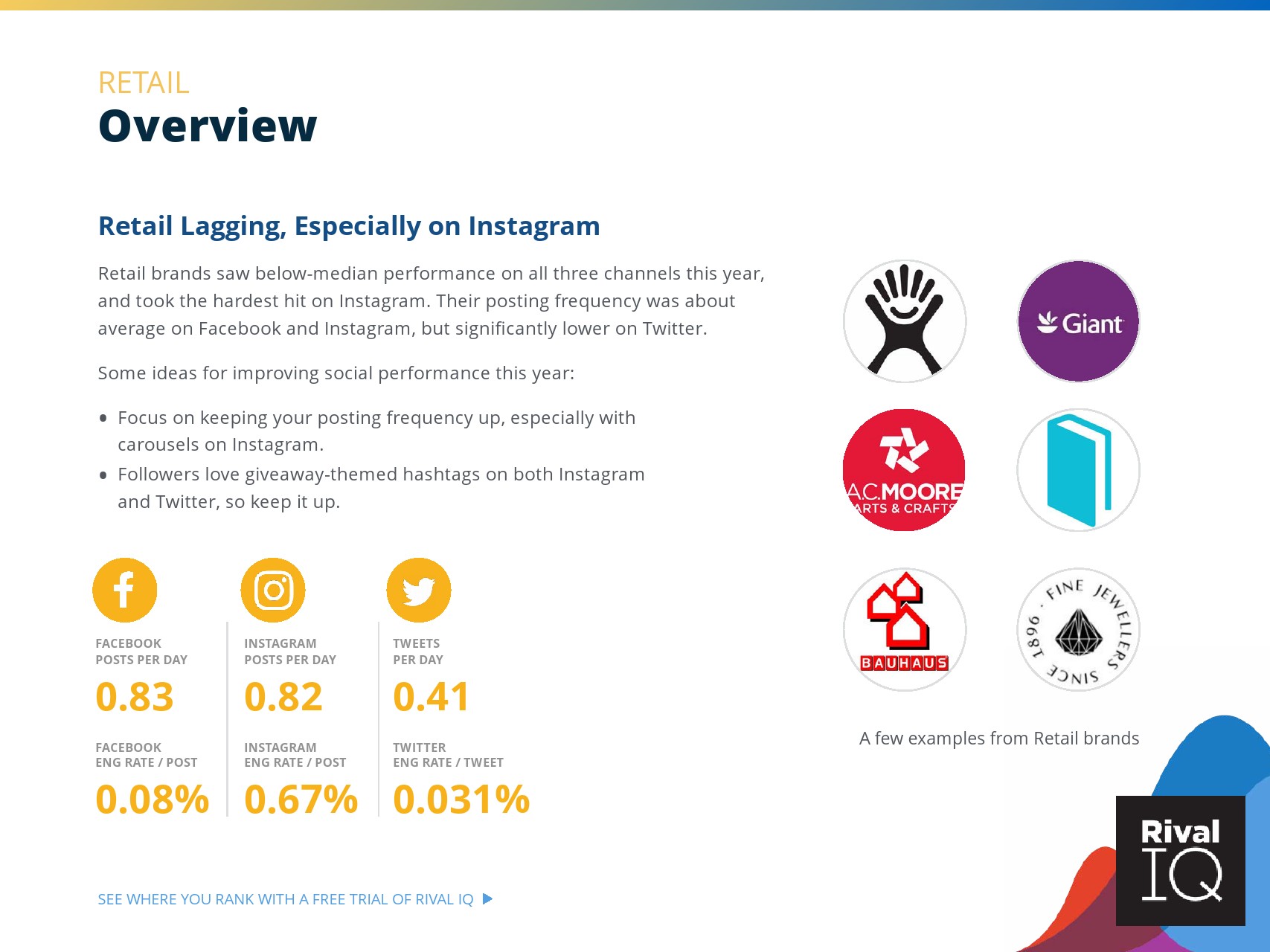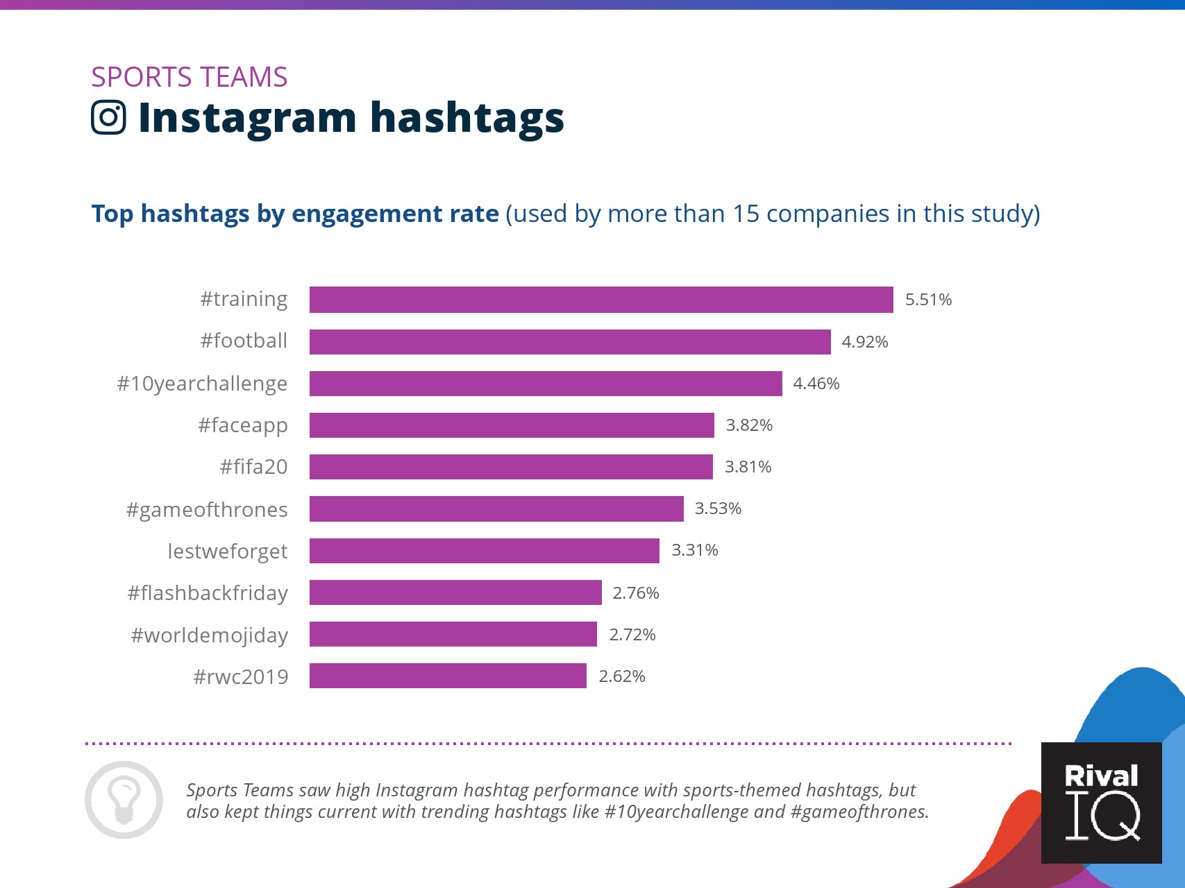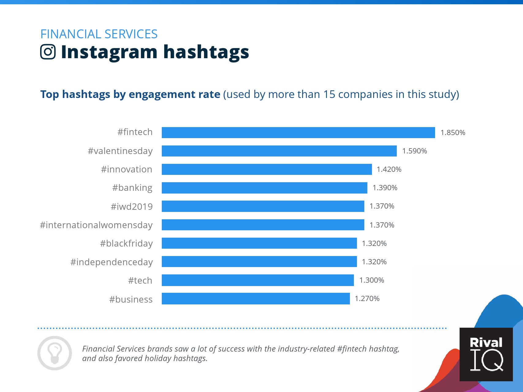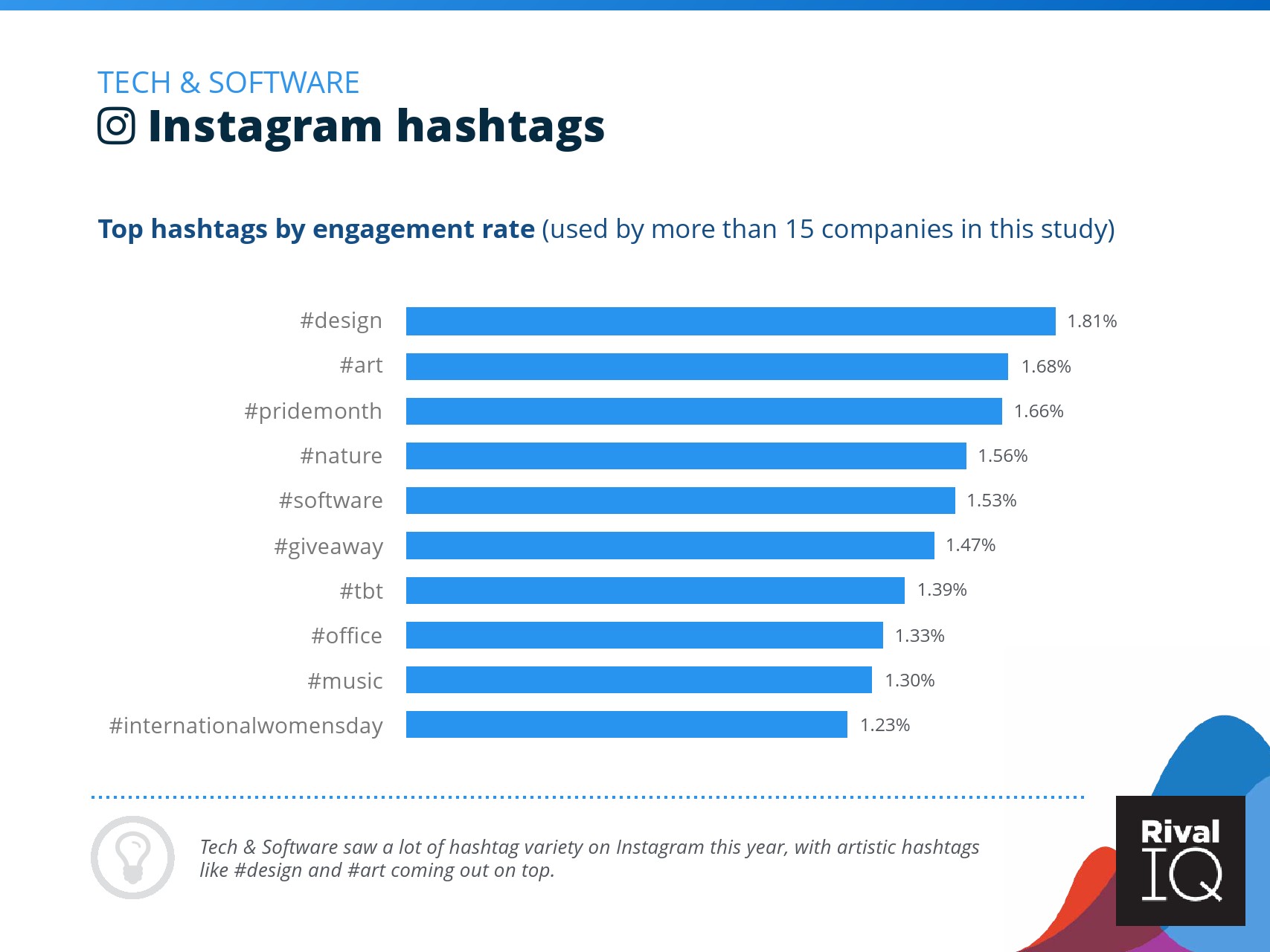 总体而言,Instagram上品牌的参与率有所下降。根据RivalIQ,今年每个行业都在Instagram上受到冲击,全行业平均参与率从1.60%降至1.22%,降幅为23%。