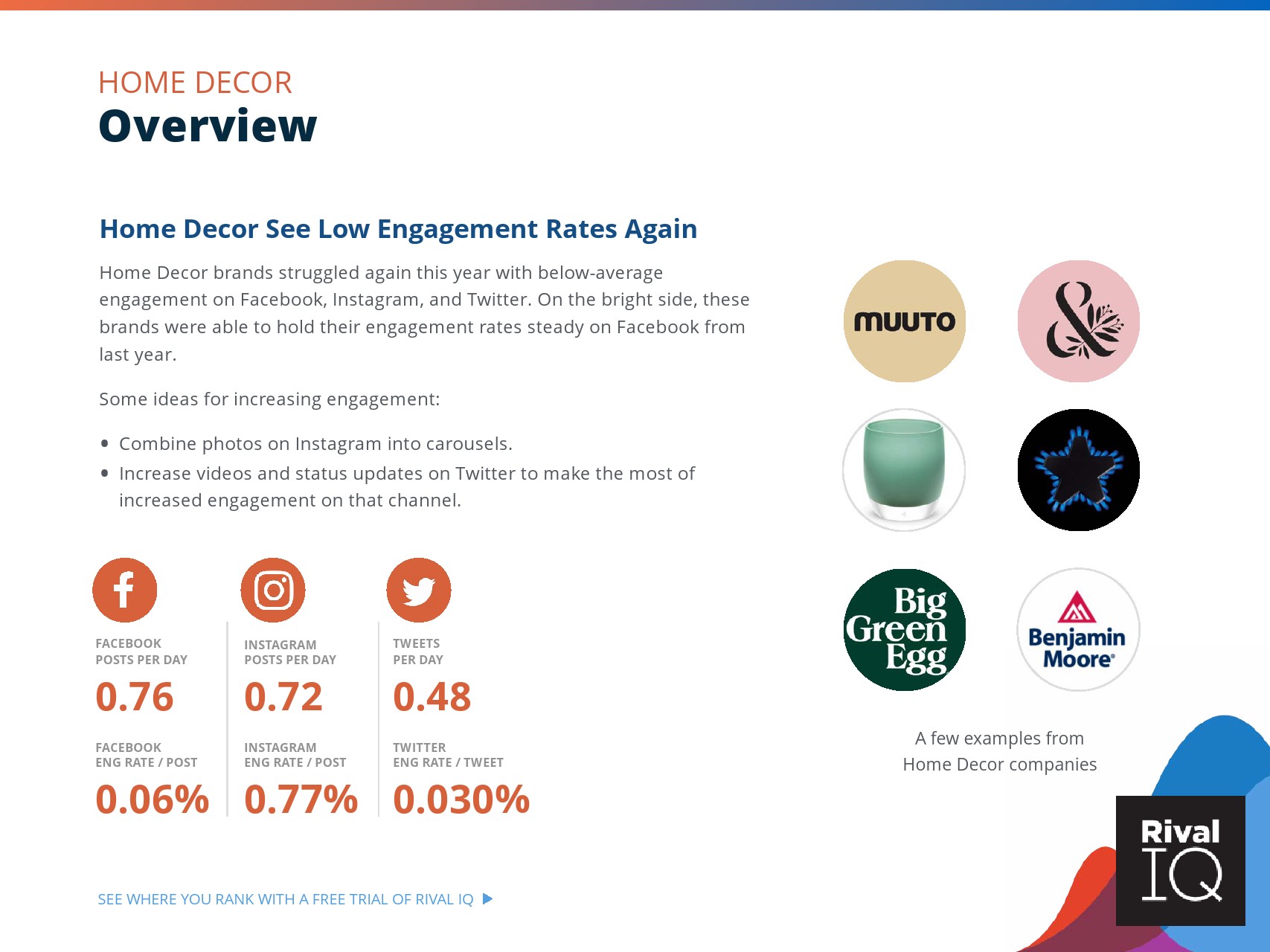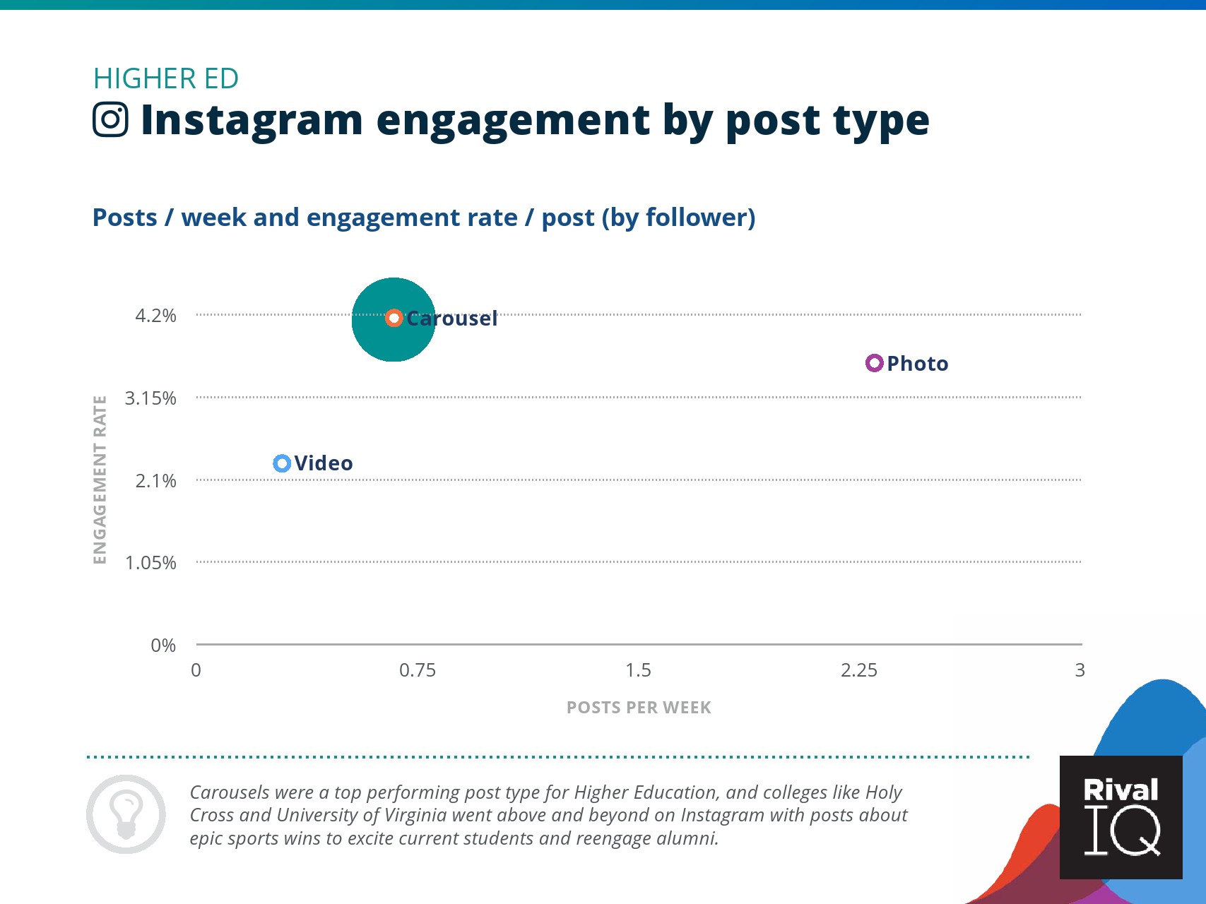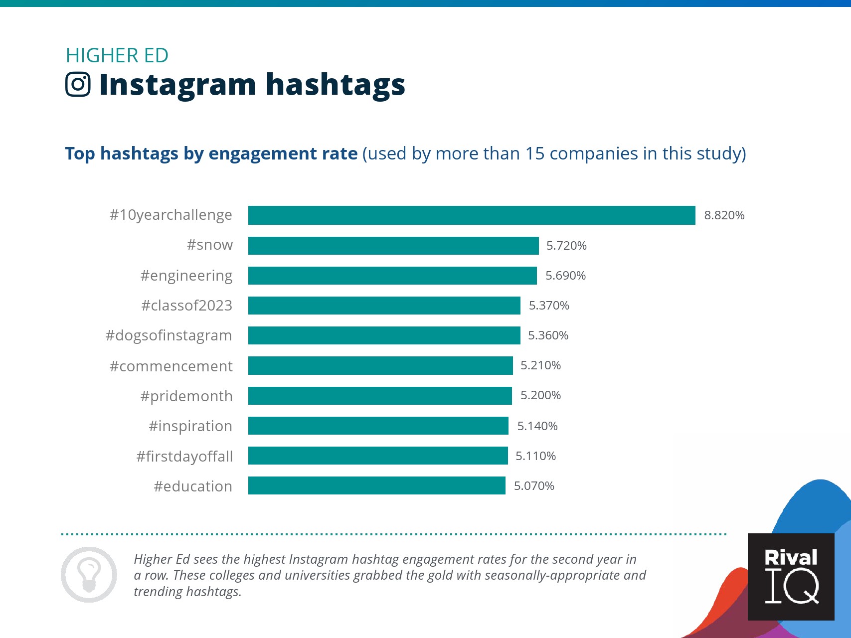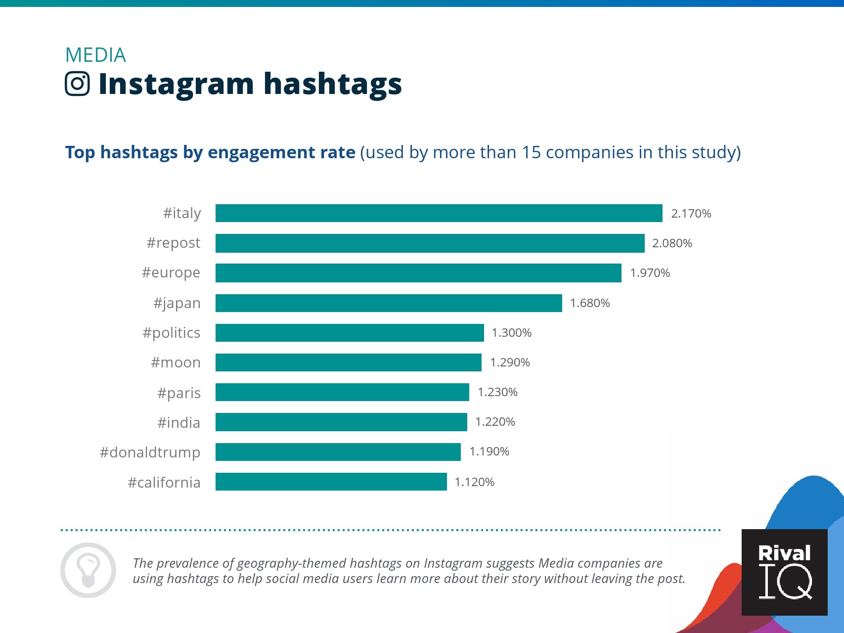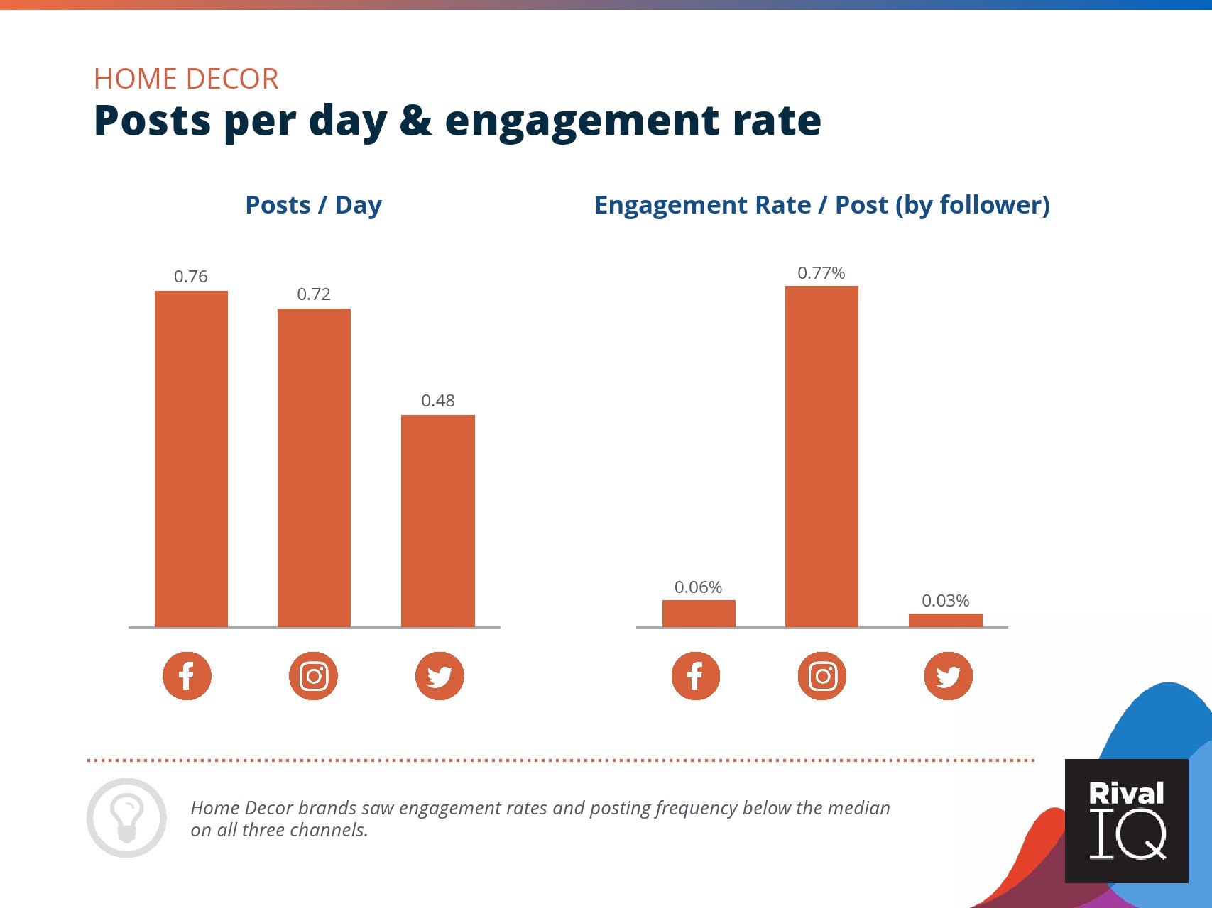 总体而言,Instagram上品牌的参与率有所下降。根据RivalIQ,今年每个行业都在Instagram上受到冲击,全行业平均参与率从1.60%降至1.22%,降幅为23%。