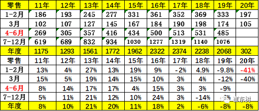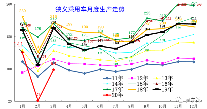 20年1-3月的全国乘用车市场累计零售302万辆,零售同比累计下降40.8%,主要是受春节时点提前的内部消费节奏因素和国内新冠疫情爆发带来的外部负面环境因素的双重影响,累计销量损失约209万台。
