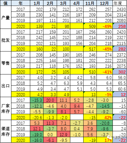 3月渠道库存下降9万台,相对于历年3月库存增长的规模。20年3月零售偏弱并未减缓渠道库存下降速度。2019年全年渠道库存下降22万台,而2018年是增长23万台,因此2020年渠道去库存还是偏低的。