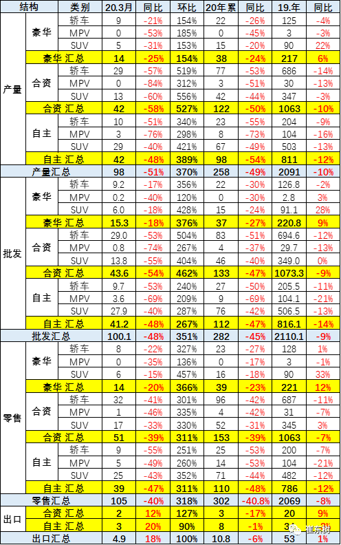 3月自主品牌稍好,但入门级消费乏力仍较明显。自主品牌批发下降48%,合资批发下降54%,豪华车下降18%,因此自主表现稍好。