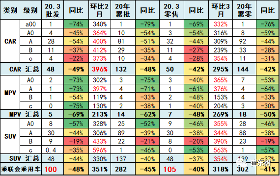 由于疫情期间部分地区车辆上牌手续暂停,因此3月交付也有延期的现象,抑制了购车积极性。