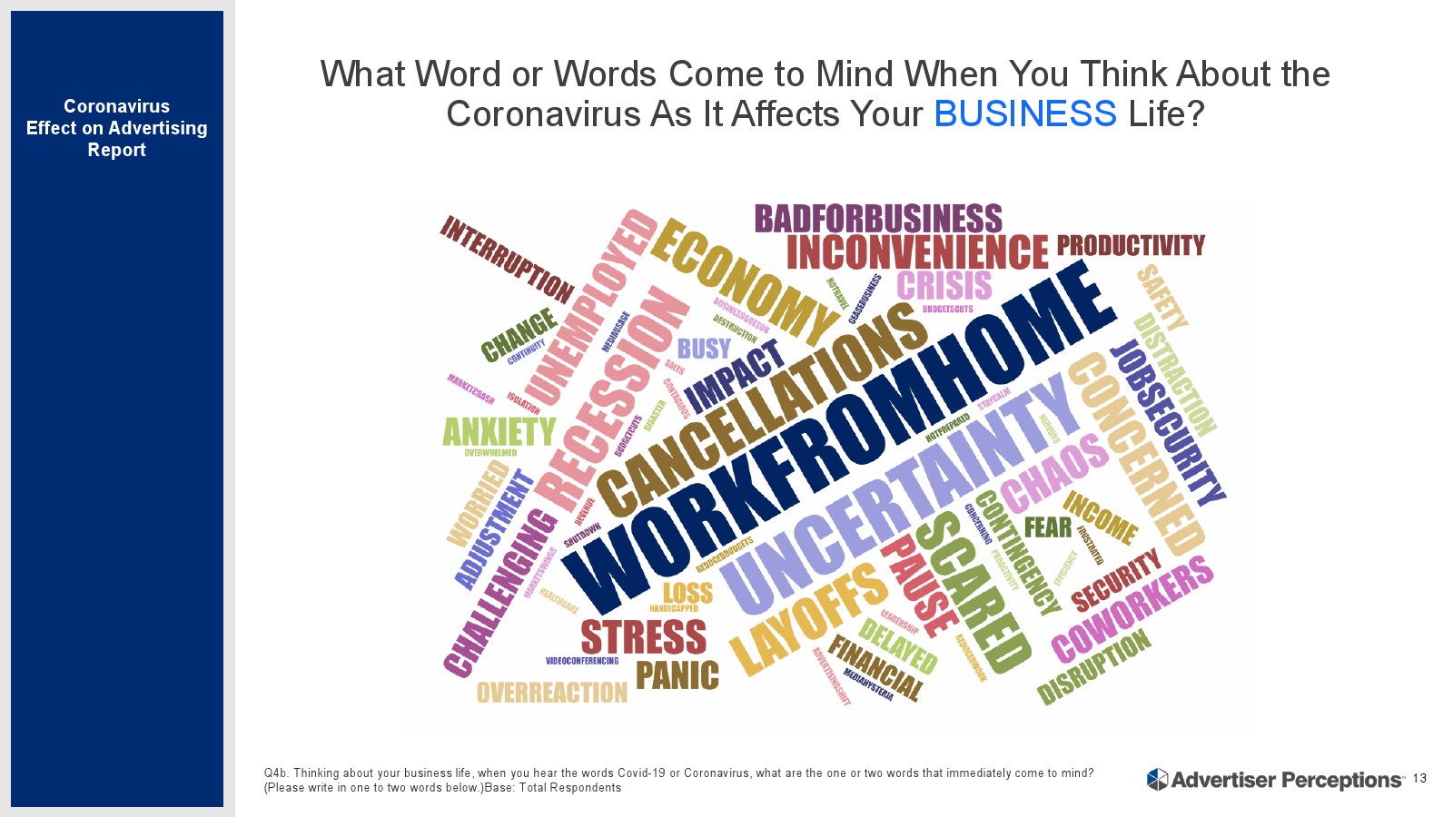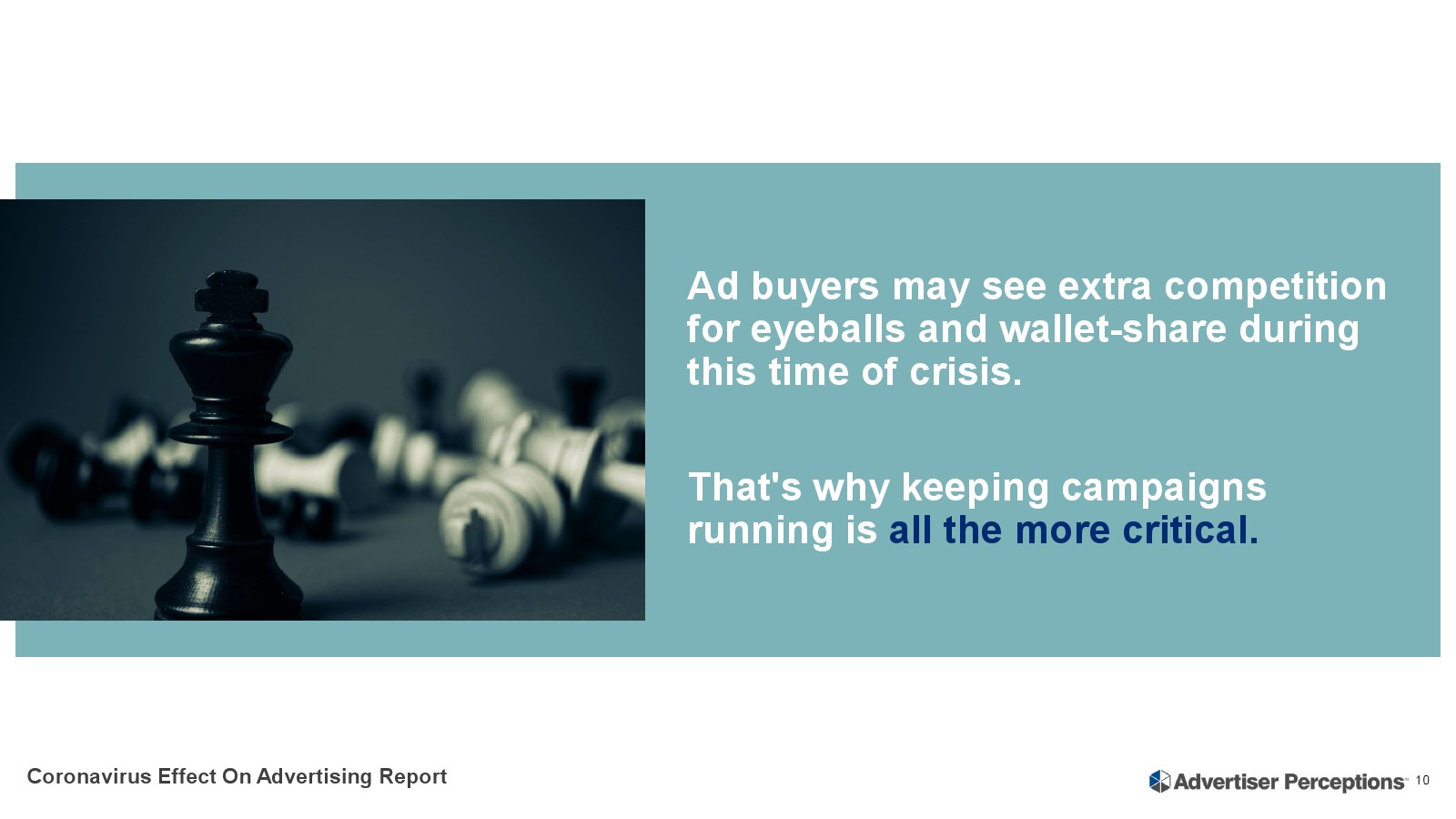 但也必须考虑到更长期的影响。为了获得广告业现在和未来几个月受到的影响的真实脉搏,Advertiser Perceptions直接调查了营销人员和代理机构,了解他们正在做什么。这项研究隶属于“冠状病毒对广告的影响报告”(CoronaVirus Effect On Advertising Report),它将每两个月更新一次,为您提供COVID-19如何影响一切的最新见解和趋势,从跨媒体、地理和格式的广告支出模式,到公司如何通过其广告创意和广告投放进入市场。