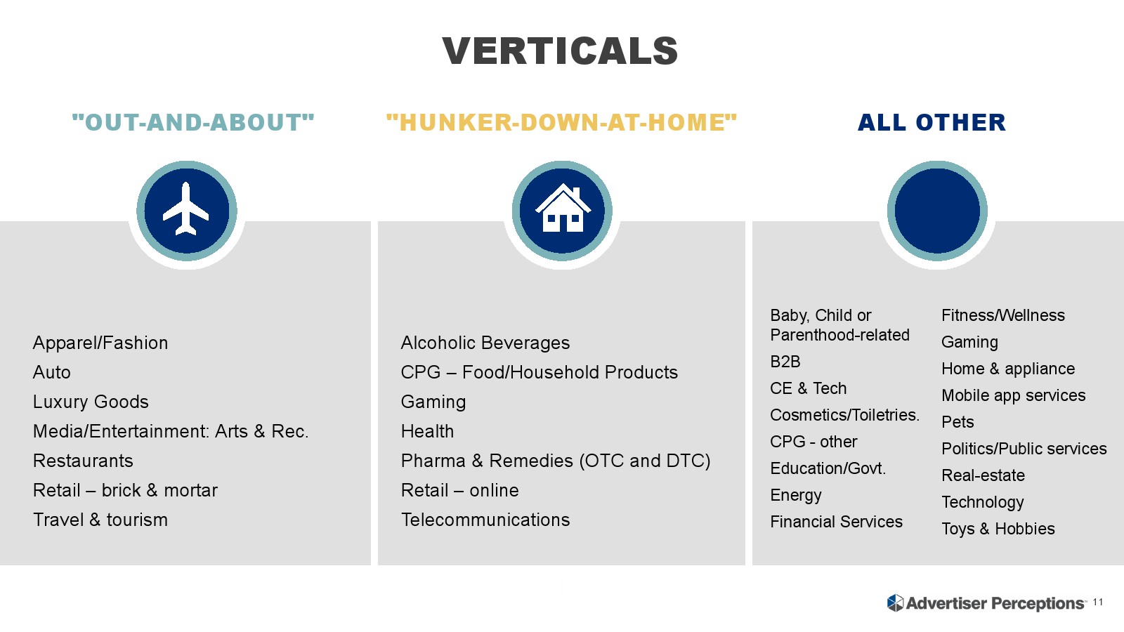 - “蹲在家里”和“无所事事”对垂直行业的影响各不相同,如服饰、汽车、奢侈品、媒体和娱乐、餐饮、零售,以及旅游业。另一方面,饮料、快速消费品,游戏、健身、药店、在线零售和电信业则因为人们呆在家里而迎来更多机遇。