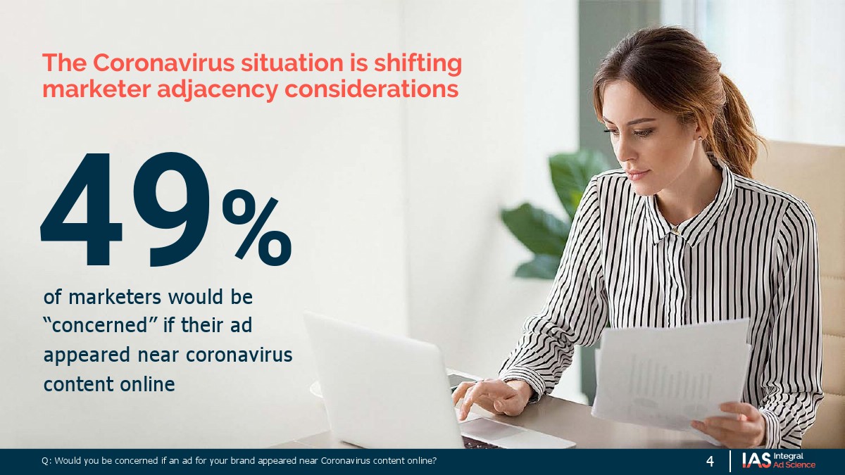 49%的营销人员担心自己的广告出现在冠状病毒内容的附近。