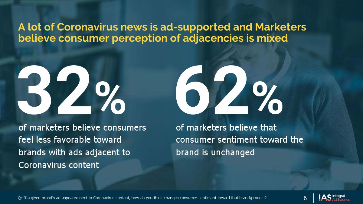 IAS发布了“消费者对冠状病毒——广告相邻性的考虑”,探讨在当前全球冠状病毒形势下,消费者对广告的认知发生了怎样的变化。作为即刻的后续行动,IAS已经扩展了最初的研究,以更好地了解当前情况下的营销人员的看法。这项研究揭示了随着这种前所未有的情况日益展开,营销人员对出现在冠状病毒报道附近的广告是如何反应的。