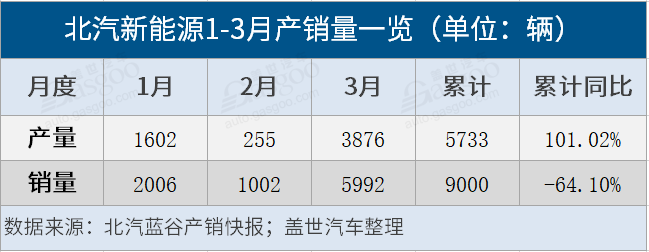 其中,2月产销量分别为255辆(去年同期500辆)、1002辆(去年同期2867辆),同比分别下降49%、65.05%;1月的产销量分别为1602辆(去年同期142辆)、2006辆(去年同期为4512辆),同比分别增长102.82%、-55.54%。