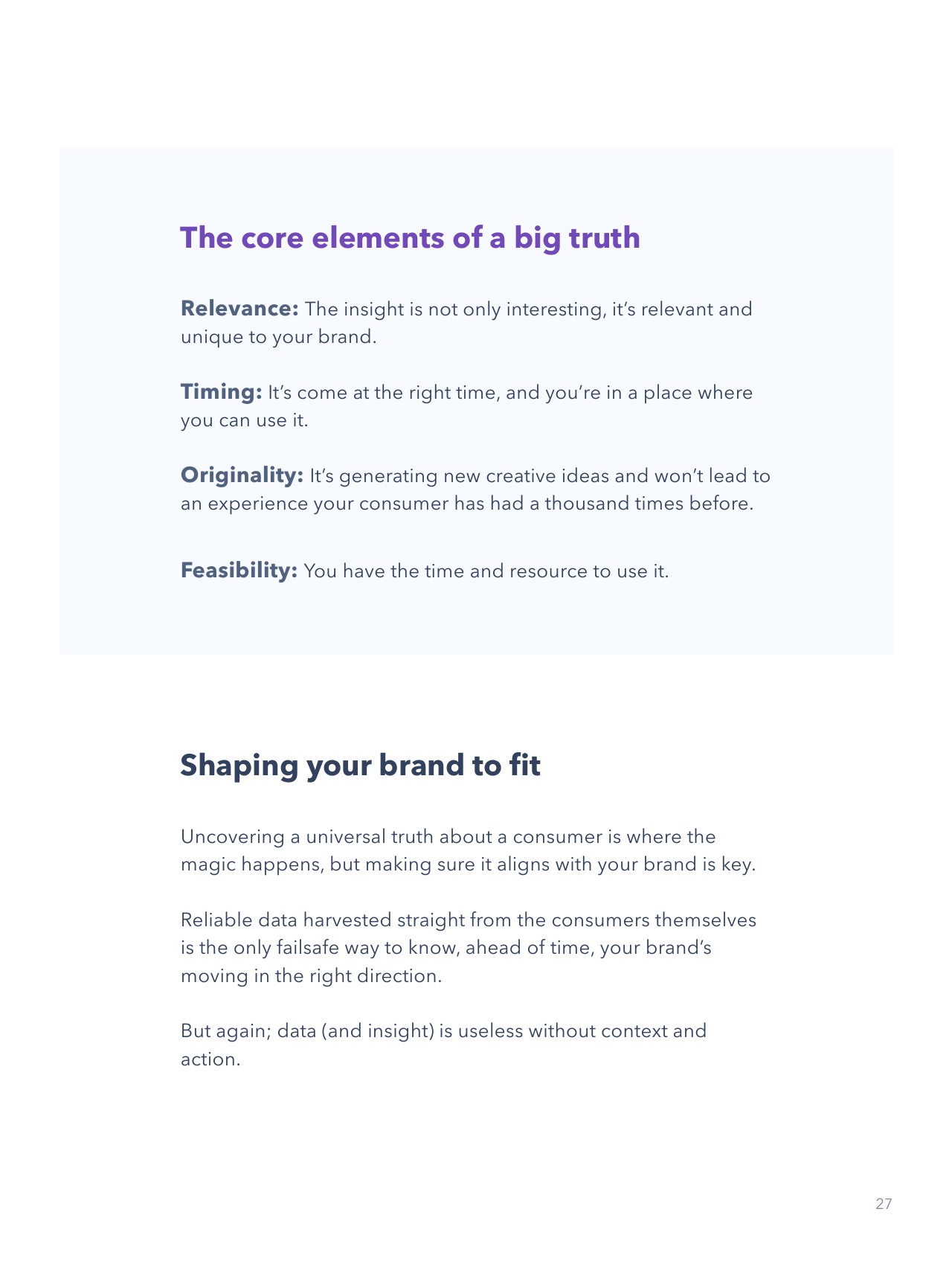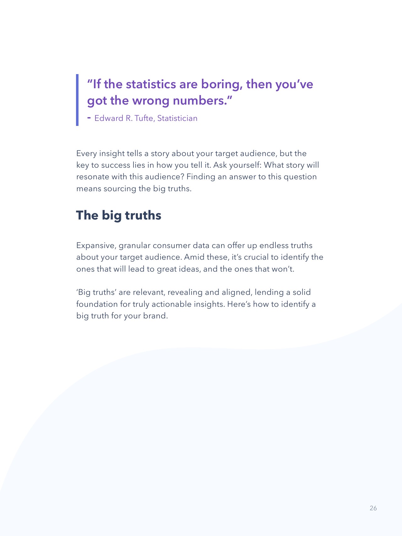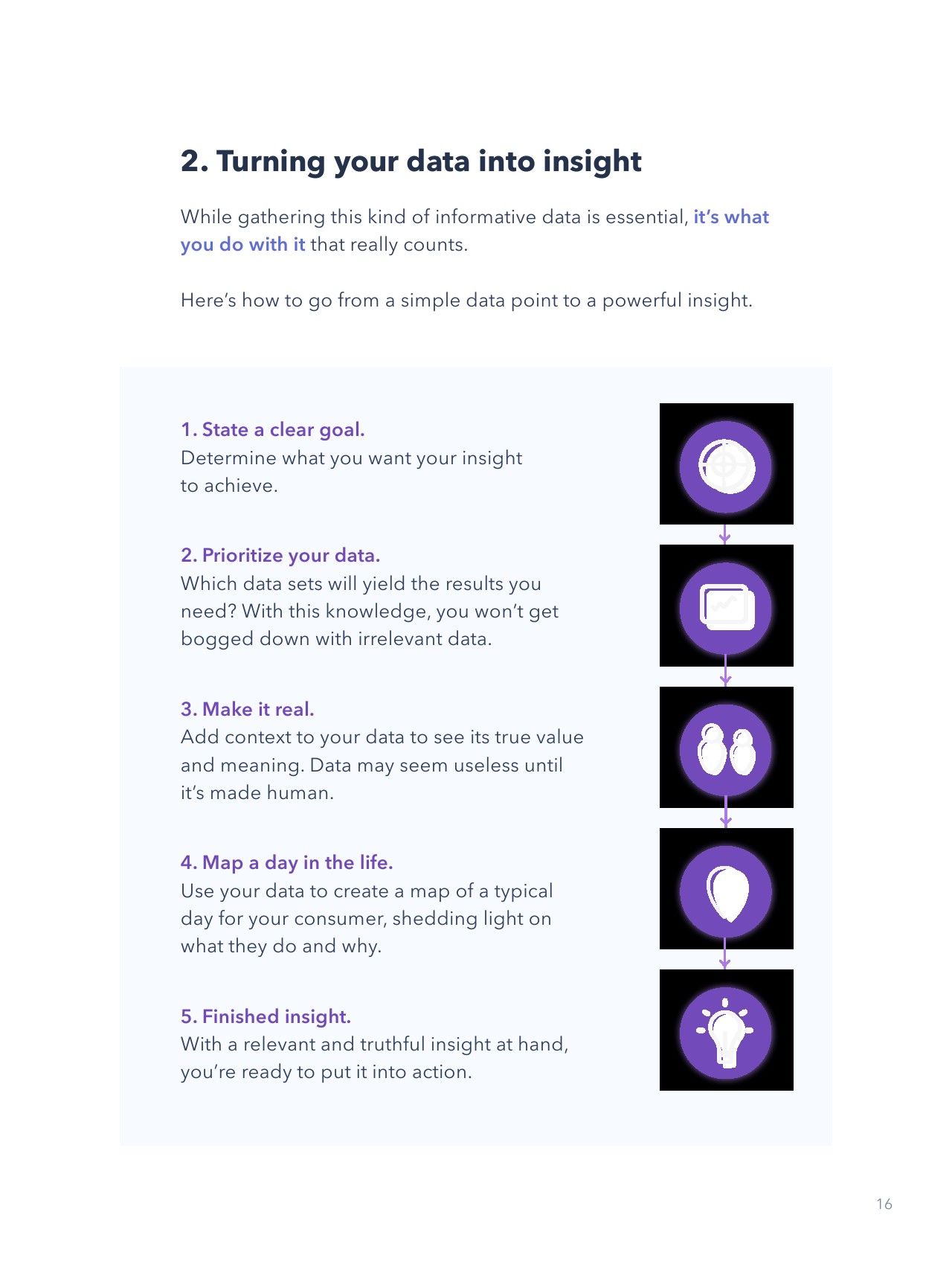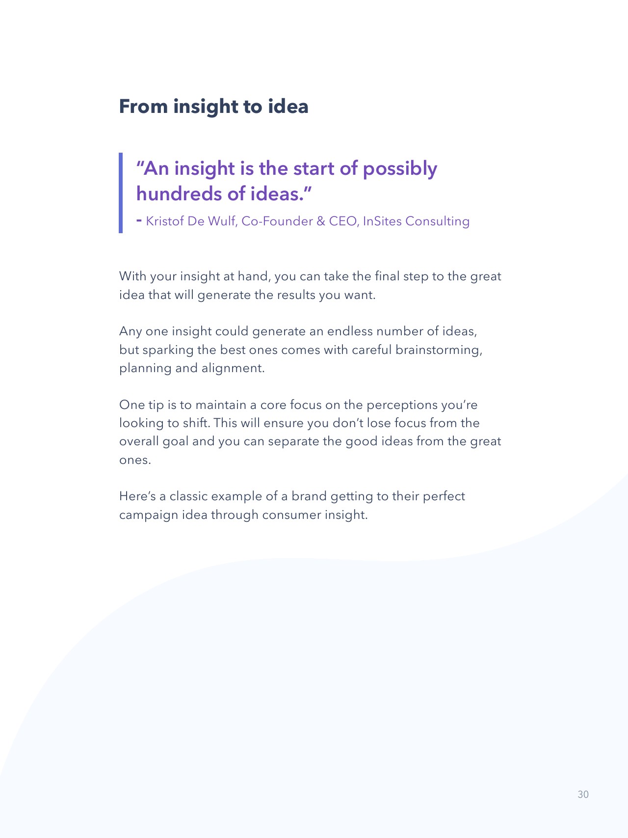 现在的品牌可以访问无穷无尽的数据,但数据丰富并不意味着你有洞察力。洞察力是关于客户的普遍的、人类的真理。它揭示了关于客户的独特的看法和行为,你可以从中了解客户的真实面目。