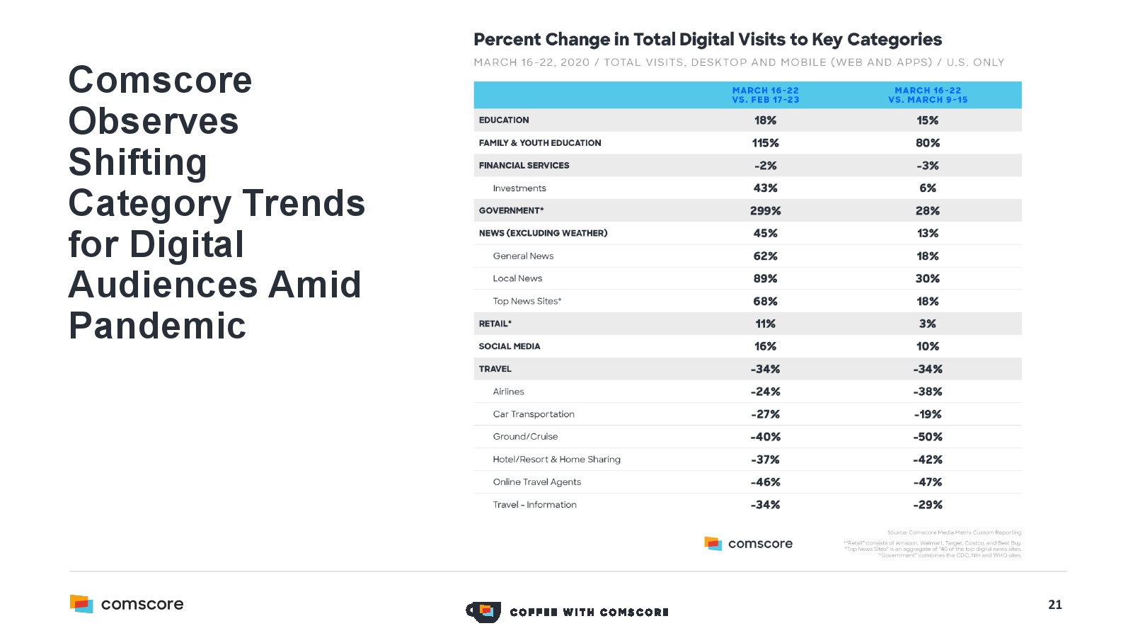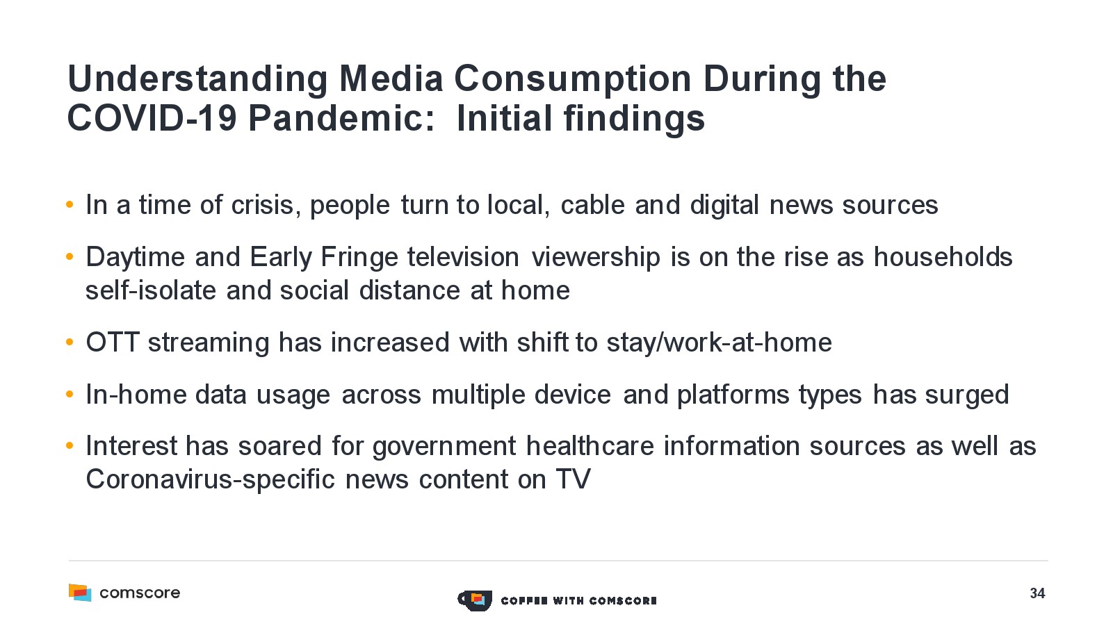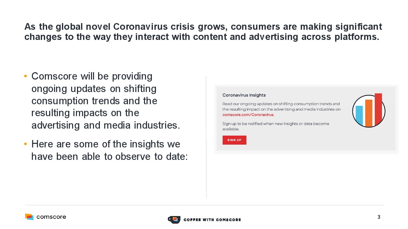 comScore发布了新报告“COVID-19期间媒体使用情况”。随着全球新冠状病毒危机的发展,消费者正在对他们跨平台与内容和广告互动的方式做出重大改变。