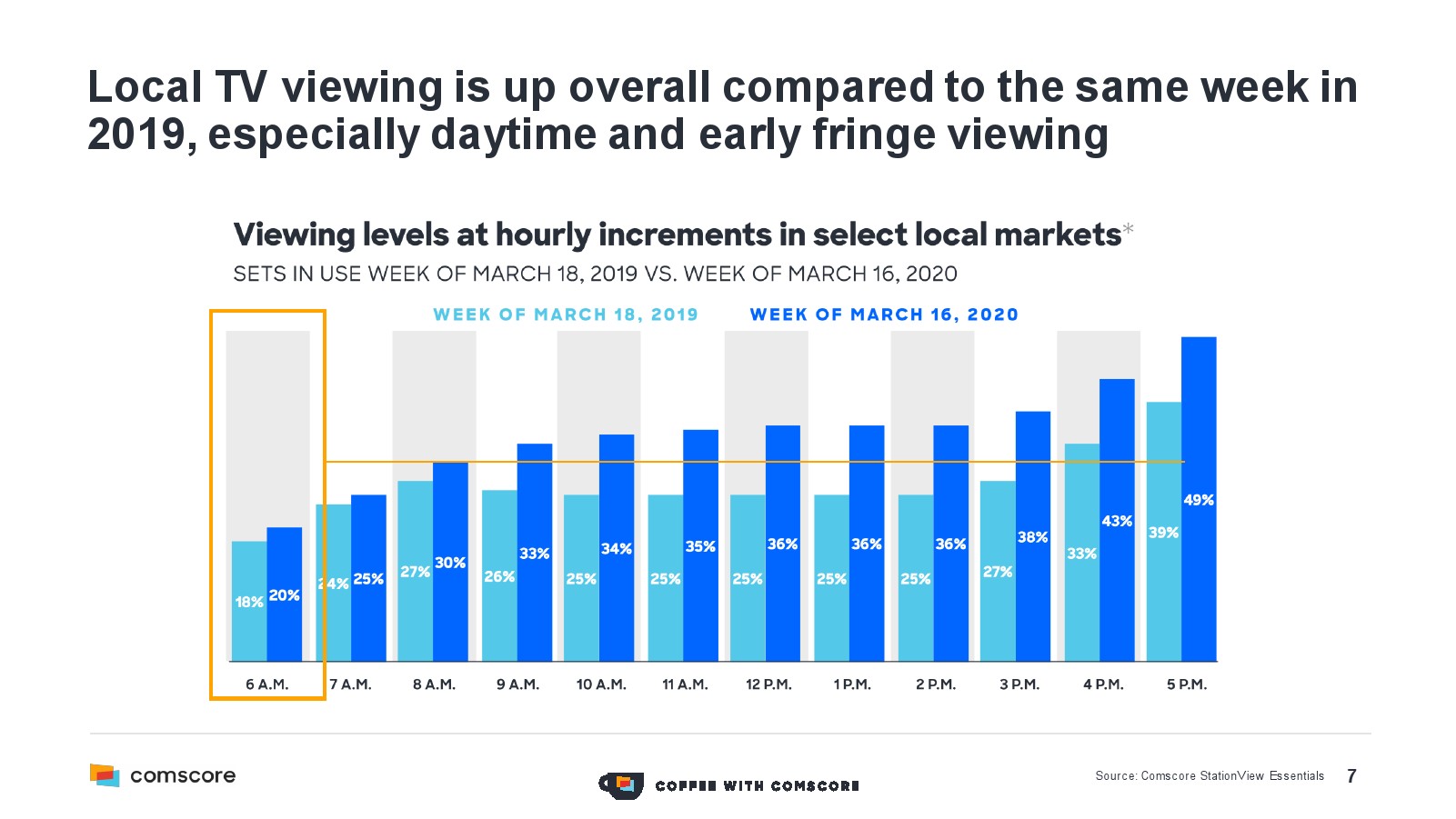 与2019年相比,本地电视收视率总体上升,特别是白天和早晨的收视率。