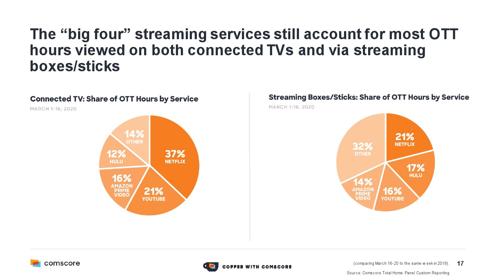 “四大”流媒体服务仍然主宰联网电视和流媒体盒/棒的访问量。