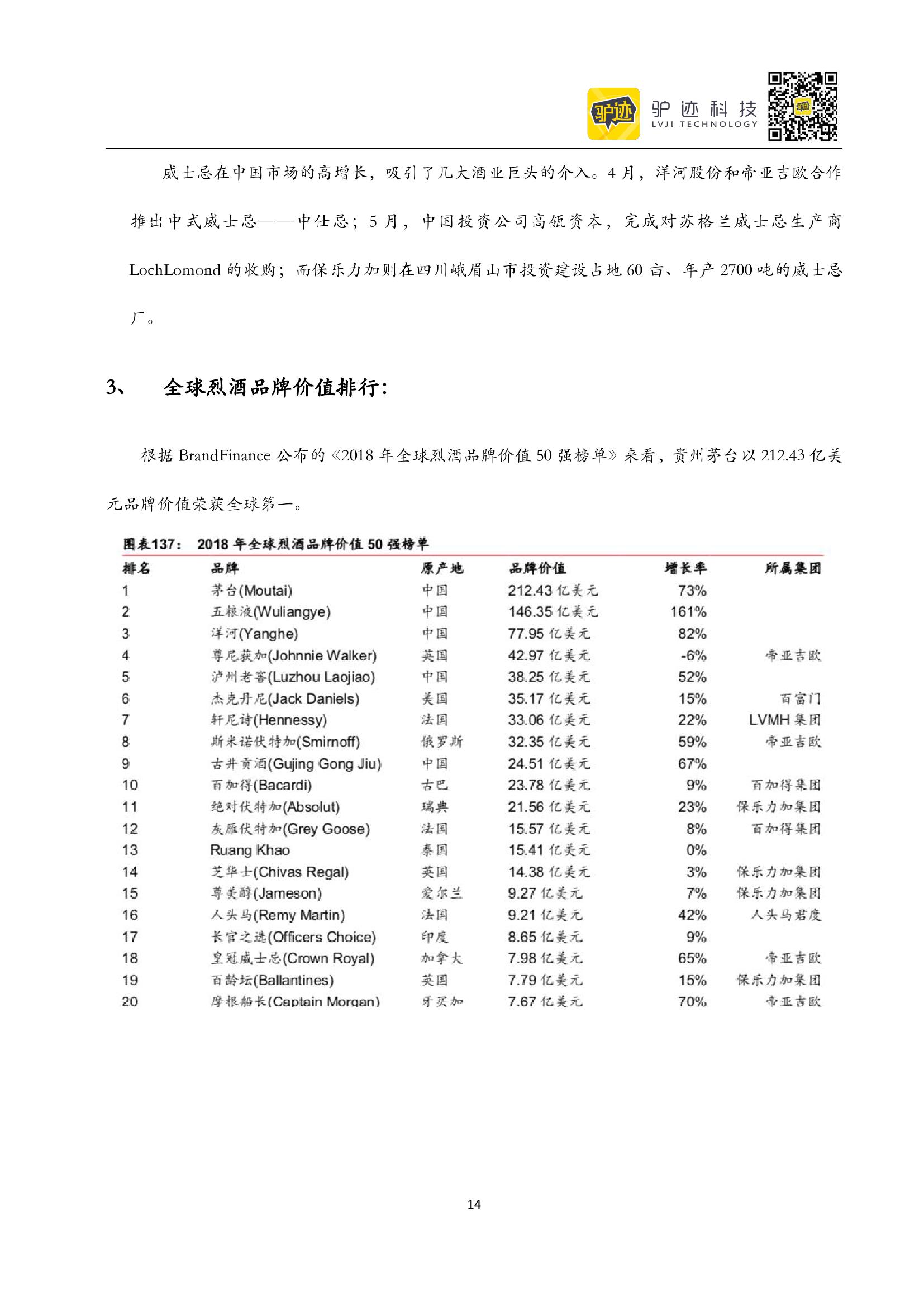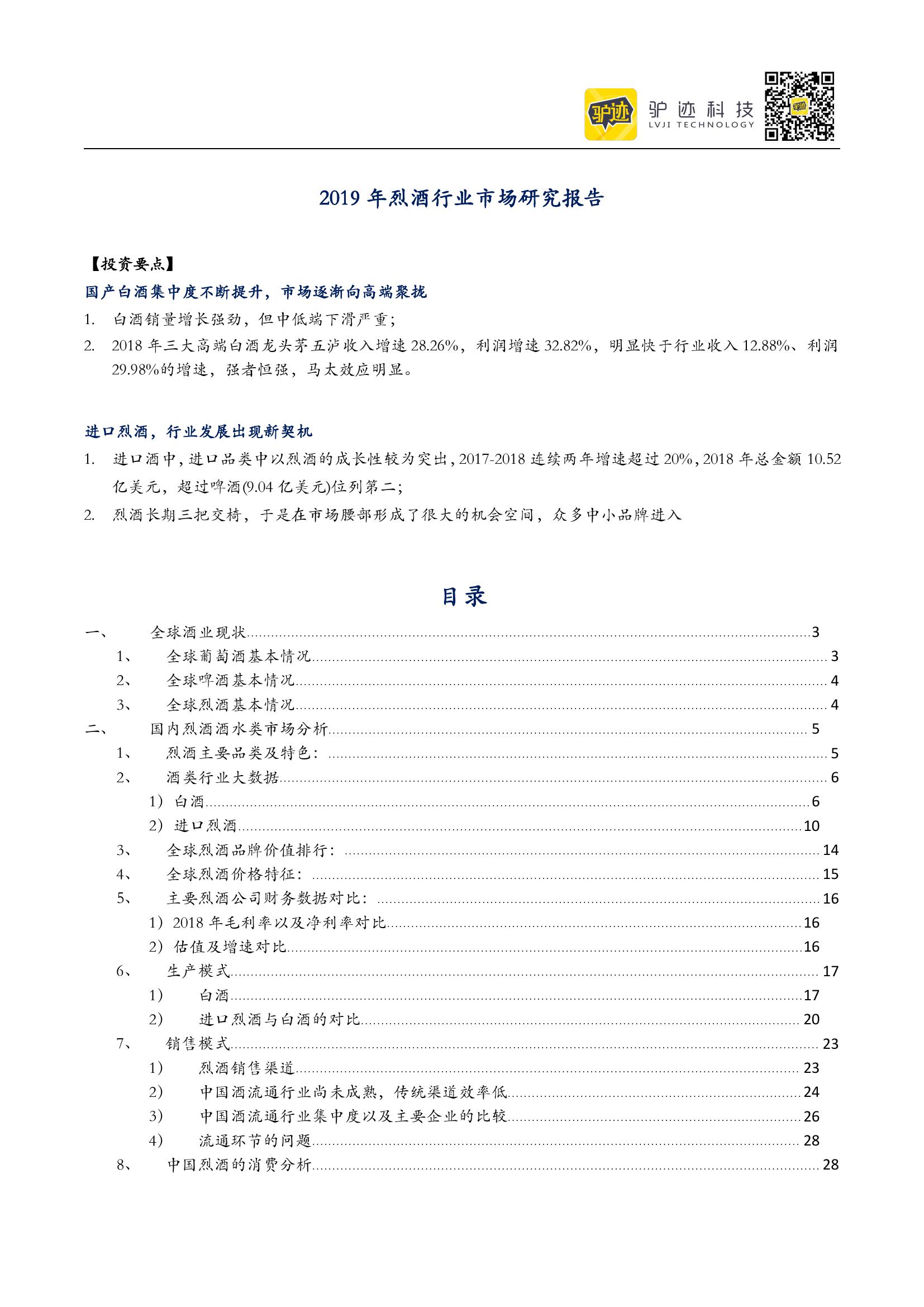 驴迹:2019年烈酒行业市场研究报告 PDF版本将分享到199IT交流群,支持我们发展可加入! 更多阅读:百度:2019年互联网3C维修用户行为报告2019年世界发展报告:工作性质的变革(中文版)eboR:疫情期间电梯媒体市场研究报告中国国际商会&德勤&阿里研究院:2018中国进口消费市场研究报告CNNIC:2013年中国网络购物市场研究报告零点数据:2019年90后孕妈行为洞察报告极光大数据:2017年8月在线教育市场研究报告德勤&天猫国际:2020中国进口消费市场研究报告2019年喜茶经营数据中国民航局:2019年民航行业发展统计公报教育部:2019年全国教育事业发展统计公报小葫芦:2019年MCN机构价值白皮书联合国:2019年工业组织发展报告2019年B站年营收67.8亿,净亏损12.88亿元,还有这些数据值得关注2019年快手内容报告