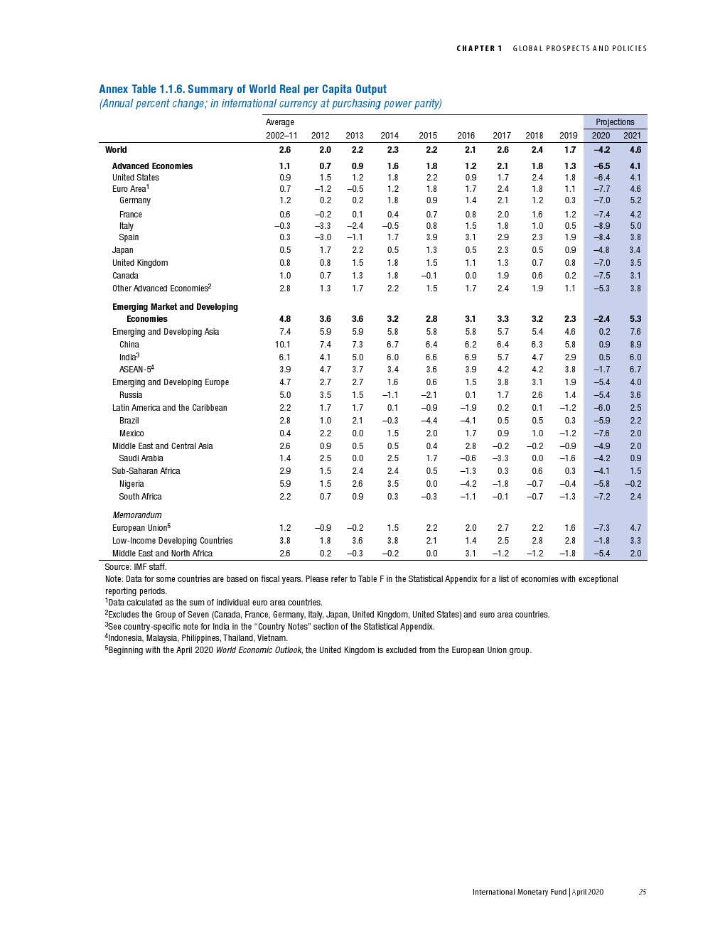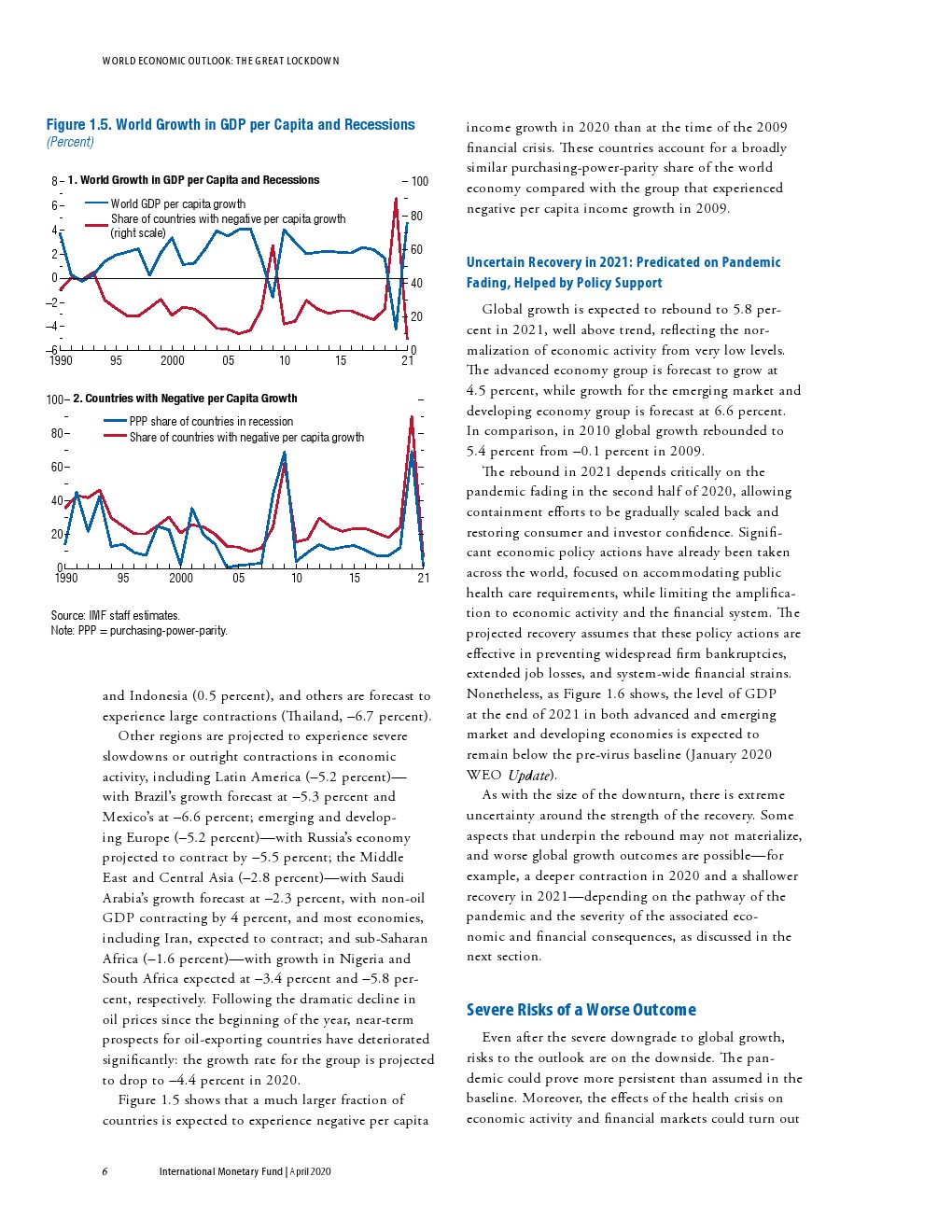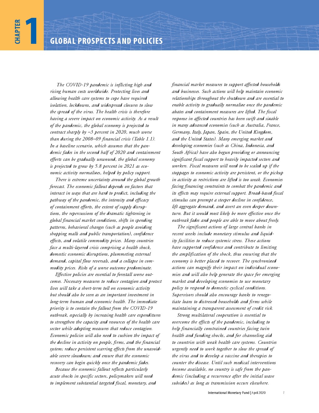 国际货币基金组织发布了“2020年4月全球经济概览”。由于COVID-19大流行,预计2020年全球经济将大幅收缩3%,比2008-09年金融危机期间严重得多。