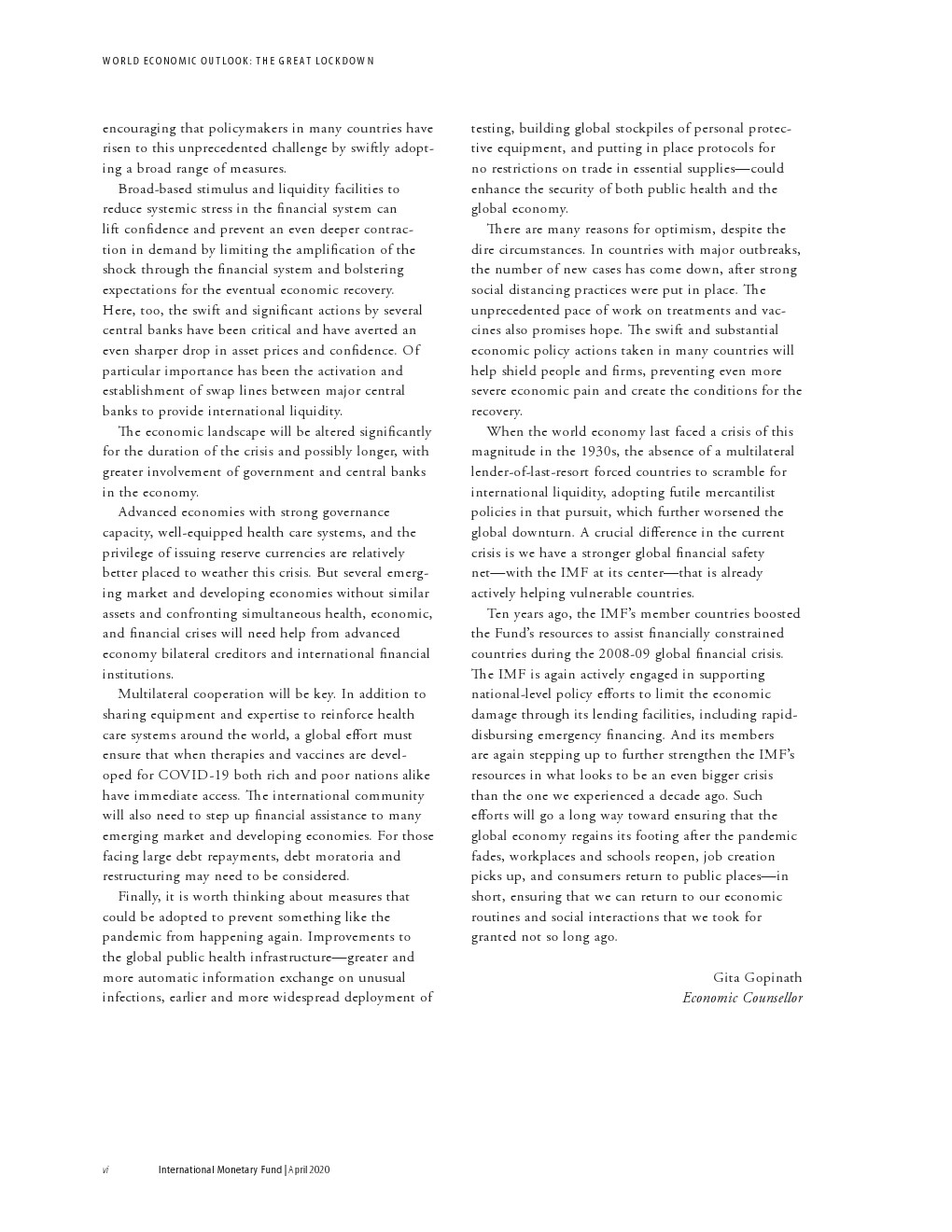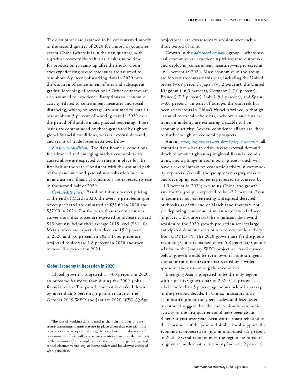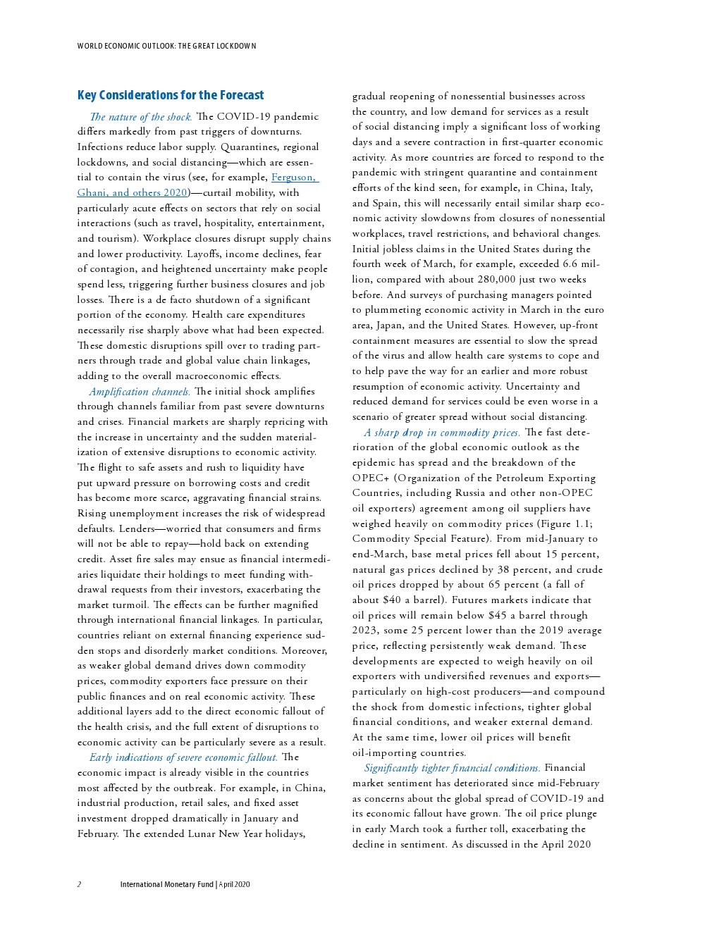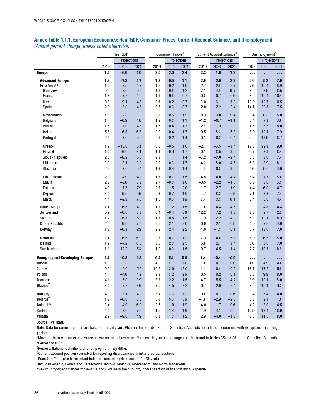 国际货币基金组织发布了“2020年4月全球经济概览”。由于COVID-19大流行,预计2020年全球经济将大幅收缩3%,比2008-09年金融危机期间严重得多。