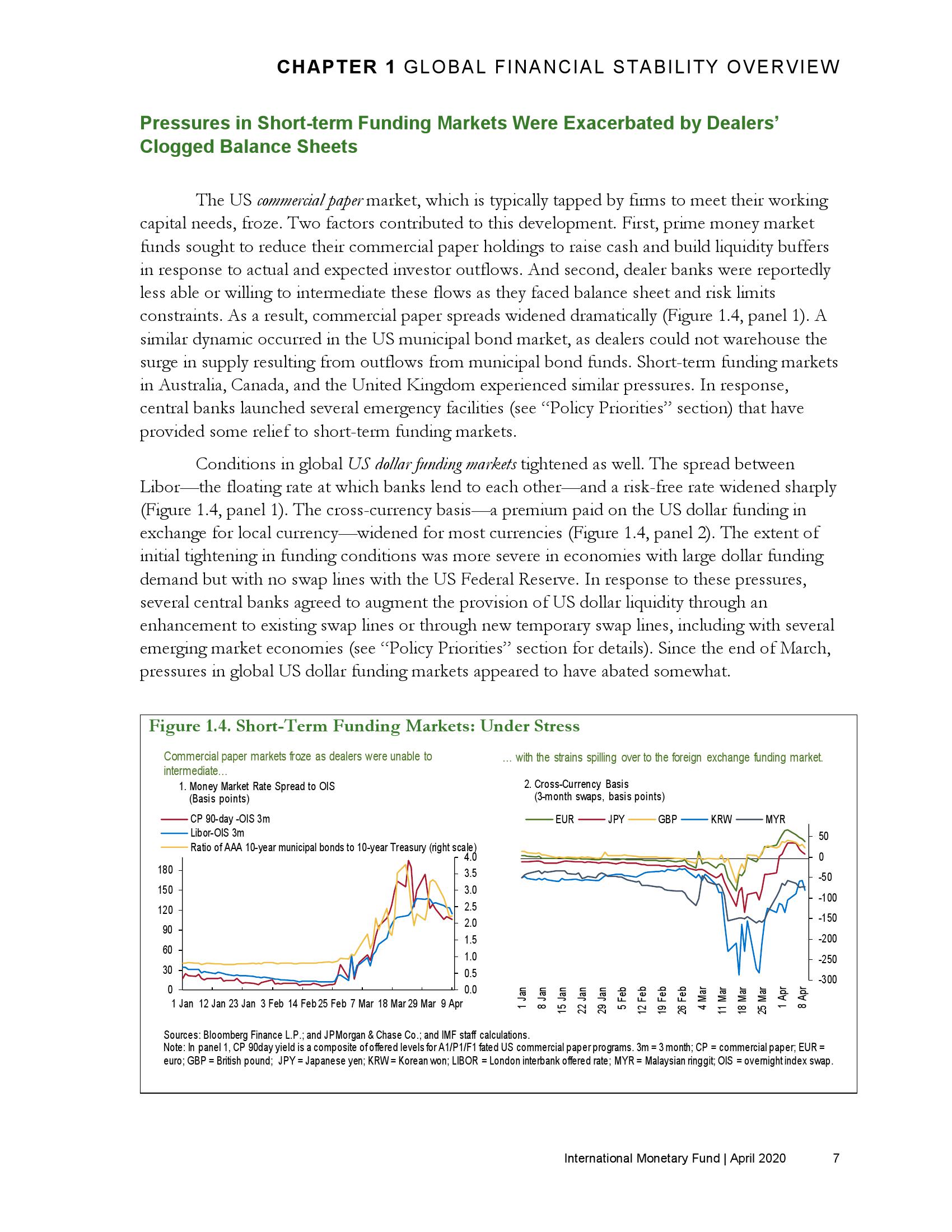 《报告》认为,多个因素放大了资产价格变动,导致金融条件以前所未有的速度急剧收紧。主要短期融资市场出现承压迹象,包括全球美元市场,与十年前金融危机时期的市场动态十分相似。
