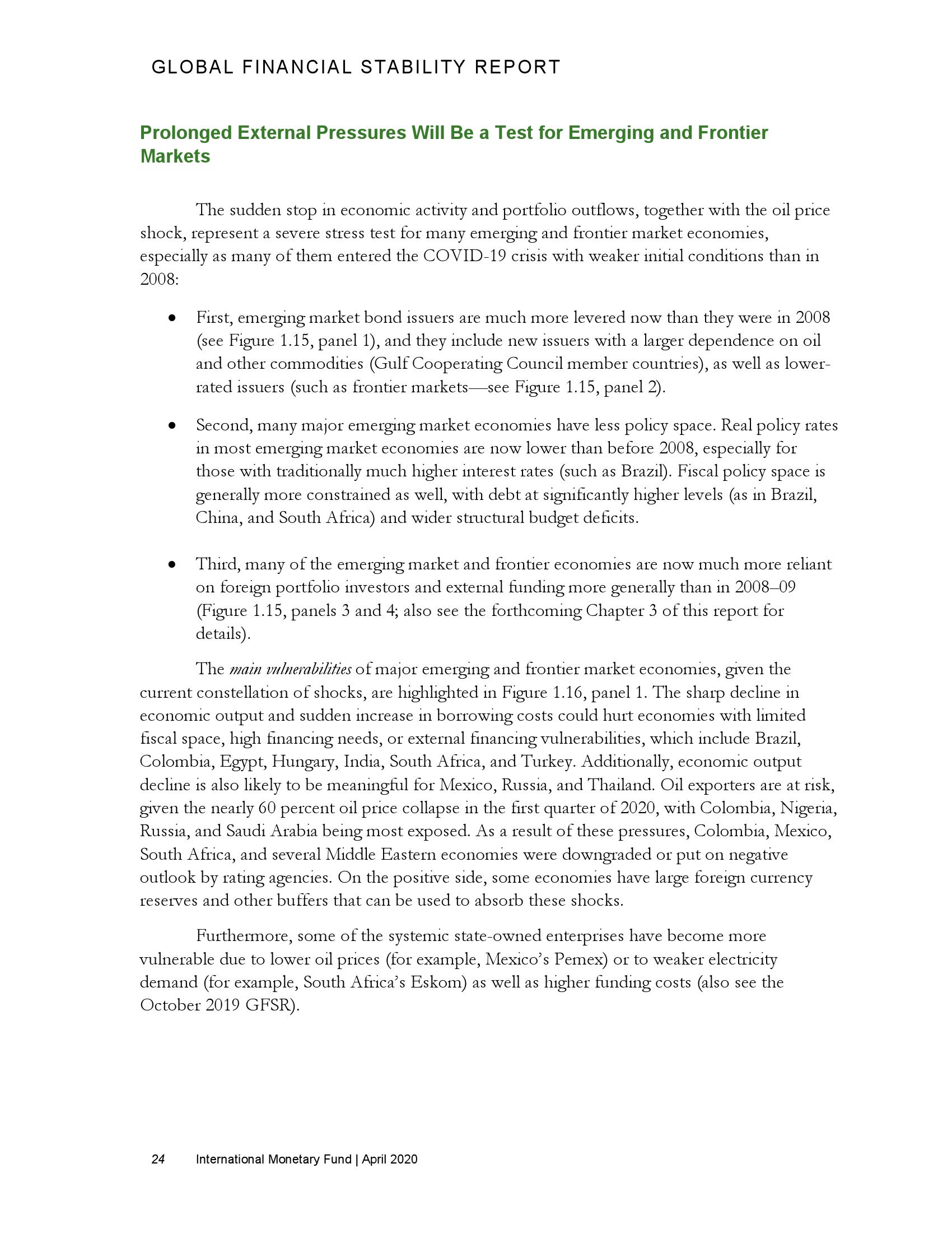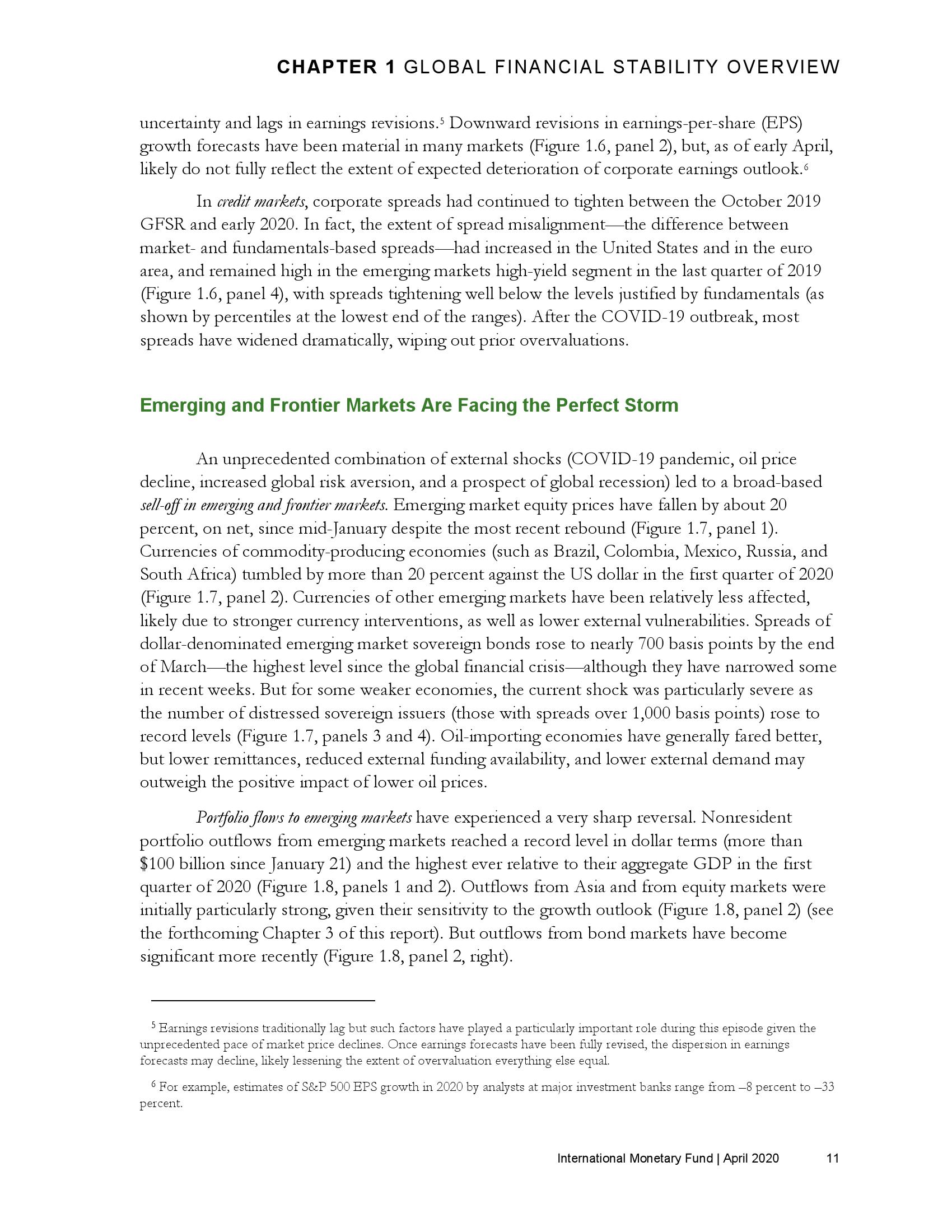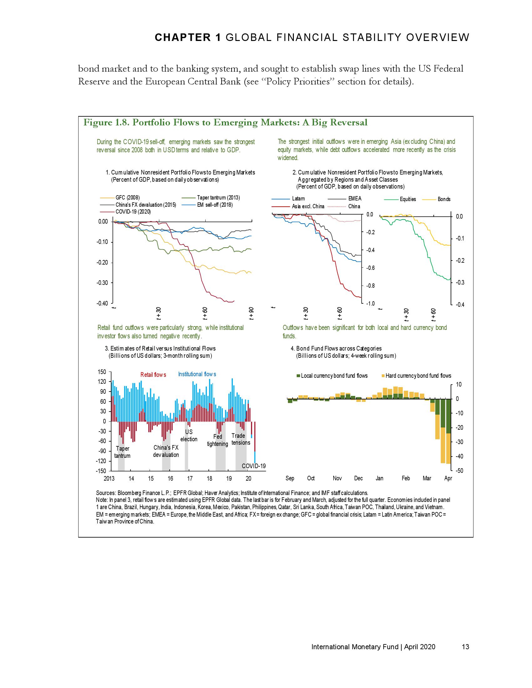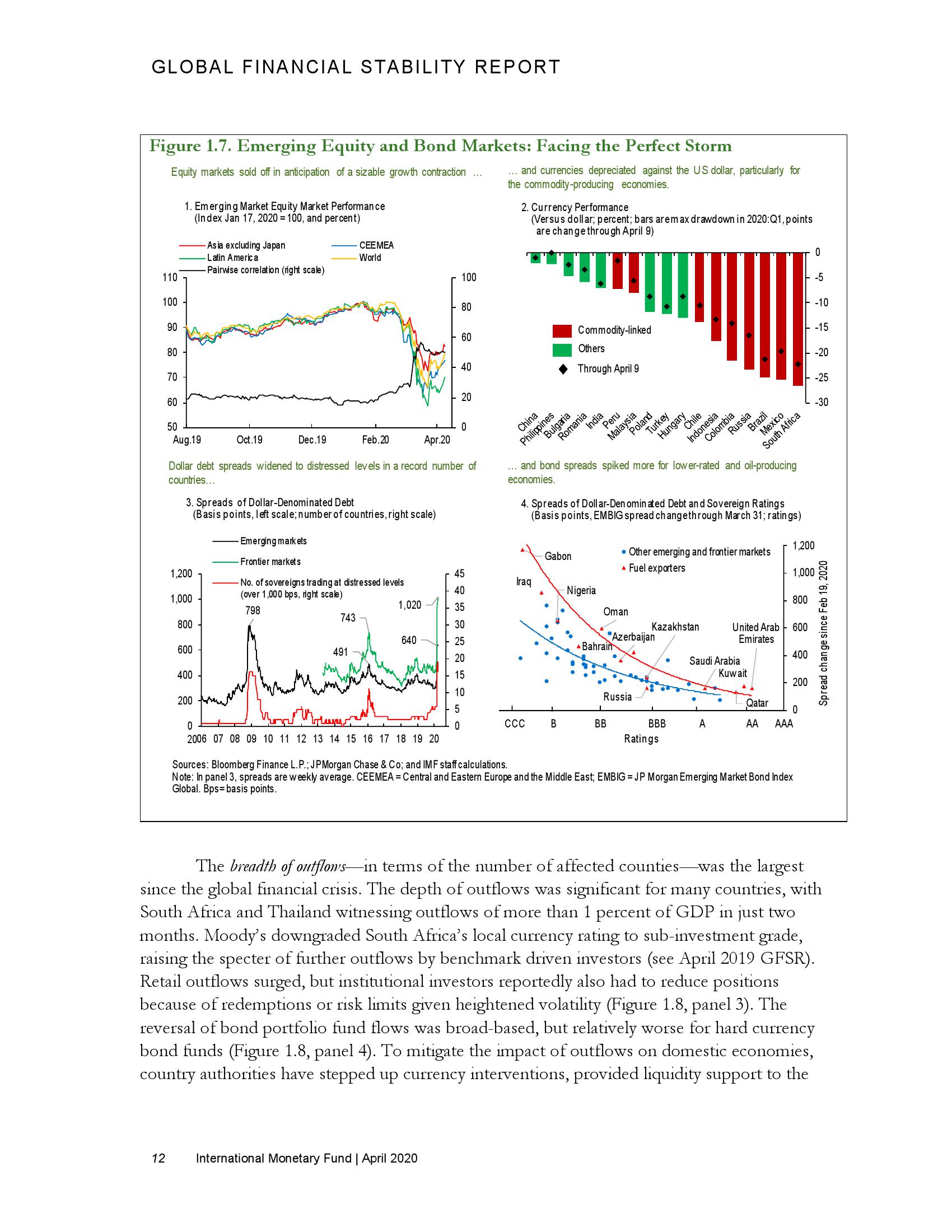 《报告》表示,新兴和前沿市场经济体正面临最严峻的风暴。它们经历了有史以来最剧烈的证券投资流动逆转,不论是以美元计价还是以占新兴和前沿市场GDP的比重计算都是如此。