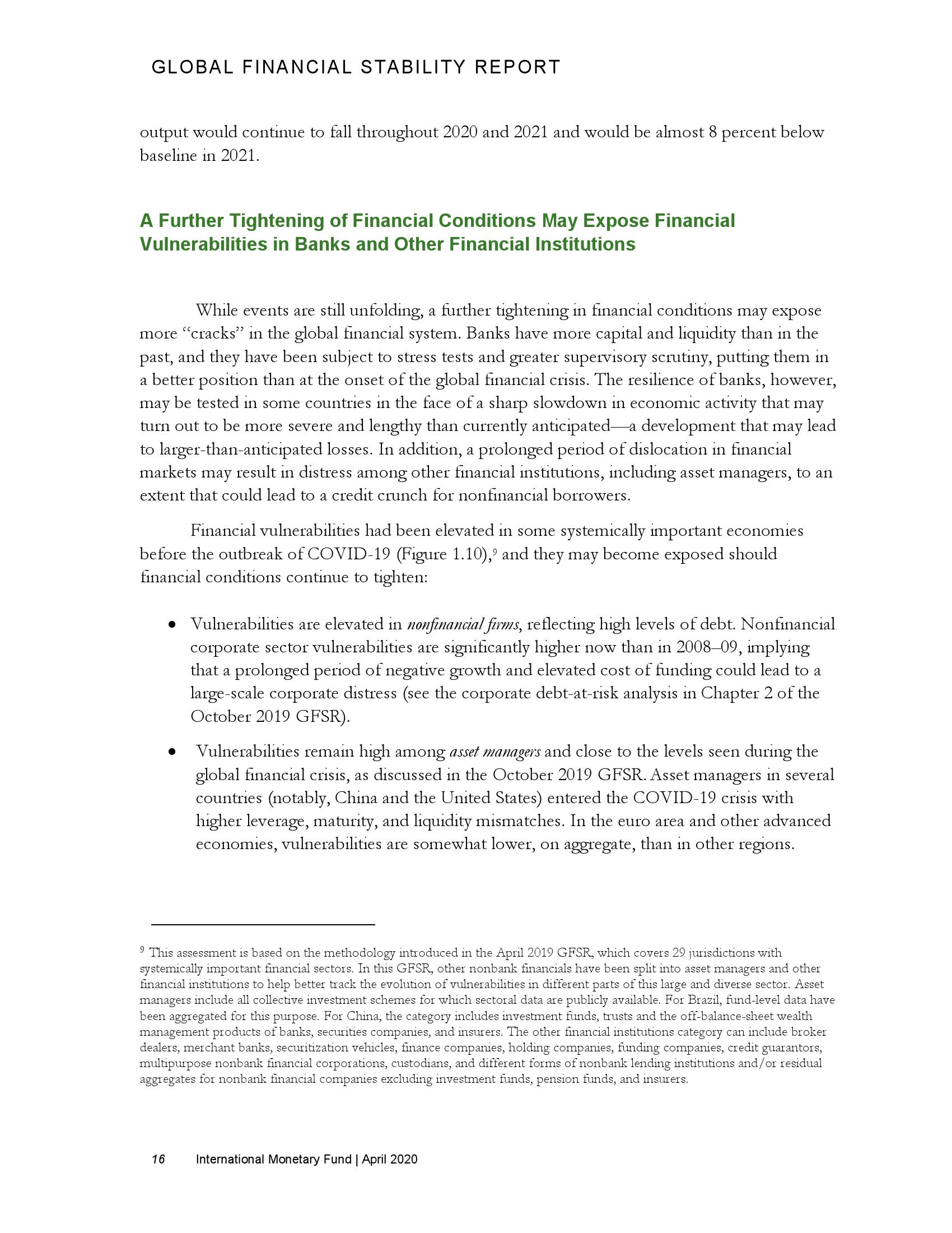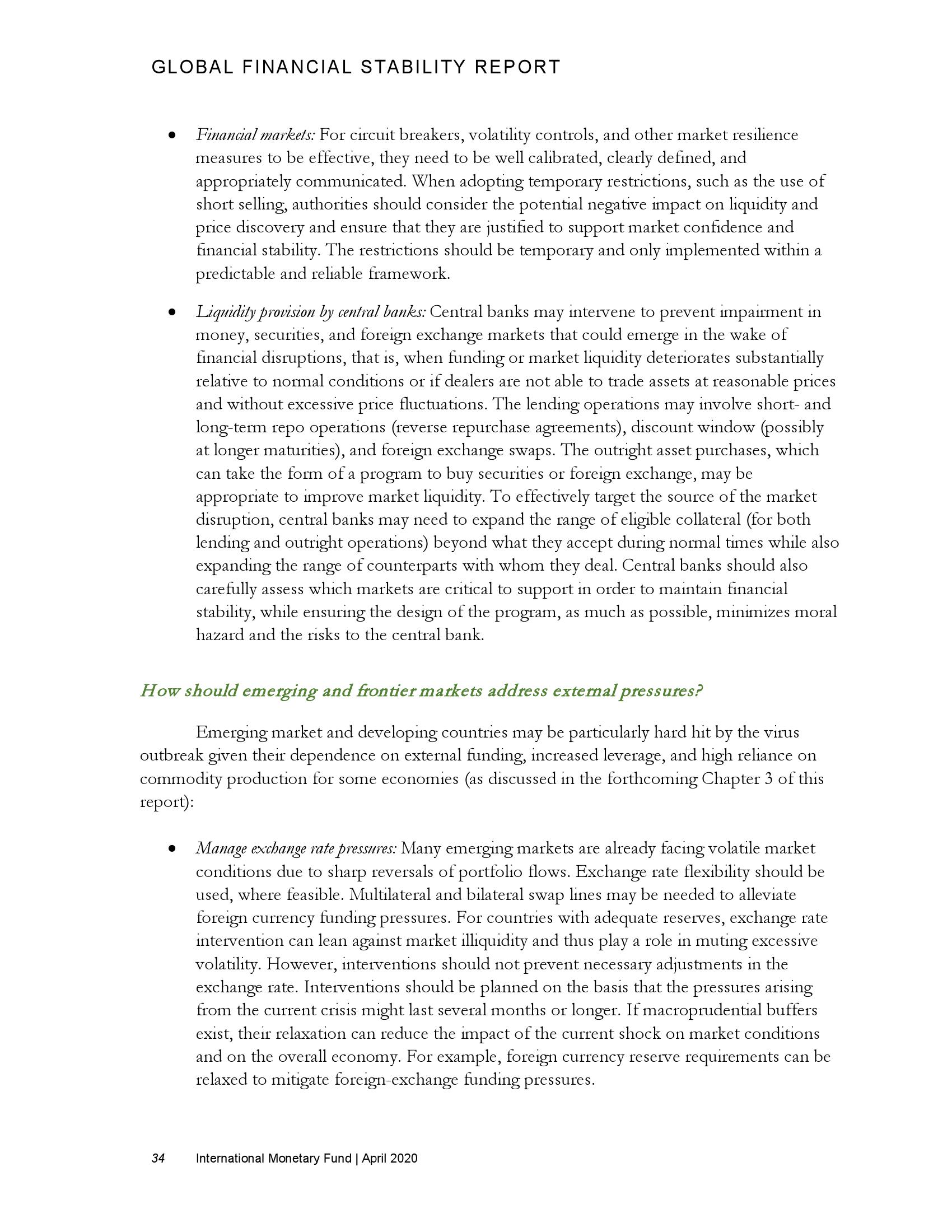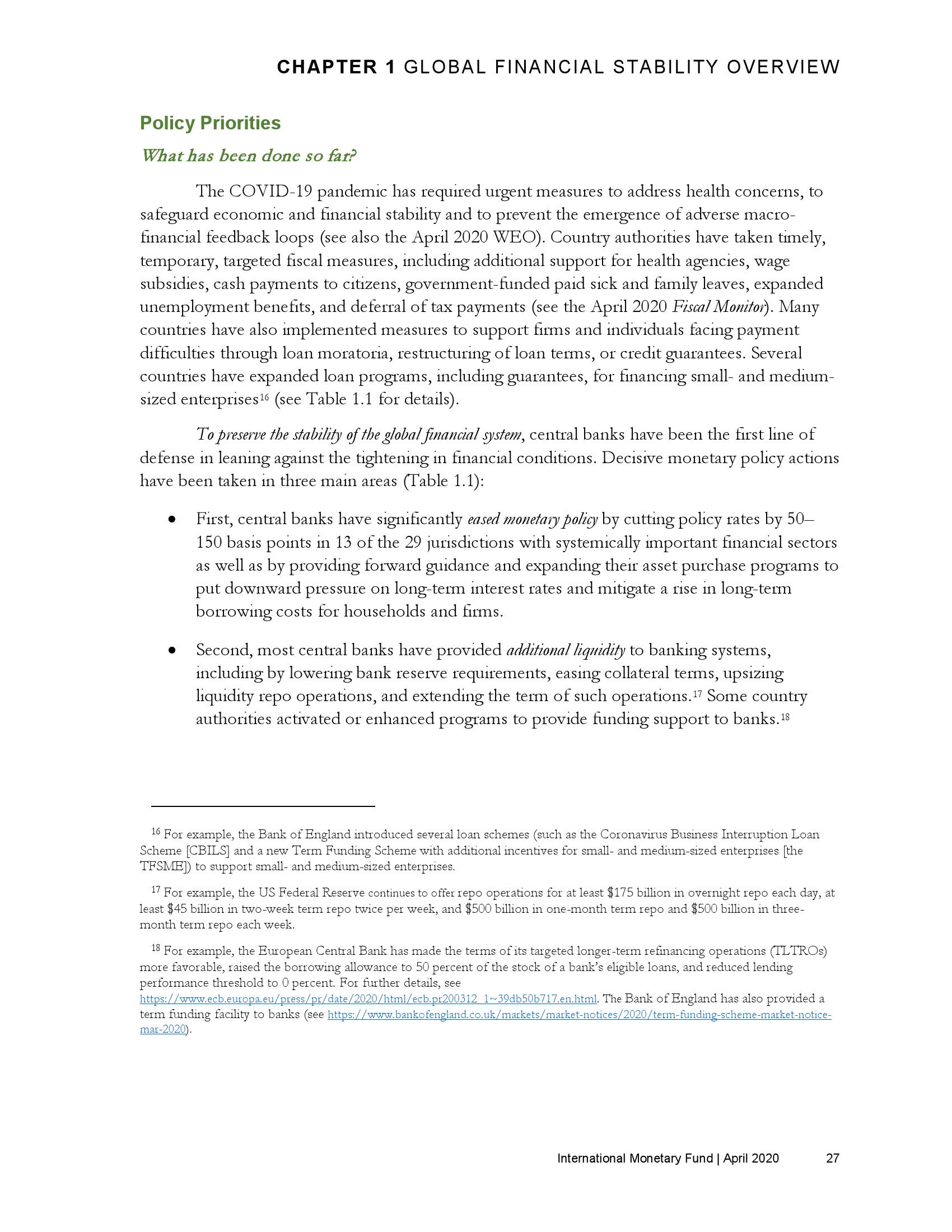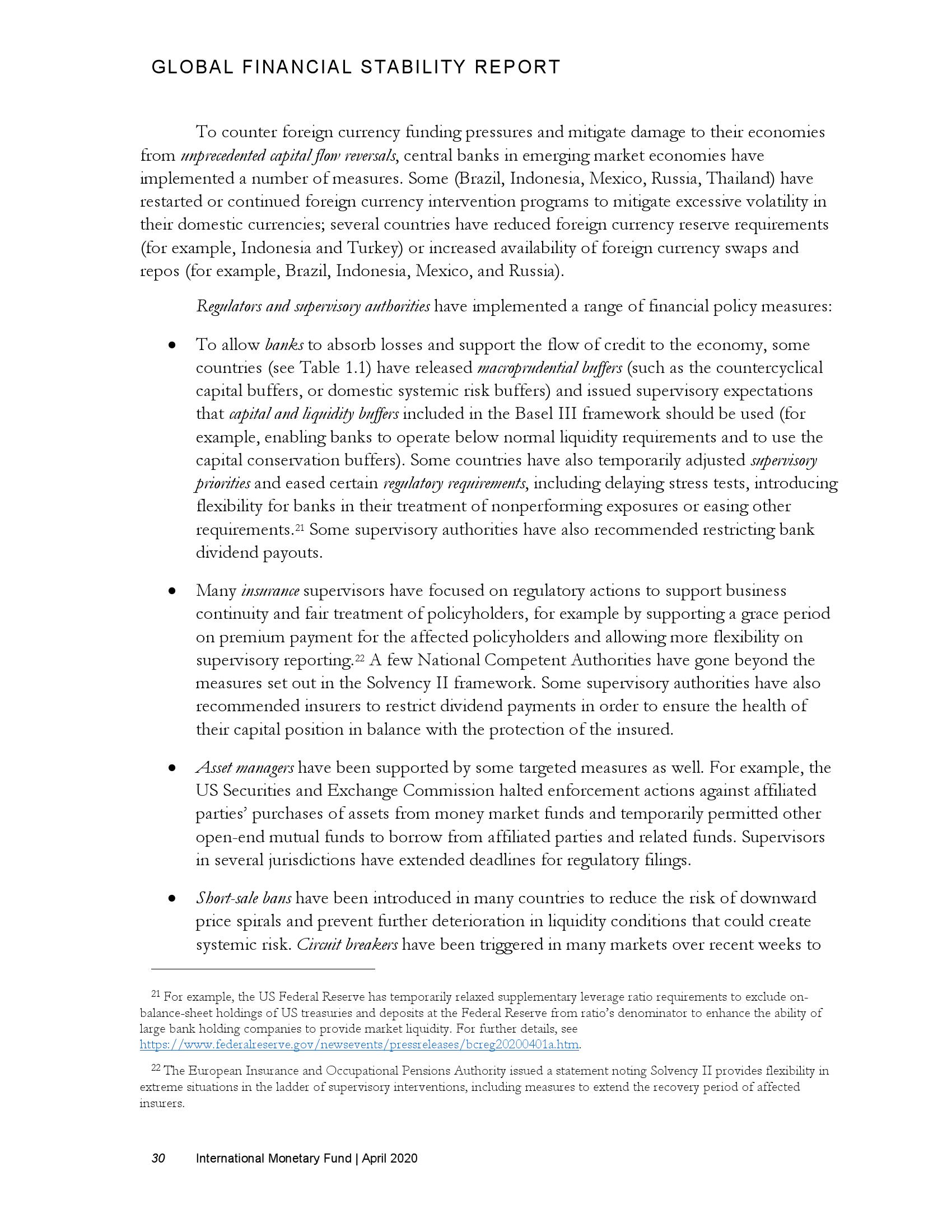 《报告》还称,全球央行已采取大胆和果断的行动,包括放松货币政策,购买一系列资产,为金融体系提供流动性,以抵消金融条件收紧的影响并保持信贷向实体经济的流通。