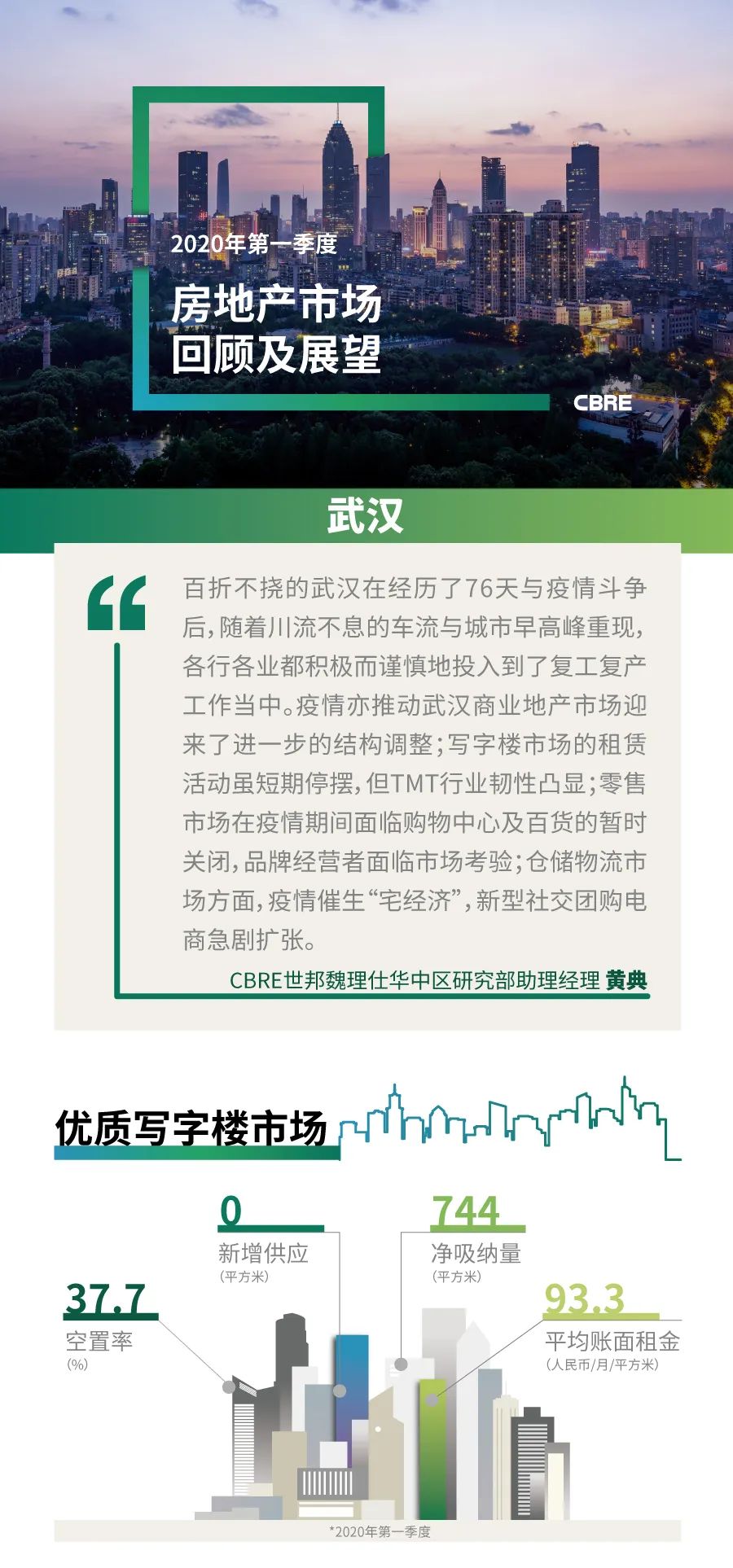 CBRE:2020年第一季度武汉房地产市场回顾与展望 2020年第一季度,武汉写字楼市场未录得新增供应,总存量维持在487万平方米。 需求方面,由于“封城”对商务活动形成阻碍,一季度写字楼租赁活动停滞,但仍可见一定的市场问询度,市场暂未面临明显退租风险。受到春节假期和疫情的双重影响,部分企业的办公选址及资本支出计划顺延至第二季度或下半年,租户信心未见明显波动。其中,甲级写字楼租户普遍抗风险能力和承租能力较强,市场成交预计将会自第二季度逐步显现。 截至季末,供应缩减短期缓解写字楼市场去化压力。季内空置率水平环比下降0.1个百分点,录得37.7%。受市场存量压力的持续影响叠加疫情因素,谈判周期及去化周期延长,导致整体市场租金继续承压,全市优质写字楼租金同样本环比微降0.5%,录得每月每平方米93.3元。但地处以TMT及传统金融为代表的韧性产业聚集的板块且租户结构良好的甲级写字楼抗压能力凸显。 展望未来六个月,CBRE预计,受在建工程进度影响,新项目普遍延期至下半年或次年交付,使得全年新增供应总量由81.4万平方米下调至14.9万平方米。由于延续2019年末整体经济放缓及疫情期间商务活动受阻的短期影响,业主租赁策略将进一步向租户方倾斜。写字楼市场表现将从区域及楼宇管理品质上呈现两极分化趋势,优质企业聚集的区域及楼宇品质较高的项目将更具抗压能力。根据目前问询量预测全年,租赁需求将以科技新媒体、传统金融、以及医药行业为主要动力,选址偏好主要位于光谷、建设大道、航空路及汉口沿江商务区。 “随着武汉疫情在季末得以控制,陆续出台刺激性的财税政策将加速推动在汉企业复工复产。虽然疫情给零售贸易及酒店餐饮业带来的影响较大,但在疫情中迎来行业新风口的教育互联网企业及医药行业将会保持稳健增长并持续扩张。” 本季,武汉优质零售物业市场未录得新增供应,全市存量维持在644万平方米。在春节假期遭遇突如其来的疫情,全市购物中心及百货陆续闭店,仅有维持基本民生的部分连锁商超持续营业,零售、餐饮及体验业态在本季受到较大冲击。由于商业活动的停滞,2020年一季度武汉优质零售物业市场的空置率与租金与上季度持平。 展望未来六个月,受施工进度的影响,预计在年中开业的商场将推迟至年底。随着疫情受到有效的控制,餐饮及零售业态将逐步恢复。由于顾客数量集中并消费时间较长,以影院为代表的体验类业态短期内仍无法恢复正常营业,疫情对其产生的负面影响相对更大。 “随着疫情进一步稳定,季度末武汉多个购物中心及百货也均在逐步恢复营业。实体商业的线下客流复苏仍需要一定的时间周期。对于购物中心经营者和品牌门店而言,除了通过促销活动来提升销售额外,亦需严格把控商场运营的安全性,以提供给消费者健康安全和放心的购物环境。对于实体商业而言,无论是技术运营层面的变革、内容创新的赋能及营销模式的升级都是我们未来值得关注的重要课题。” 2020年第一季度,武汉仓储物流市场未录得新增供应,全市存量维持在279万平方米。部分已取得土地证件但未正式开工的园区,在复工之后将会陆续开工。 市场需求方面,电商、第三方物流及其合作伙伴依然为季内主要需求来源,需求主要集中在 “封城”之前。本季,绝大部分物流园区租户运营停止,仅民生、医疗、救助及捐赠相关的电商和第三方物流经批准后方可运营,且物流运输效率大幅降低,大量网购包裹在枢纽节点仓库积压,预计二季度正式复工后,物流园区将有短时间的运输高峰出现。同时原计划一季度进入武汉的新增需求因疫情影响需重新评估市场,租赁决策预计推迟至下季度。总体而言,全市仓储物流市场空置率和租金与上季度持平,全市空置率维持在19.9%,平均租金报价为每月每平方米25.1元。 展望未来六个月,CBRE预计,全市仓储物流市场新增供应将较原计划推迟2-3个月交付。电子商务是仓储物业需求的主要驱动力,封城措施推动了新型电子商务平台以及生鲜冷链业务的进一步发展,预计在正式复工后,电子商务,生鲜食品及提供其配套服务的第三方物流在武汉市场的租赁需求将显著提高。 值得关注的是,高标仓租赁市场有较强的抗风险能力。第三方物流头部企业竞相争夺中低端物流企业的市场份额。武汉作为运输枢纽节点城市,第三方物流在武汉的高标仓布局将进一步加大;持续的“距离社交”措施,使生鲜冷链迎来大爆发以及新型社交团购电商急剧发展,将进一步催生近城区的仓库需求;此外,武汉市对公共环境卫生的重视,比如对近300家菜场进行改造,以及提升集贸市场品质,都将对冷链仓库的运营水平及供应链的可持续发展提出了更高的要求。 “武汉高标仓租赁市场继续两极分化,优势明显的东西湖区仍然是租赁及投资的热门板块,但部分非核心区域短期内仍面临一定去化压力。正式复工后,政府陆续出台一系列积极措施拉动经济及保证就业。市场将可能会出现投资窗口期,投资者需把握市场机会。” 更多阅读:CBRE:2019年上半年武汉房地产市场回顾与展望CBRE:2023年上半年上海房地产市场回顾CBRE:2022年第三季度南京房地产市场回顾与展望CBRE:2023年上半年广州房地产市场回顾CBRE:2023年上半年成都房地产市场回顾CBRE:2023年上半年郑州房地产市场回顾CBRE:2023年上半年香港房地产市场回