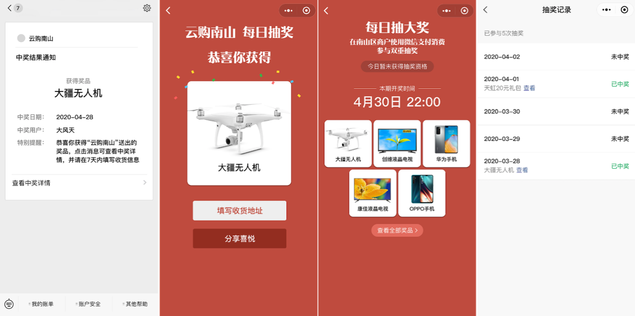 即日起,消费者在南山区内的商户处使用微信支付付款(非转账支付),有机会抽奖获得双重福利,同时一键分享好友共同参与。