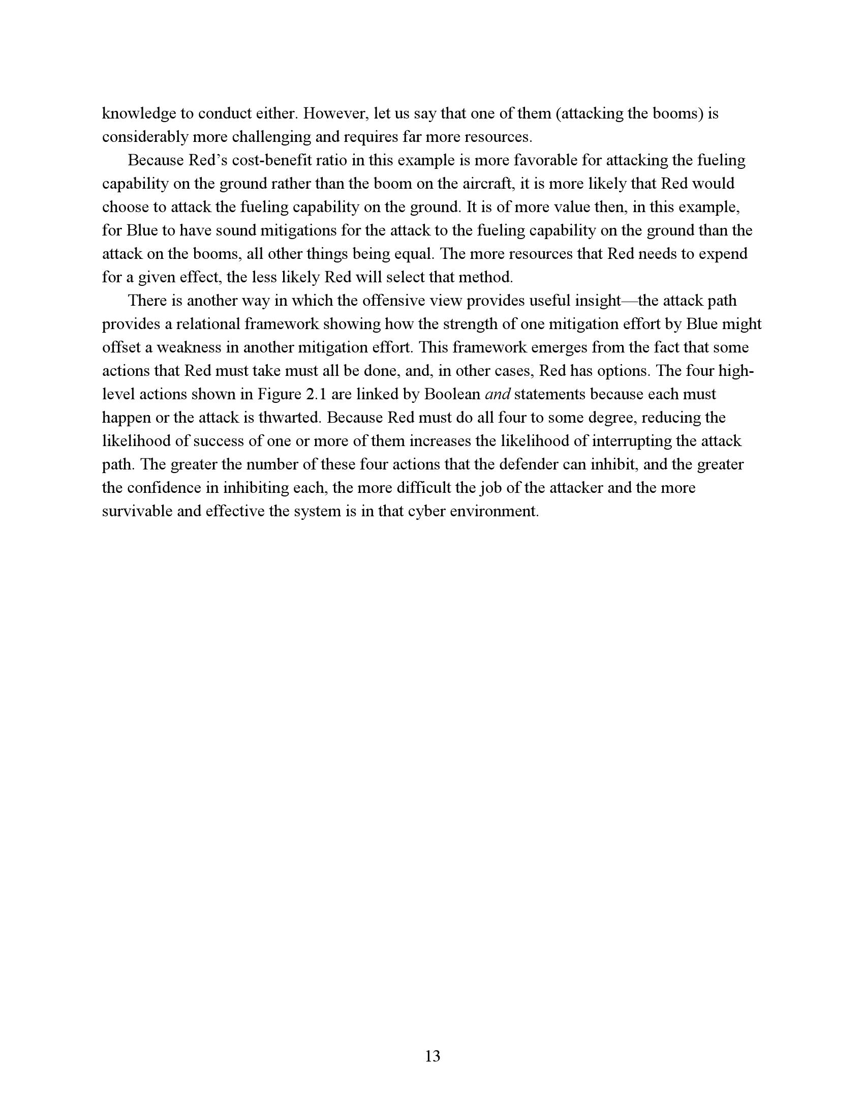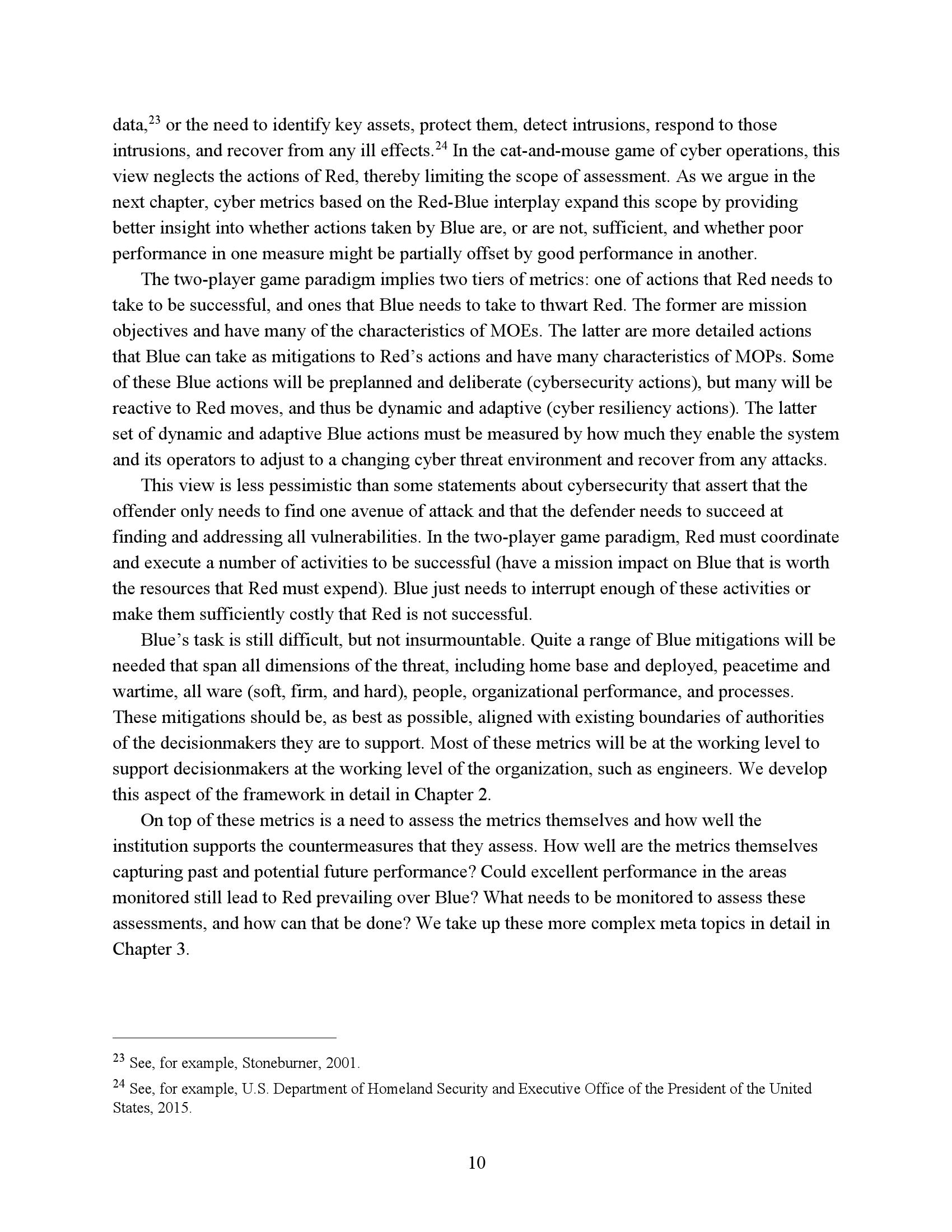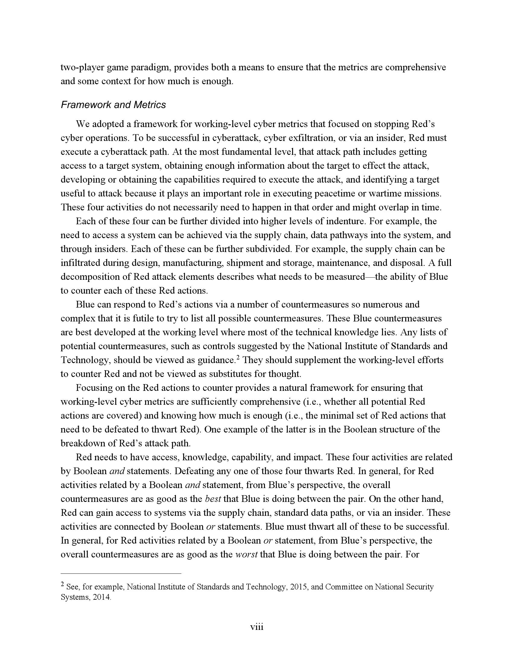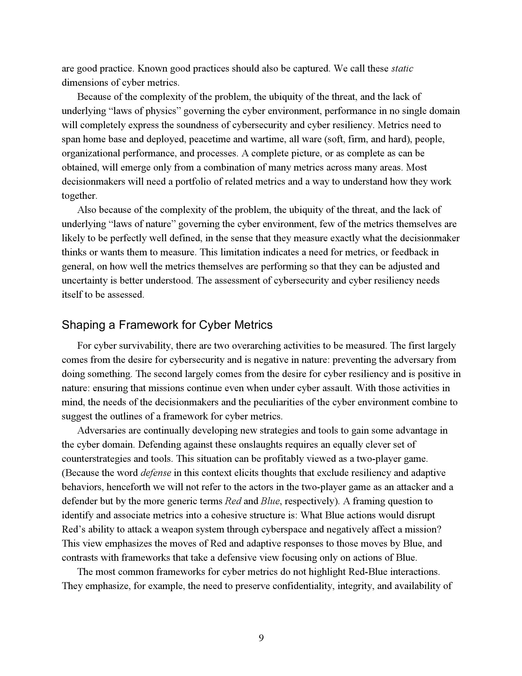 为了衡量一个任务或系统在网络竞争环境中的生存能力和有效性,我们必须了解R网络行动的反击程度。因此,网络度量的重点必须是估计R的成功或失败,而不是B可能尝试的具体对策。当然,B的反制措施很重要,但它们的重要性是作为一种手段来达到阻止或挫败R的目的。专注于符合B候选对策列表的网络指标无法表明这些措施是否有效、适当实施或足够全面以阻止R。因此,遵约办法是不够的。此外,不存在满足这些需求的“仪表板”形式的简单度量集。