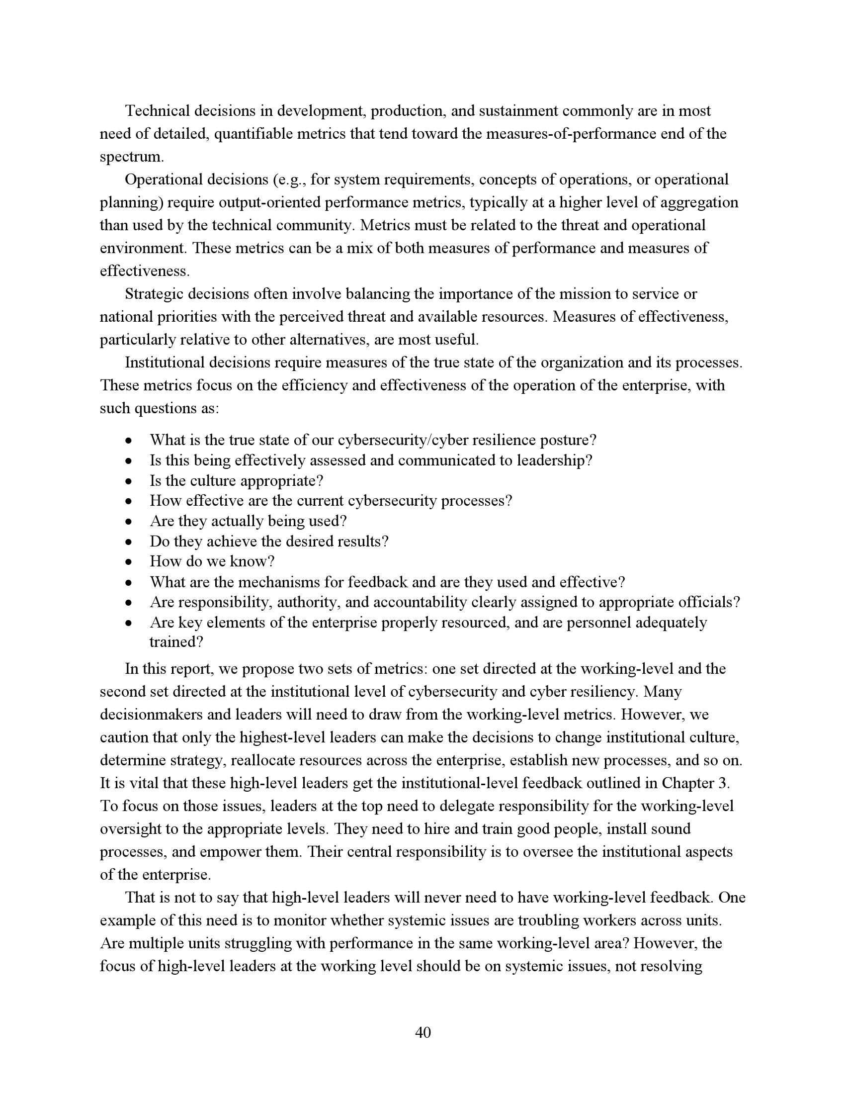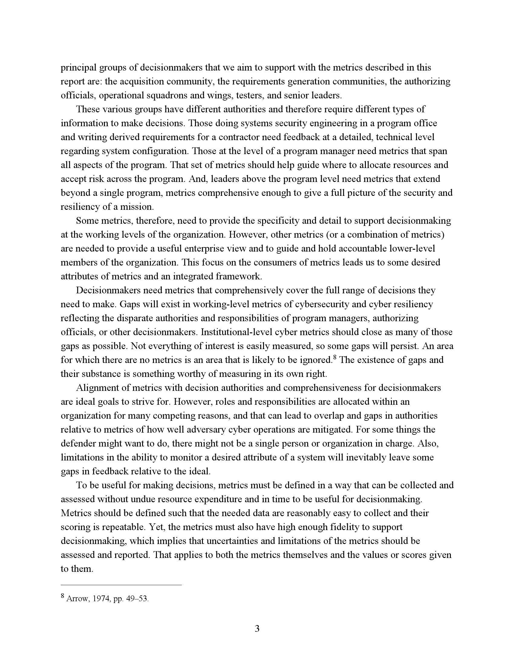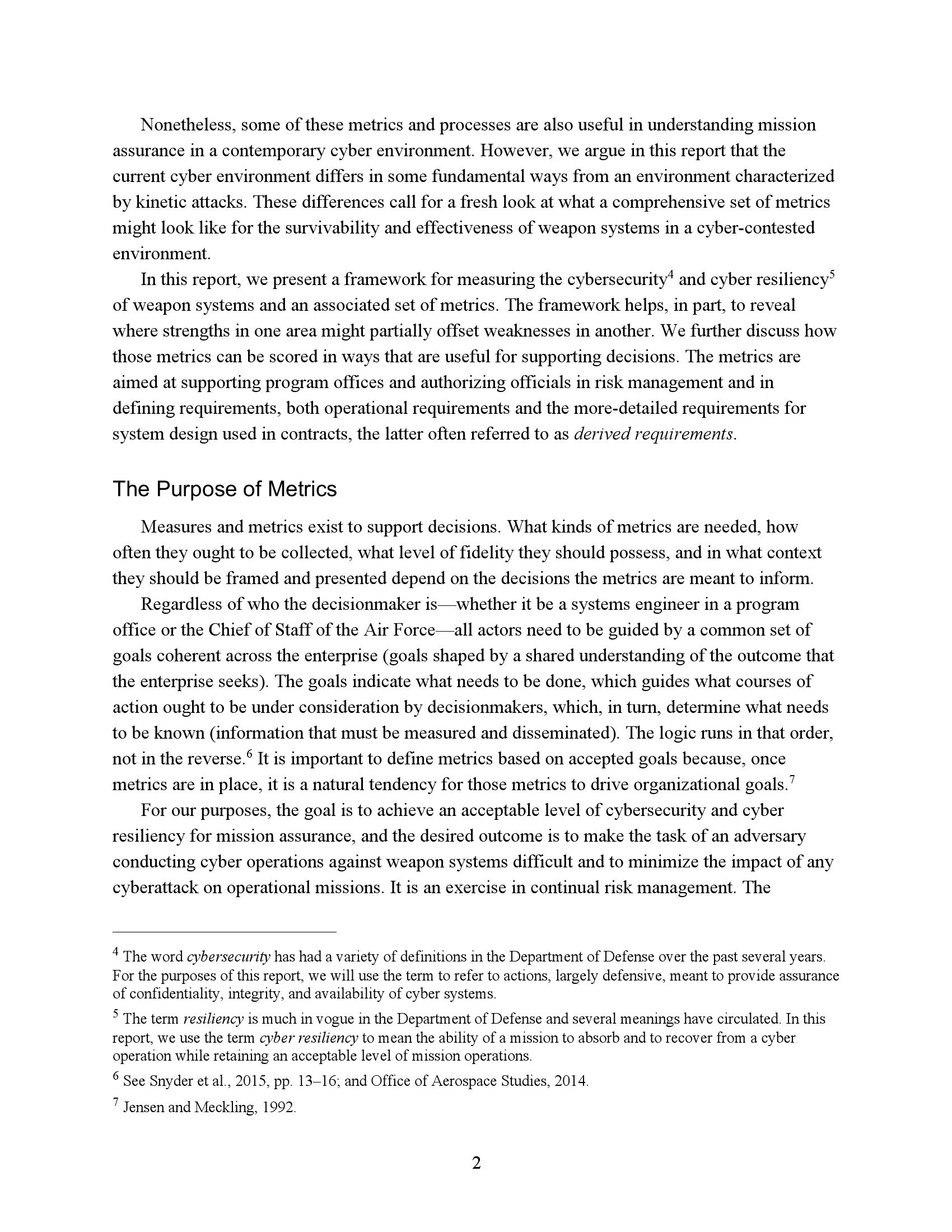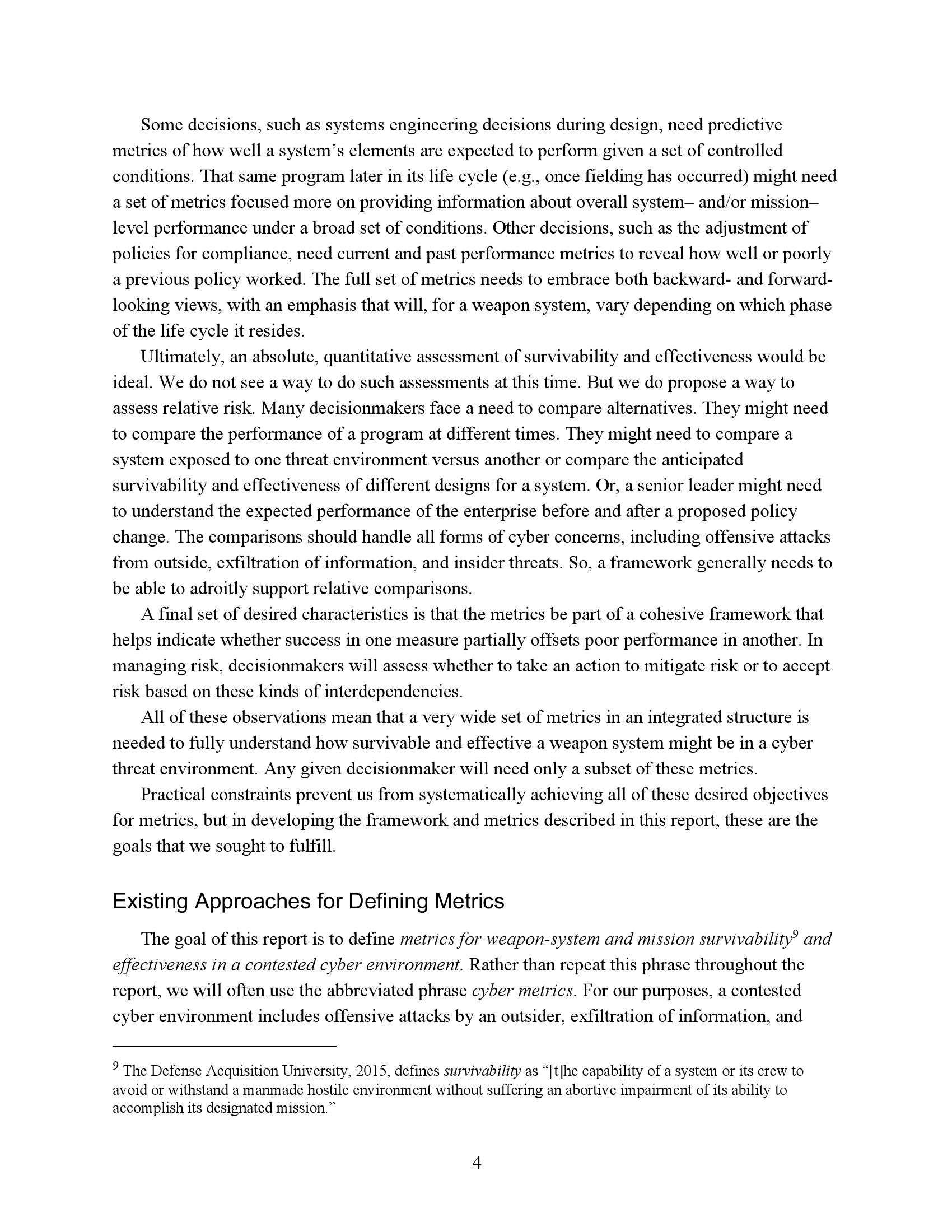 该框架在一定程度上可以作出这种推论:一个领域的优势可能部分抵消另一个领域的劣势。更多的讨论集中在如何以有助于支持决策的方式对这些指标进行评分。这些指标旨在支持项目办公室和授权官员进行风险管理和定义需求,包括运营需求和合同中使用的更详细的系统设计需求,后者通常称为衍生需求。
