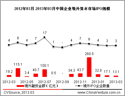 图6 2012年3月-2013年3月中国企业境外资本市场IPO规模