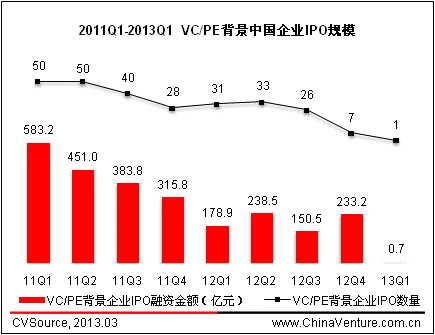 图7 2011Q1-2013Q1 VC/PE背景中国企业IPO规模