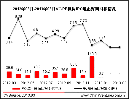 图9 2012年03月-2013年03月VC/PE机构IPO退出账面回报情况
