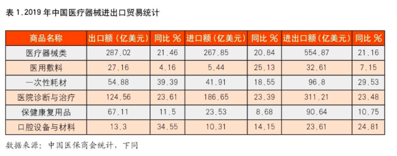 2019年对于我国医疗器械对外贸易来说是不平凡的一年,在经历了中美贸易战多次博弈之后,医疗器械依然保持住了强有力增长态势,国内外两大市场需求继续放量,推动了医疗器械进出口的双向增速。我国医疗器械在整体医疗产品国际贸易中更是发挥了积极的作用。据中国海关数据统计,2019年我国医疗器械进出口总额554.87亿美元,同比增长21.16%。