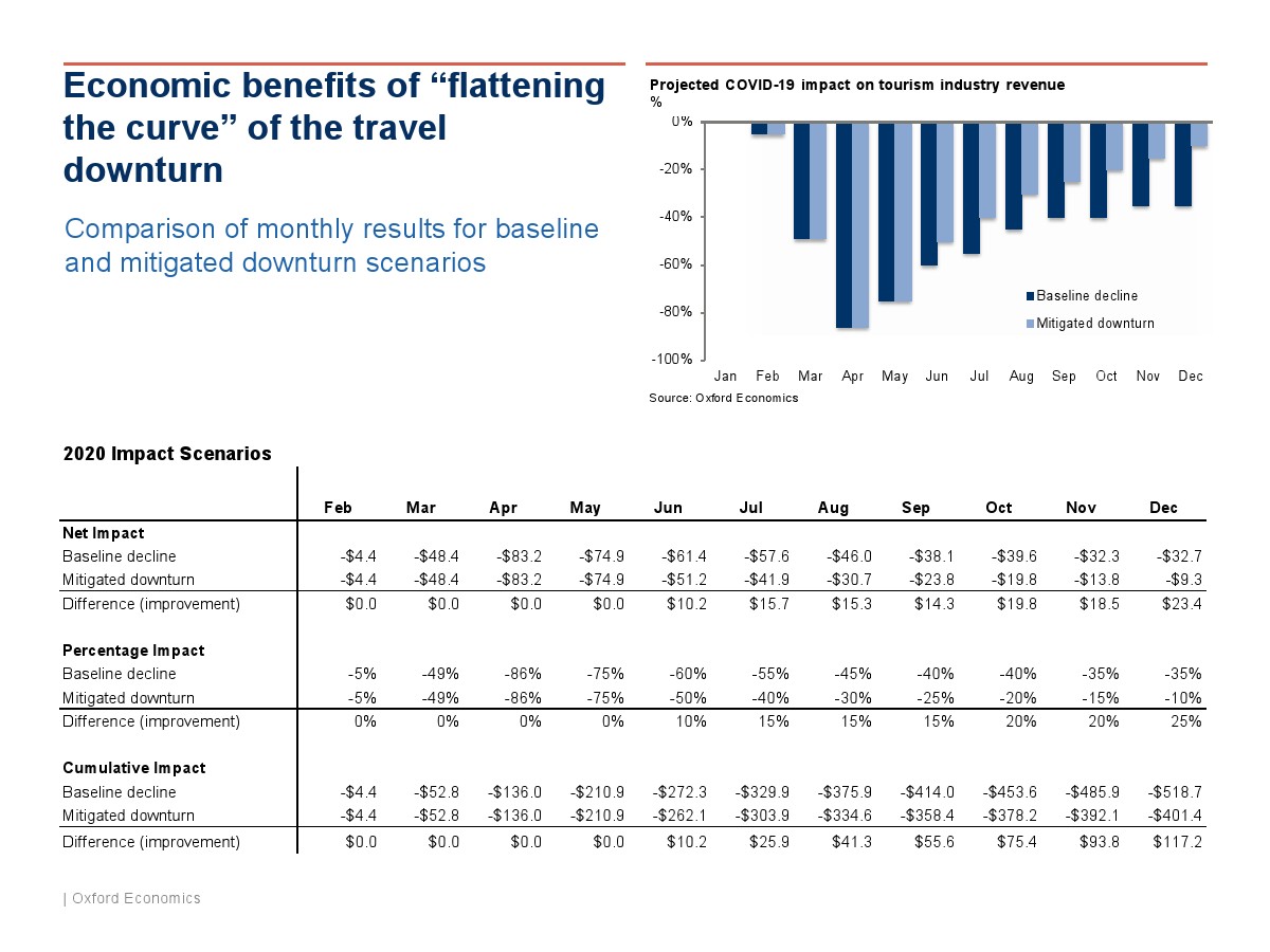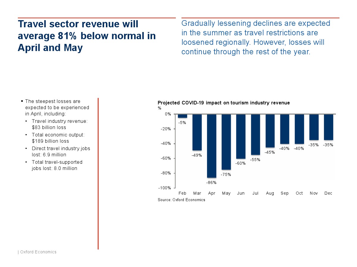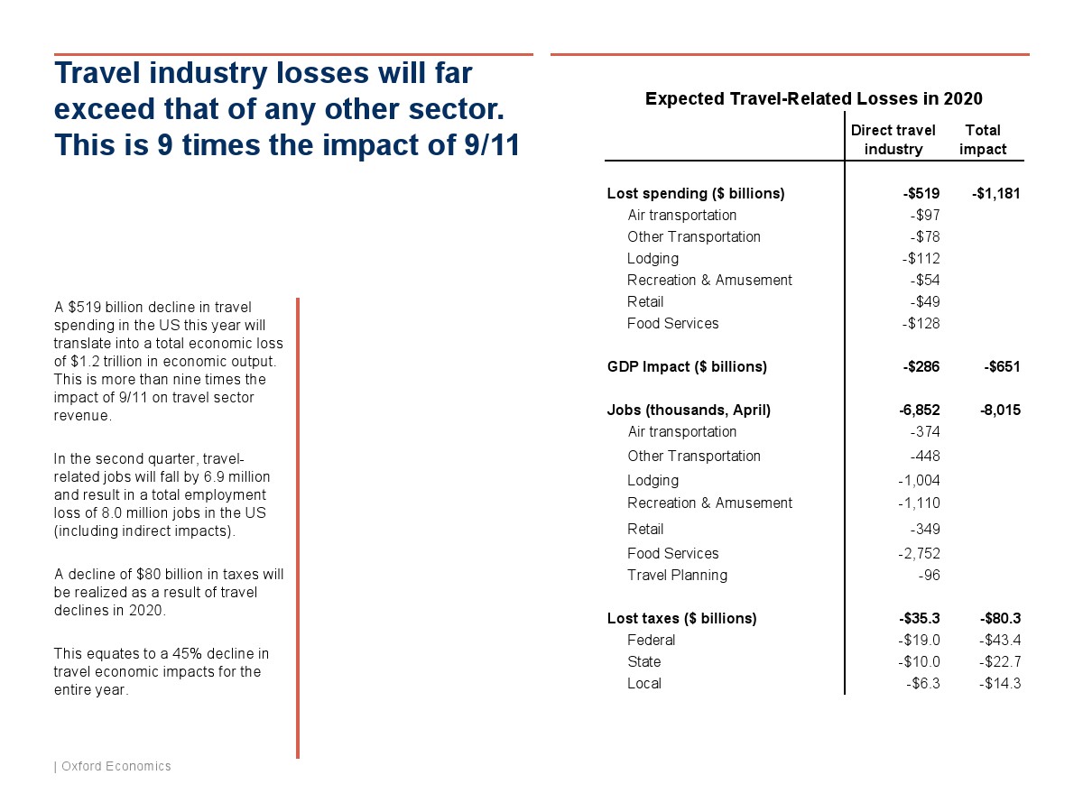 牛津经济研究院与其旅游经济子公司合作,对2020年美国旅游业受新冠病毒影响进行了建模。