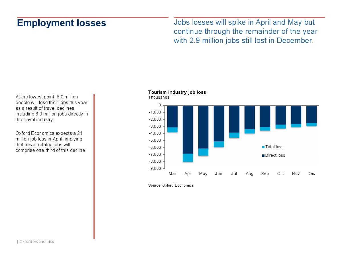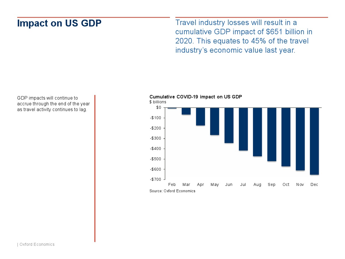 旅游业的亏损将导致2020年GDP缩减6510亿美元。仅基于预期的旅游低迷,牛津经济研究院预计美国经济将进陷入长期衰退。