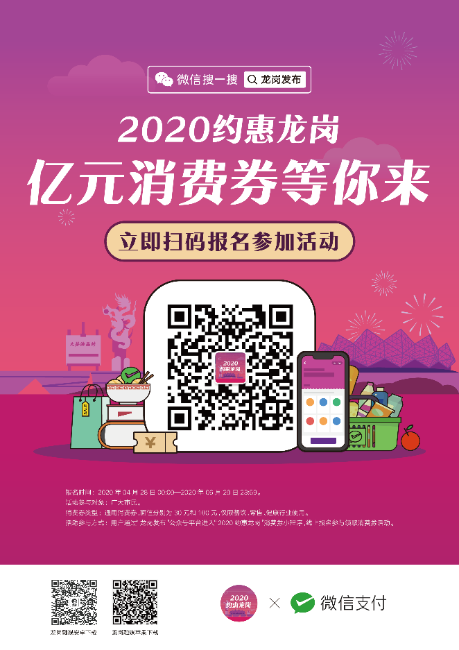 继深圳市罗湖区、福田区、光明区、宝安区之后,龙岗区也加入了“微信消费券豪华套餐”!4月28日0点起,大家可通过“龙岗发布”公众号报名参与领取消费券,成功领取后14天内可在龙岗区支持微信支付的实体餐饮店、零售店、健身房等场景使用。