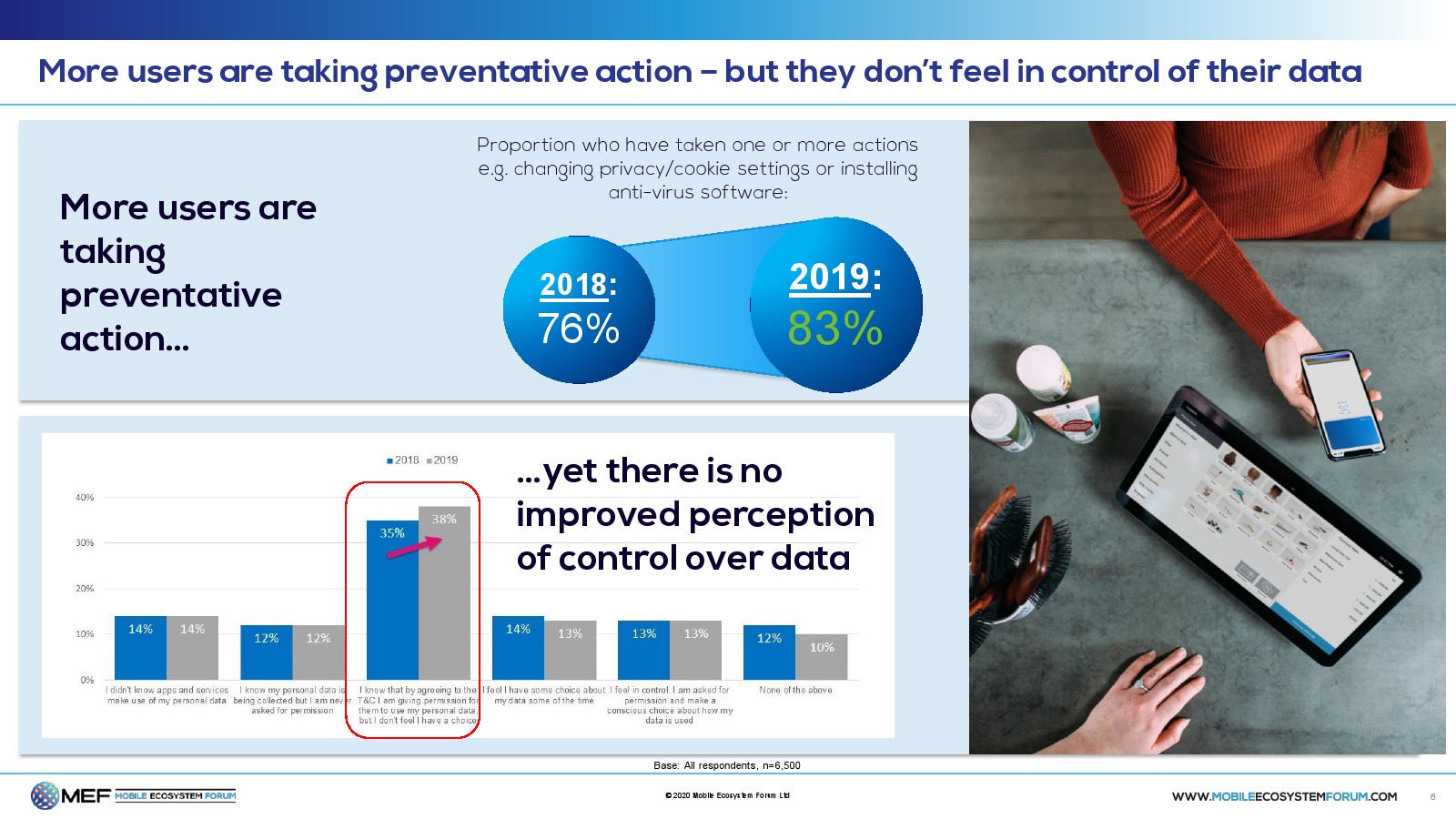 总的来说,许多品牌都承认尊重客户数据的重要性,但2019年有更多的智能手机用户比过去做出了更大的努力来保护他们的数据。8/10的全球受访者(83%)采取了一项或多项预防措施来保护其数据,而2018年这一比例为76%。