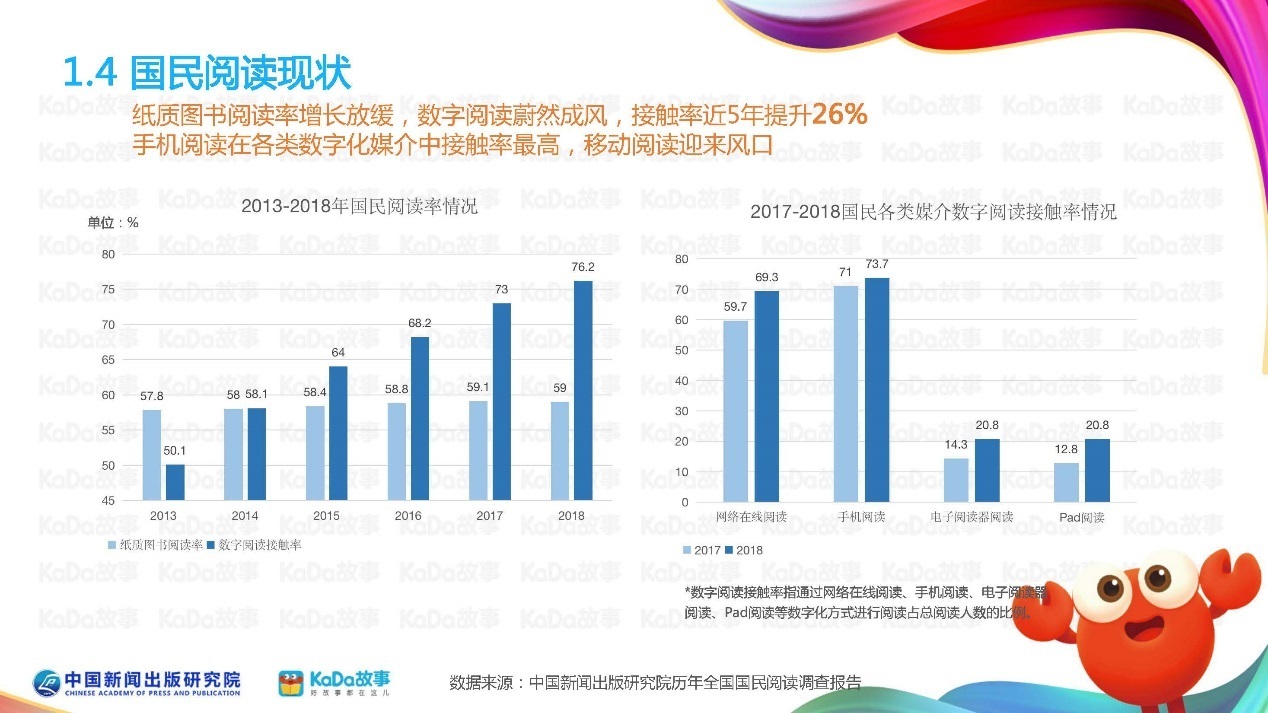 研究发现,内容出版发行渠道单一、远离读者,依然是优质内容传播的主要障碍。KaDa故事凭借平台自身优势,在“儿童内容评价体系”的帮助下,通过APP、小程序等多渠道内容发行方式,拓宽内容传播半径,打破发行单一困局。