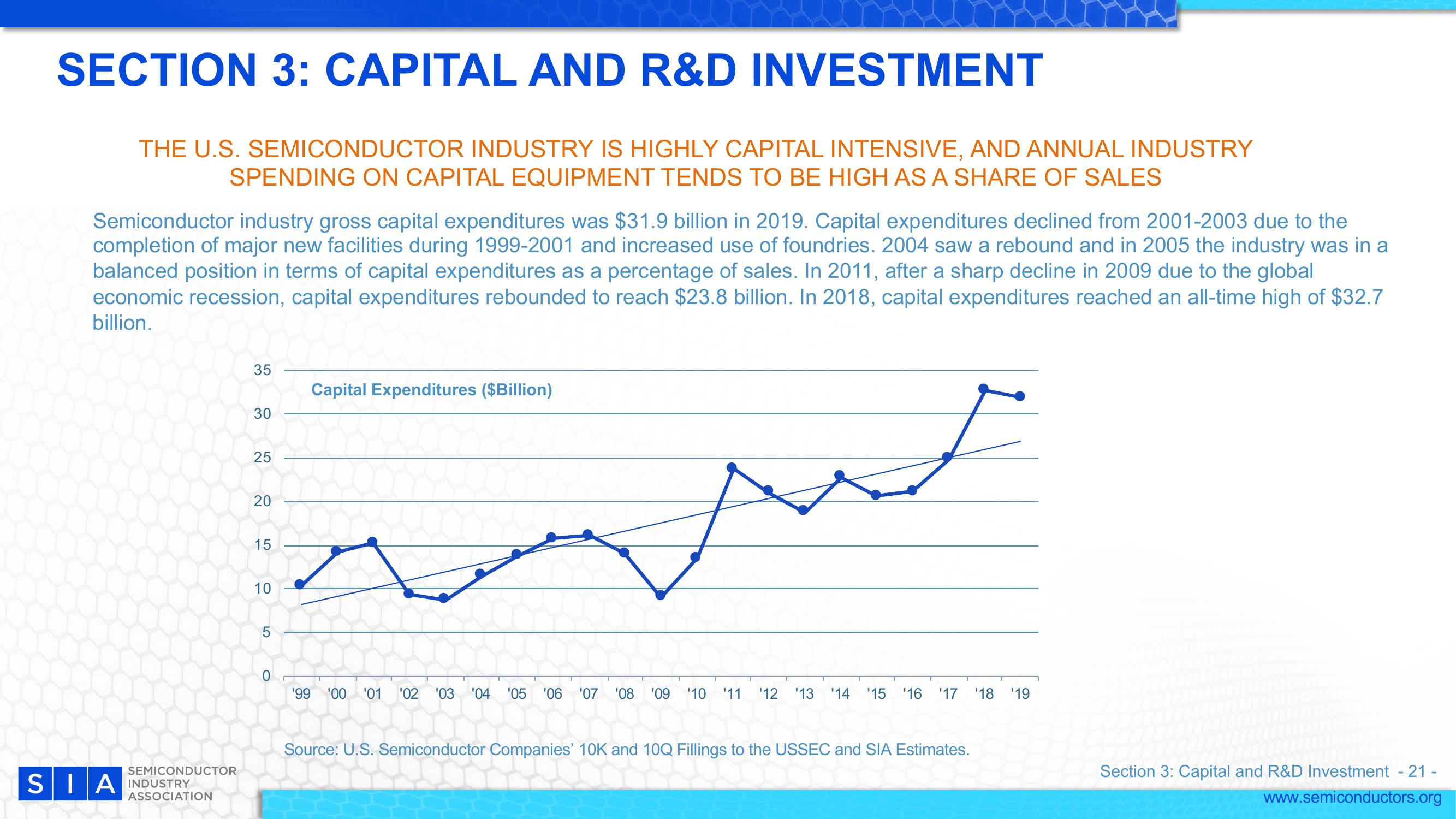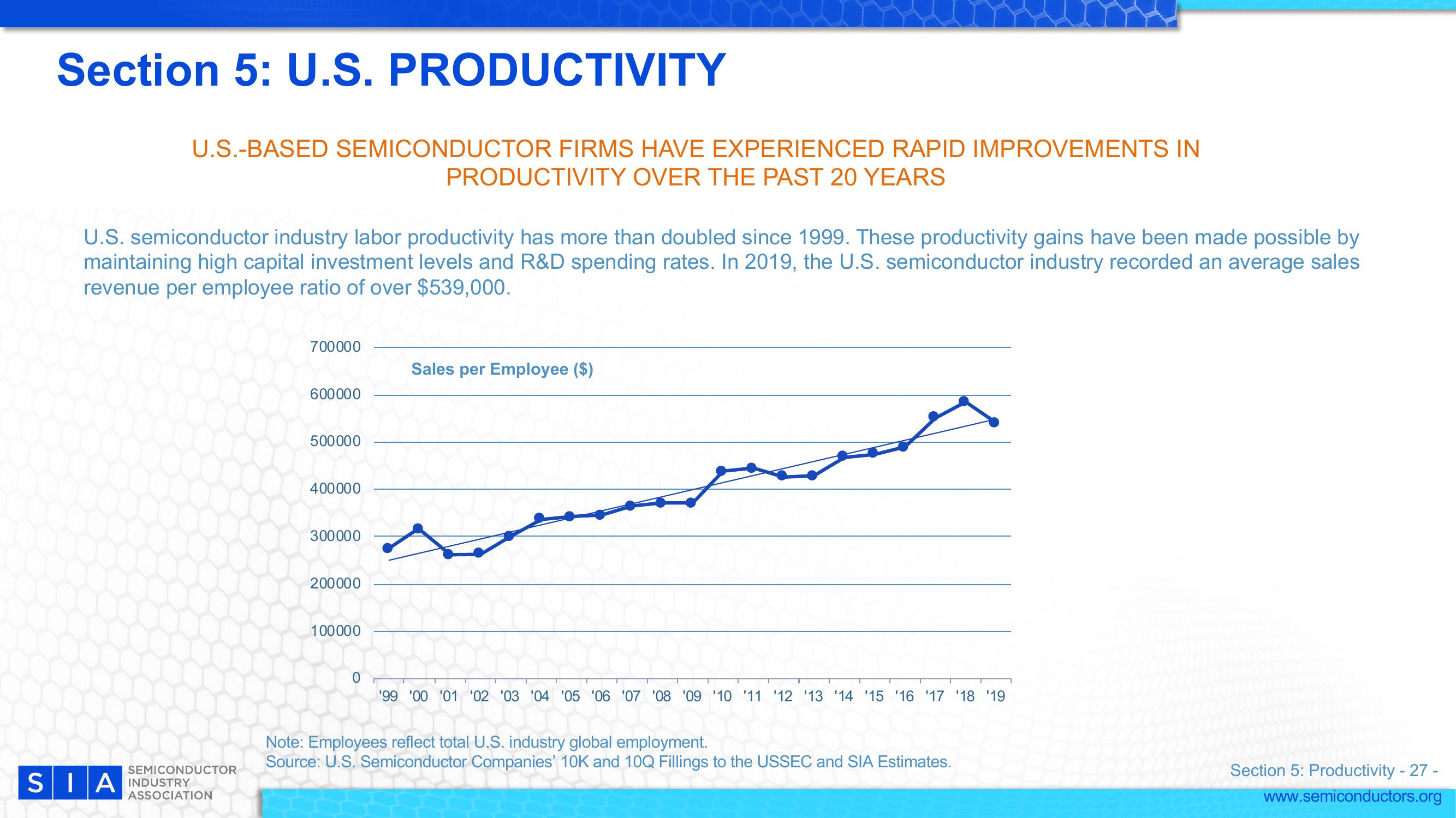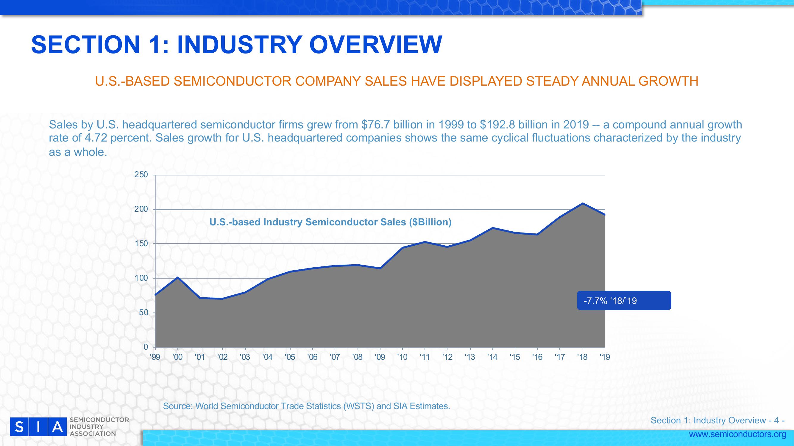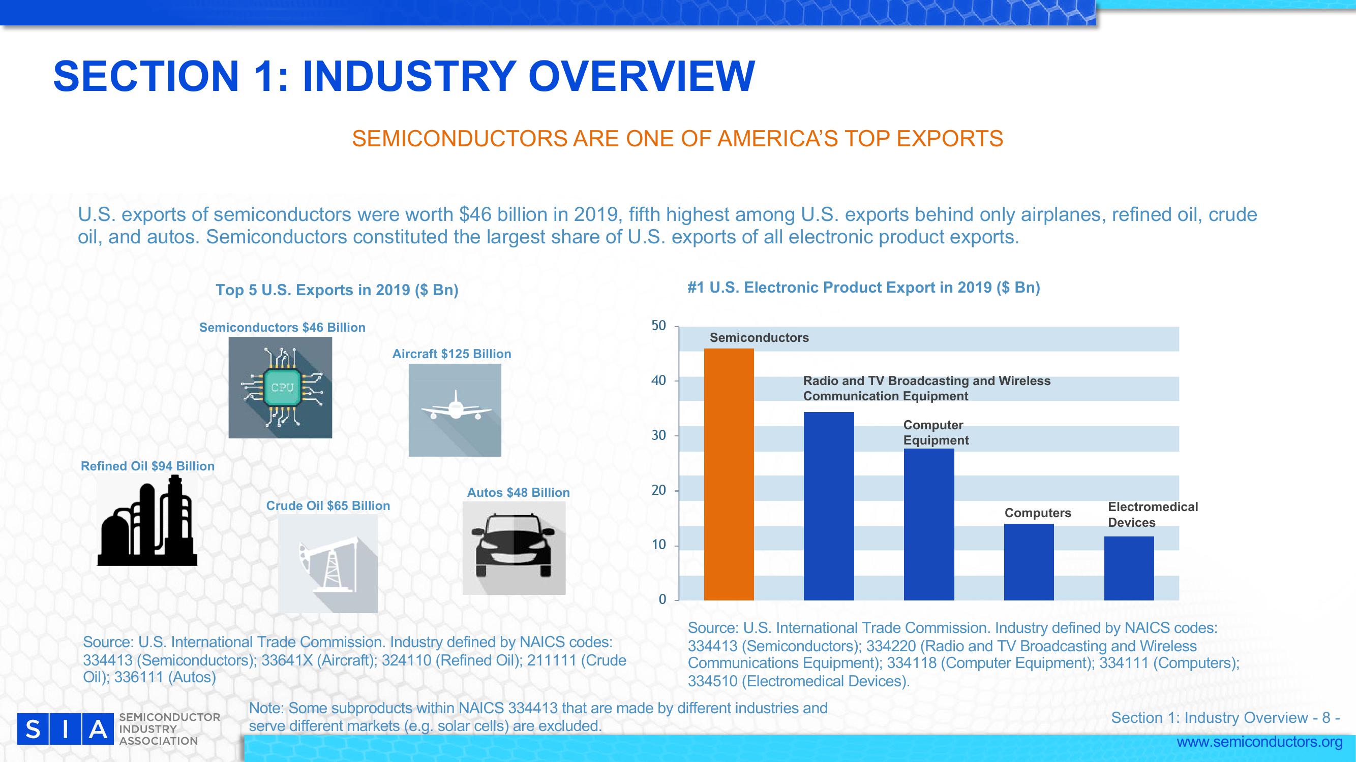 美国半导体产业协会(SEMICONDUCTOR INDUSTRY ASSOCIATION,以下简称:SIA)近日发布了《2020年美国半导体产业概况》报告,以翔实数据展现了当前美国半导体产业整体情况。
