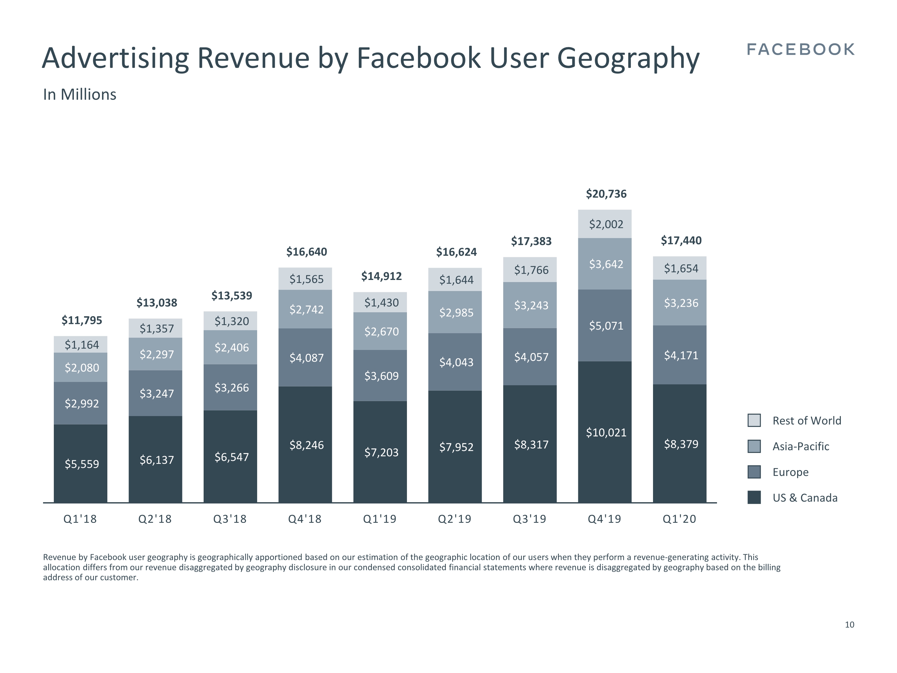 广告营收为174亿美元,同比增长17%。新冠疫情对收入的影响开始于三月份的第二周,广告业务营收开始明显下降。不同行业的表现不一样,旅游和汽车行业表现最疲软,而游戏,科技和电商行业表现强劲,2季度这个趋势仍然持续。