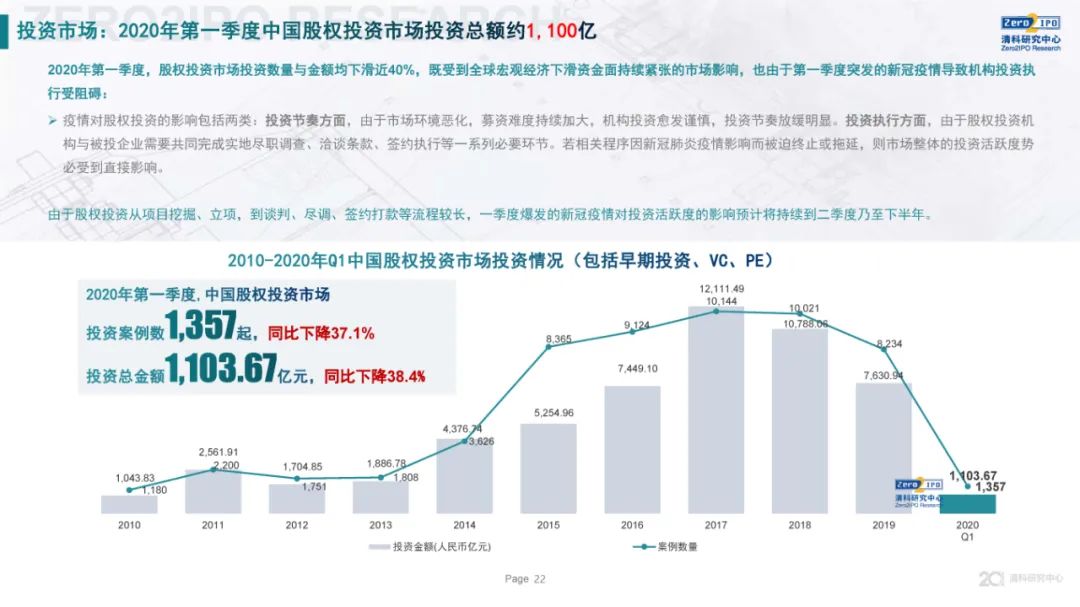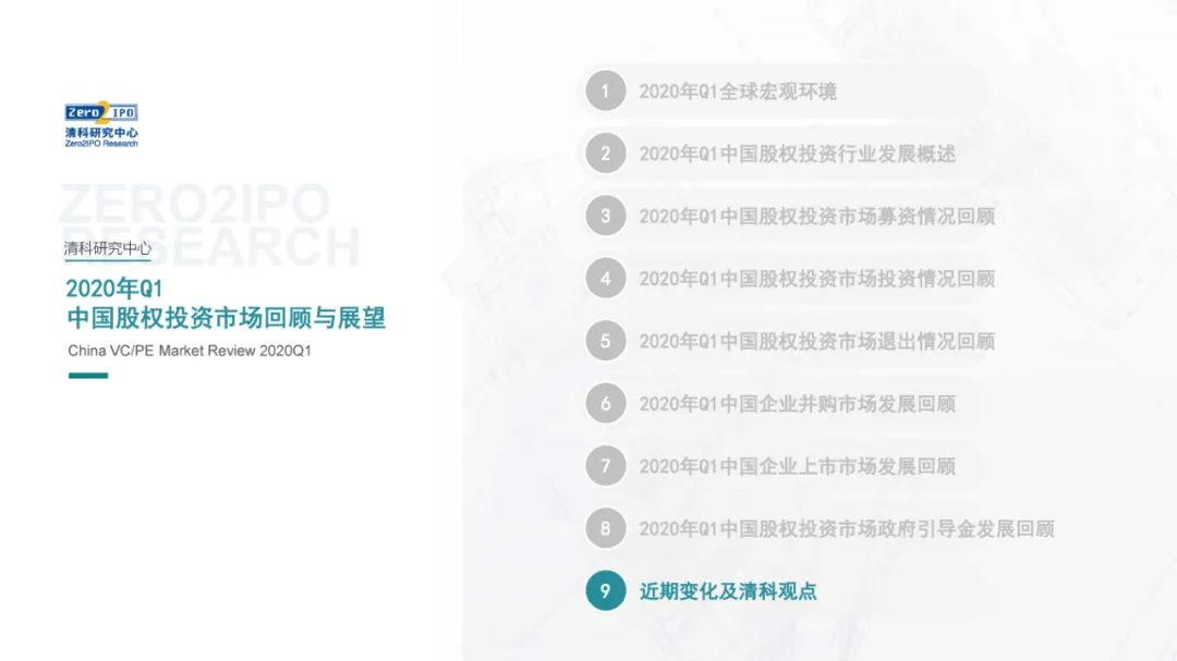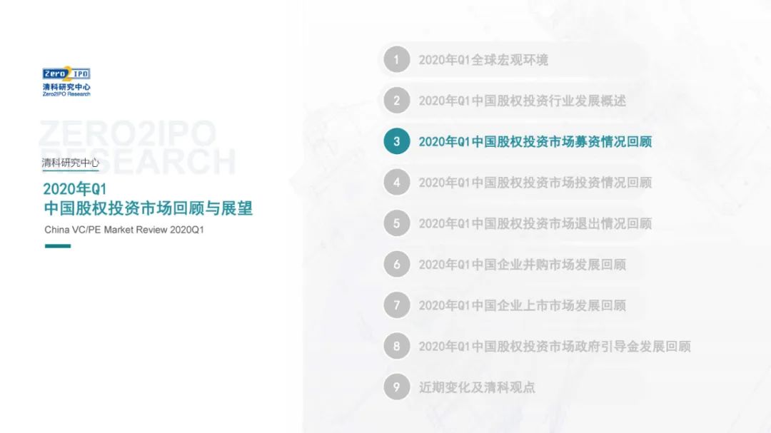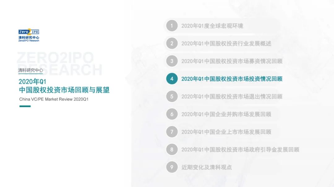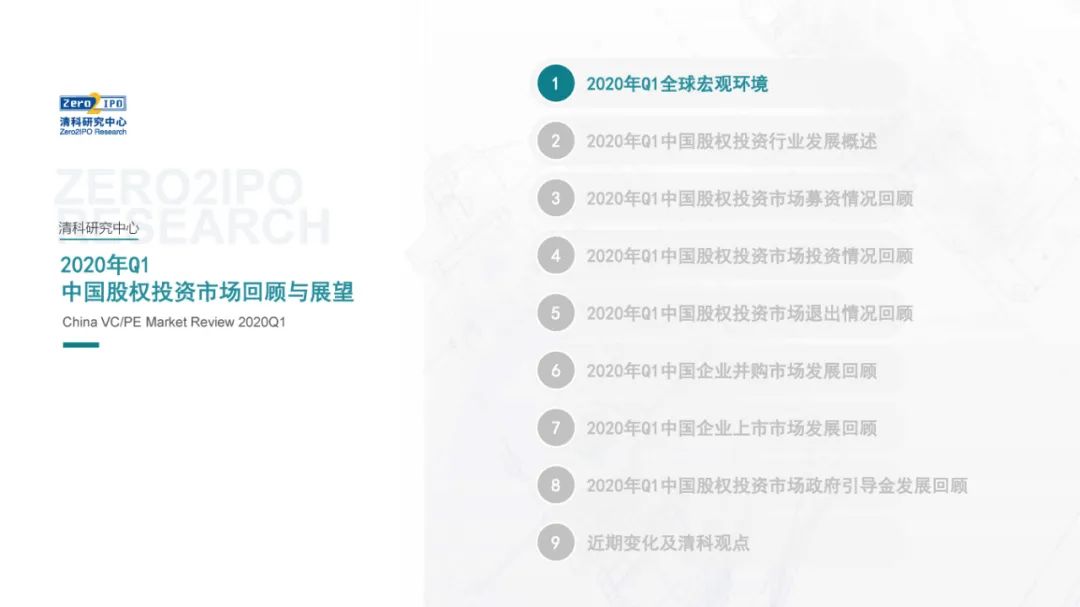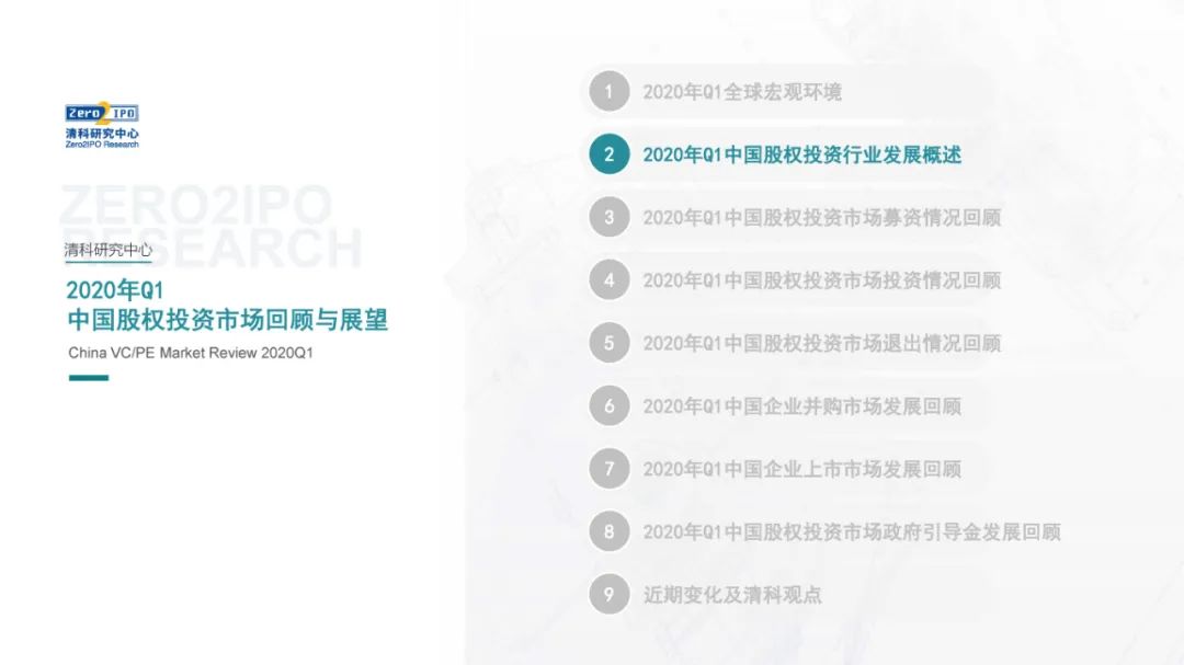 清科研究中心:2020年Q1中国股权投资市场回顾与展望 清科研究中心重磅发布《2020年第一季度中国股权投资市场回顾与展望》(简称“百页PPT”),纵览疫情影响下的全球宏观经济,洞察中国股权投资市场最新变化趋势,解析机构募投管退的新趋势,展望疫情重构下的历史性投机会。 更多阅读:清科研究中心:2019年中国股权投资市场回顾与展望清科研究中心:2016年Q1中国股权投资市场回顾报告清科研究中心:2022年上半年中国股权投资市场研究报告清科研究中心:2019股权投资金额下滑29.3%清科研究中心:2014年上半年中国股权投资市场回顾清科研究中心:2015年4月VC/PE市场募资金额16.84亿美元清科研究中心:2014年中国私募股权投资年度研究清科研究中心:2014年该13家众筹平台共发生融资事件9,088起 募集总金额13.81亿元人民币清科研究中心:2011年中国食品饮料行业投资事件为33起 投资金额为6.84亿美元清科研究中心:2013年上半年中国并购市场涉及交易金额403.42亿美元清科研究中心:2013年5月中国企业实现IPO合计融资为28.66亿美元清科研究中心:2013年5月中国创业投资暨私募股权投资市场共发生投资总金额7.95亿美元清科研究中心:2013年2月中国创业投资暨私募股权投资市场投资总金额6.44亿美元清科研究中心:2011年Q3 中国并购金额超百亿美元清科研究中心:2017年投贷联动研究