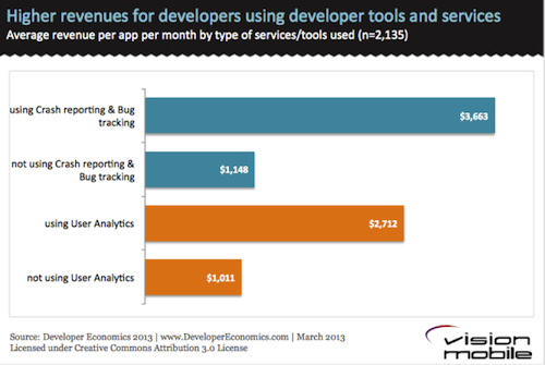 - 使用崩溃报告和 bug 追踪工具的开发者,比不使用此类工具的开发者的收入高出 3 倍。