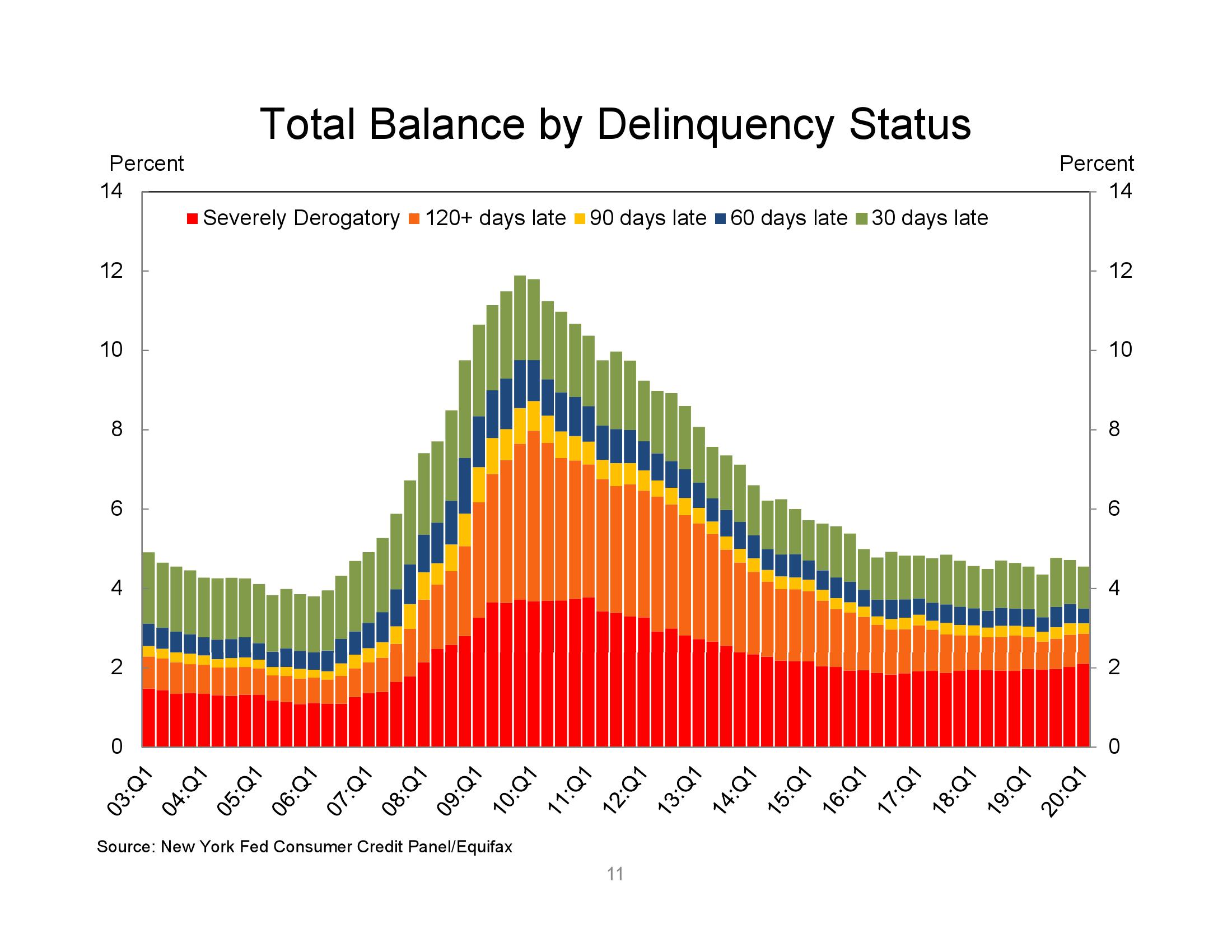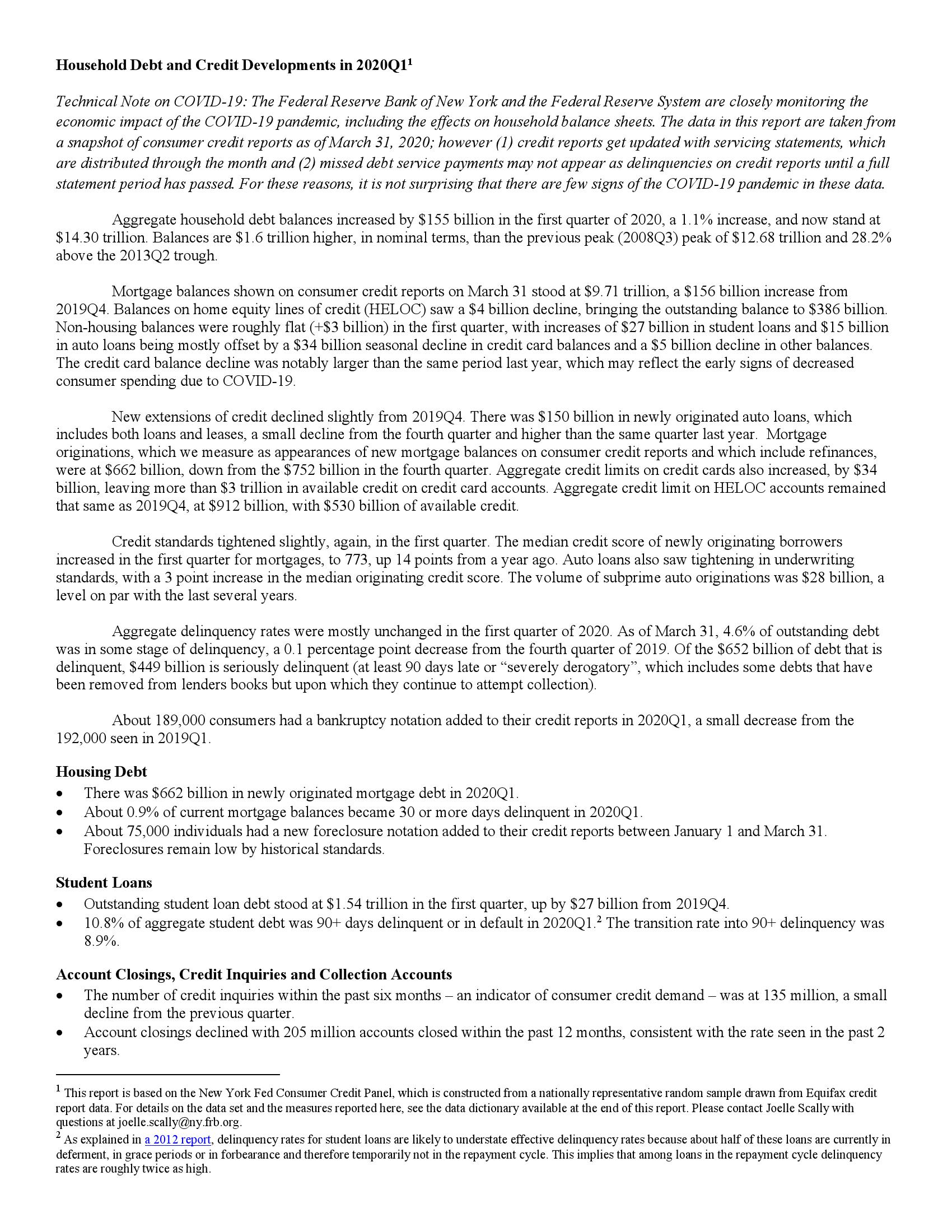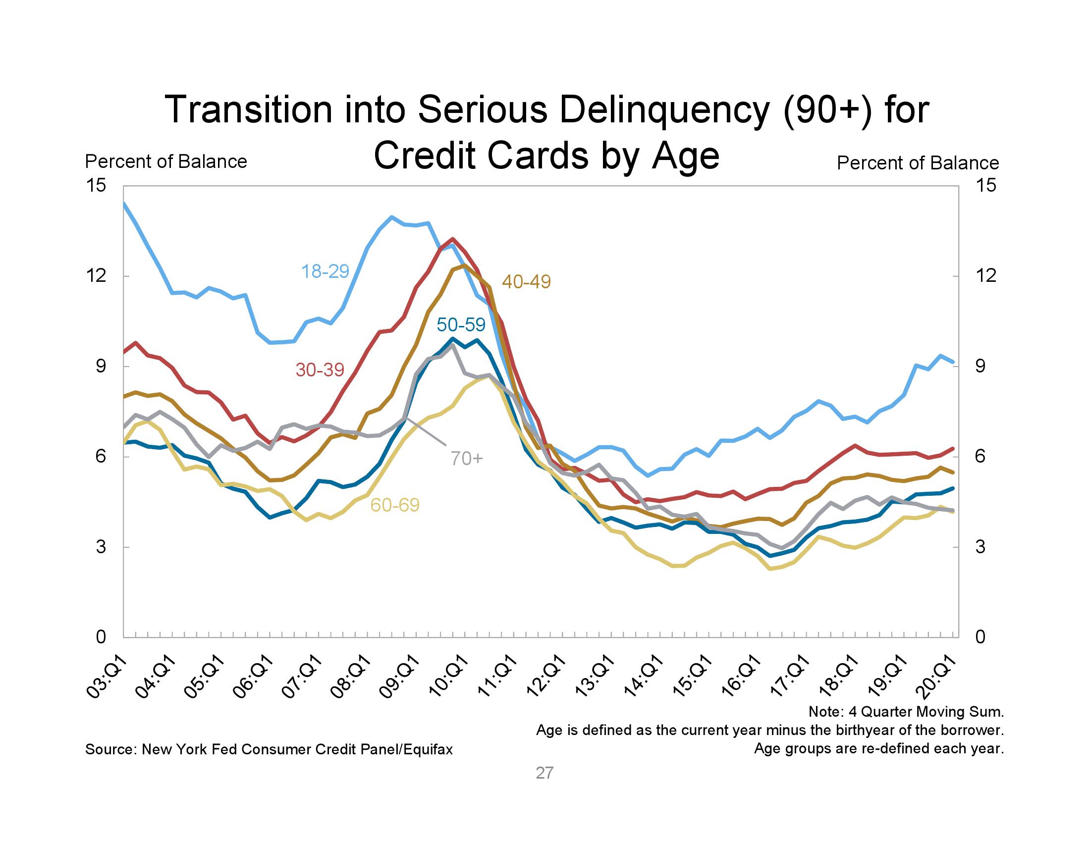 纽约联储在一份新闻稿中表示:“信用卡债务下降幅度明显大于去年同期,这可能反映出由于新冠疫情导致消费者支出减少的早期迹象。”