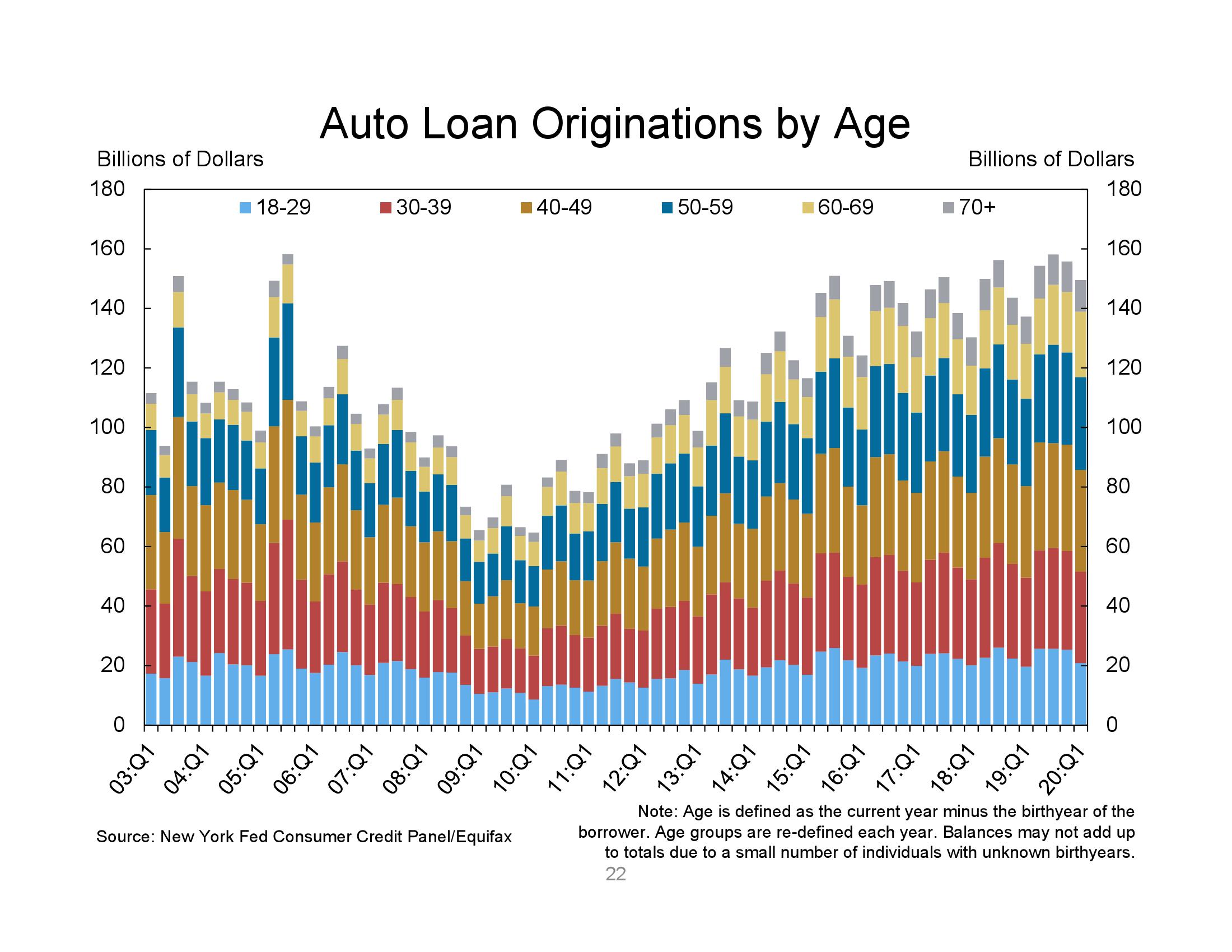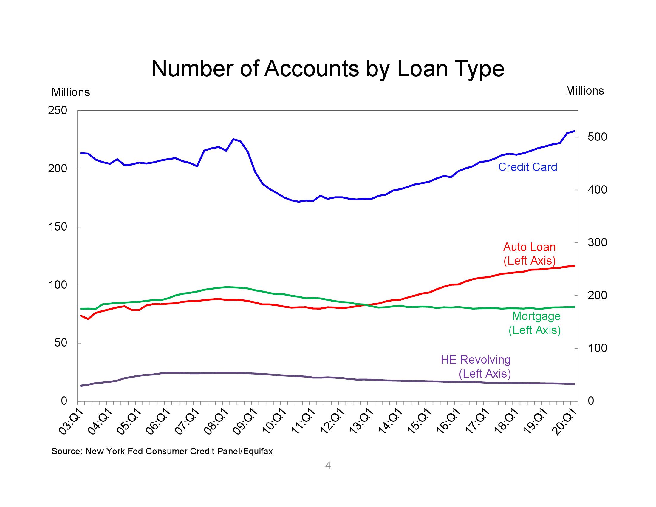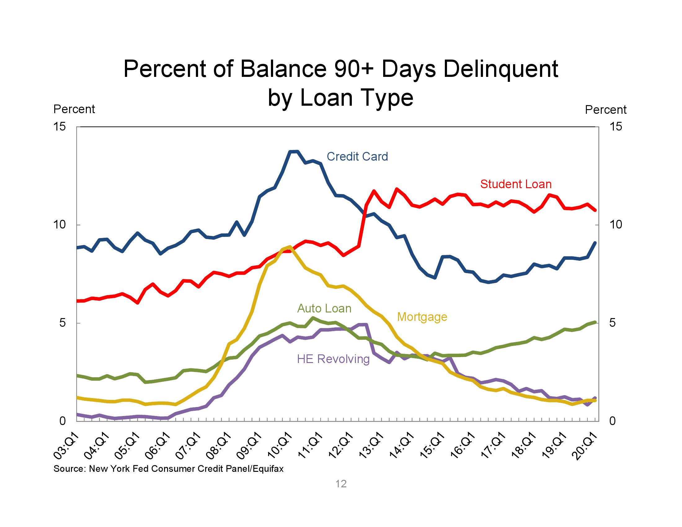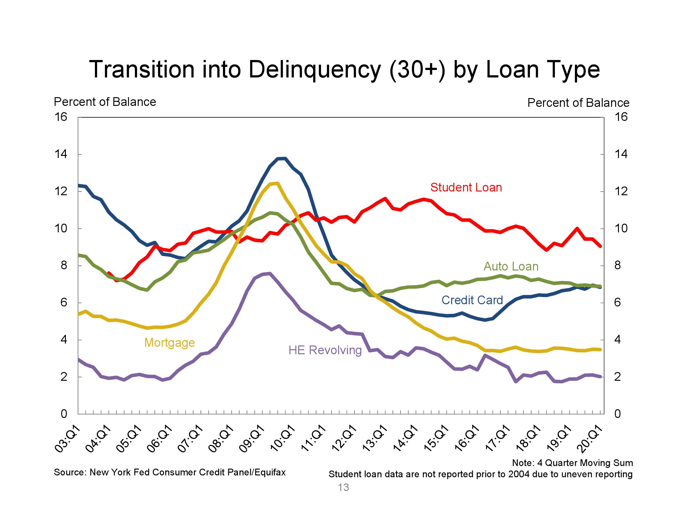 具体看来,一季度学生贷款增长270亿美元至1.54万亿美元,其中,约有10.8%的债务拖欠了90天或更长时间,整体债务拖欠率下降至4.6%;汽车贷款增长150亿美元至1.35万亿美元,信用卡贷款下跌340亿美元至8900亿美元。抵押贷款增长1560亿美元至9.71万亿美元。