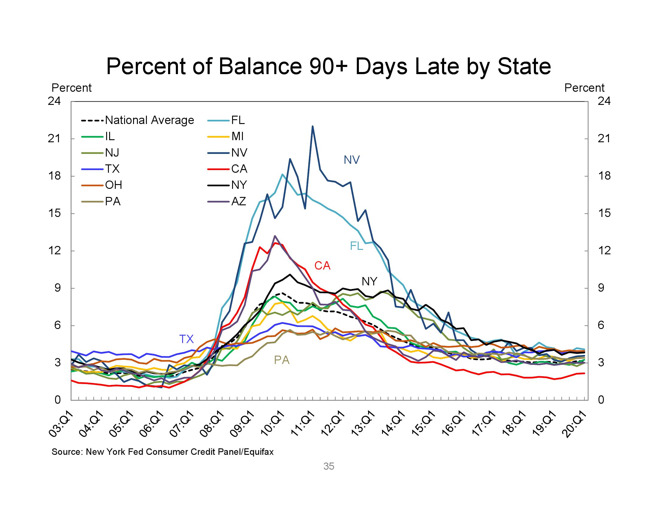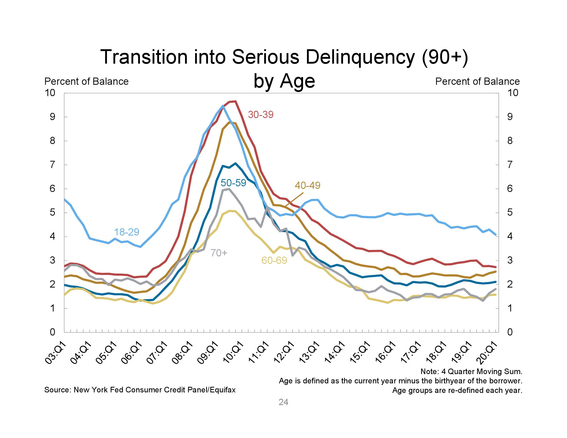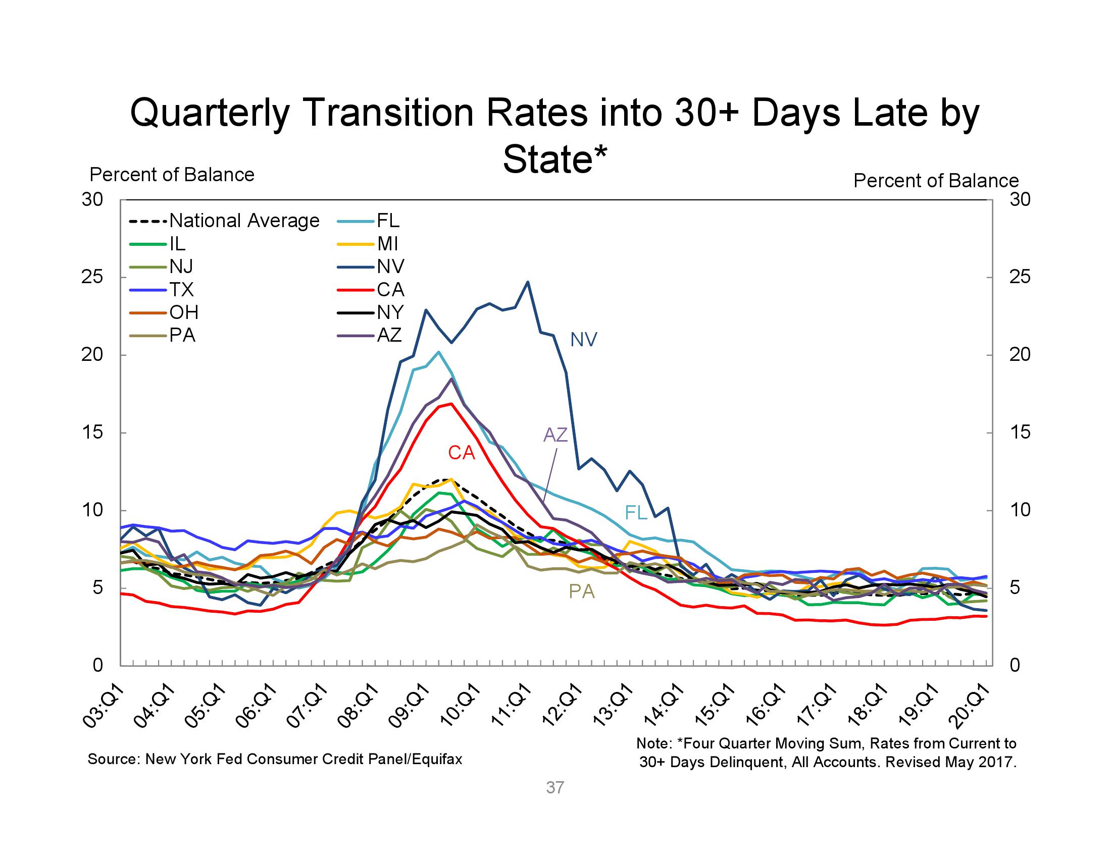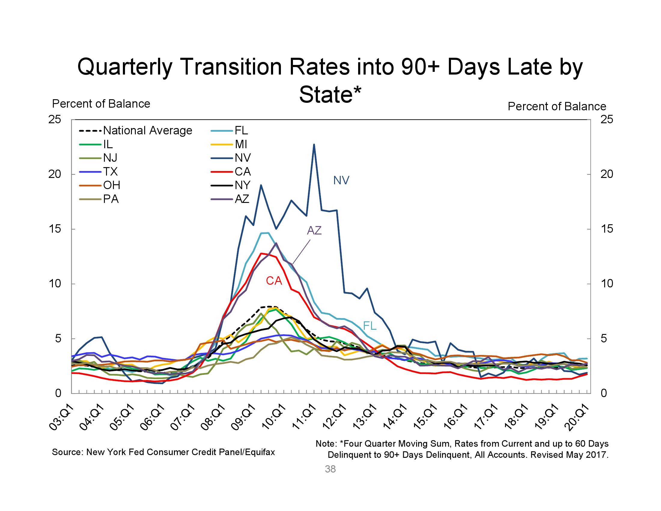 具体看来,一季度学生贷款增长270亿美元至1.54万亿美元,其中,约有10.8%的债务拖欠了90天或更长时间,整体债务拖欠率下降至4.6%;汽车贷款增长150亿美元至1.35万亿美元,信用卡贷款下跌340亿美元至8900亿美元。抵押贷款增长1560亿美元至9.71万亿美元。
