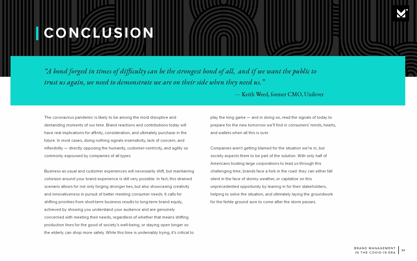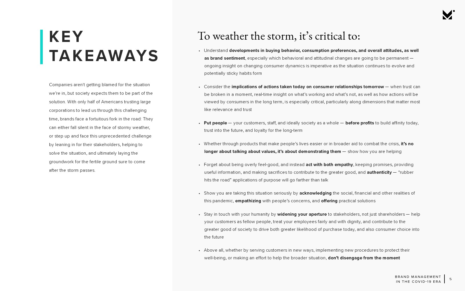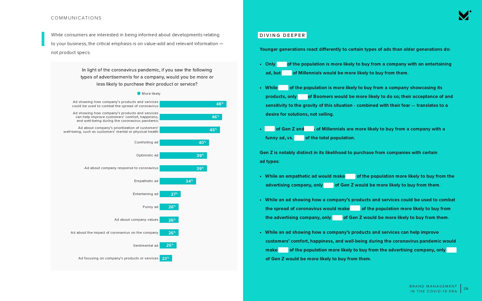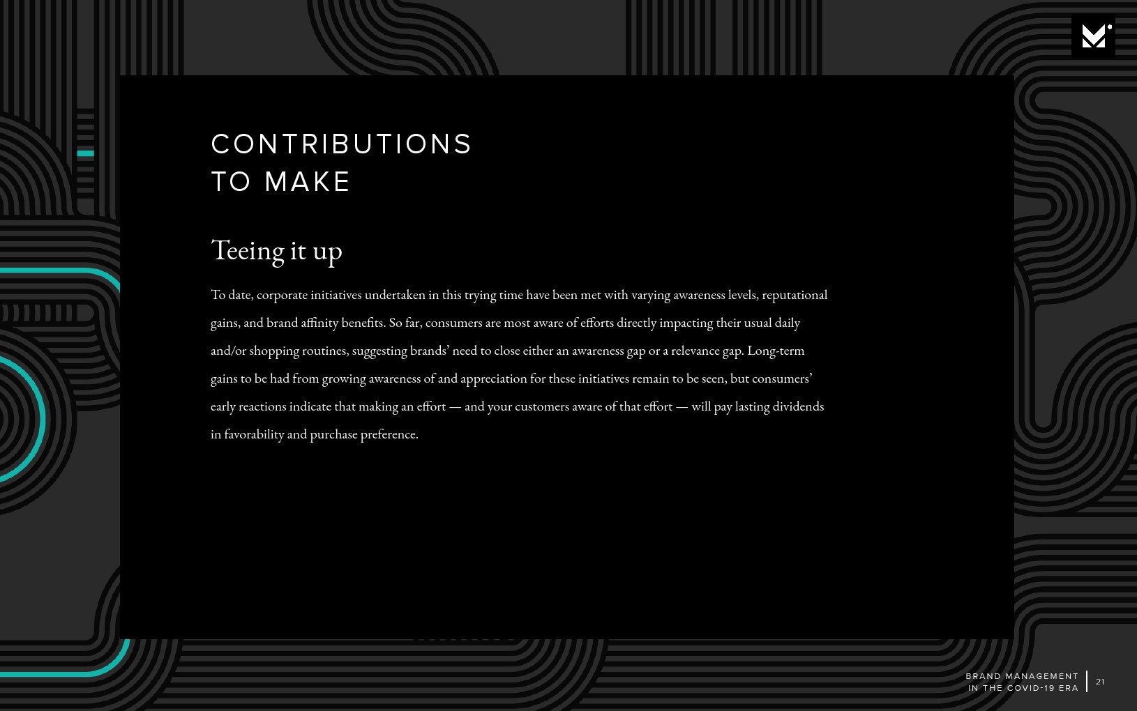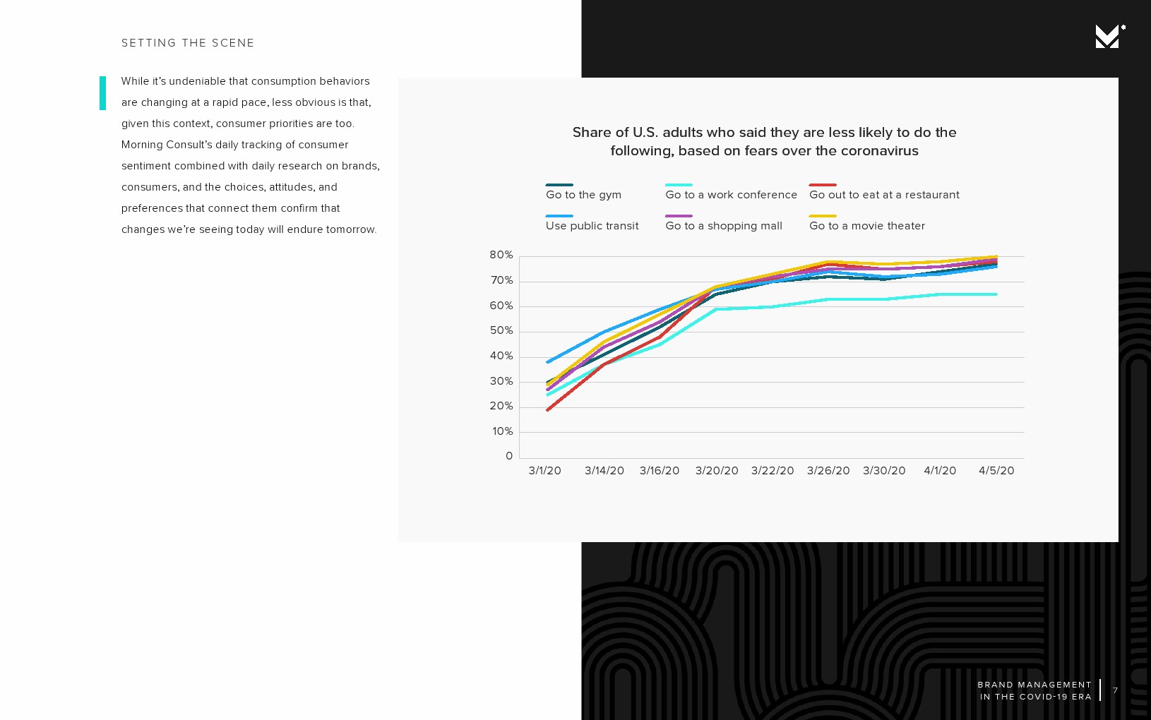 - 了解购买行为、消费偏好和整体态度的发展,以及品牌情绪,特别是哪些行为和态度的变化将是永久性的。对不断变化的消费者动态的持续观察势在必行。