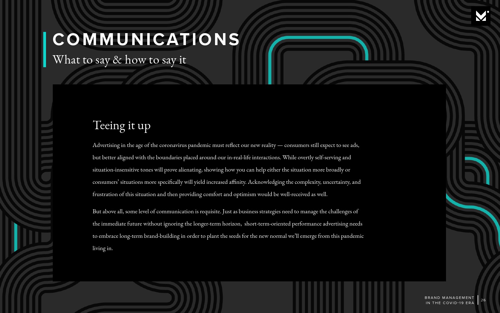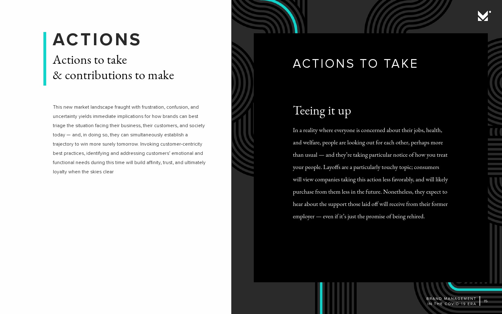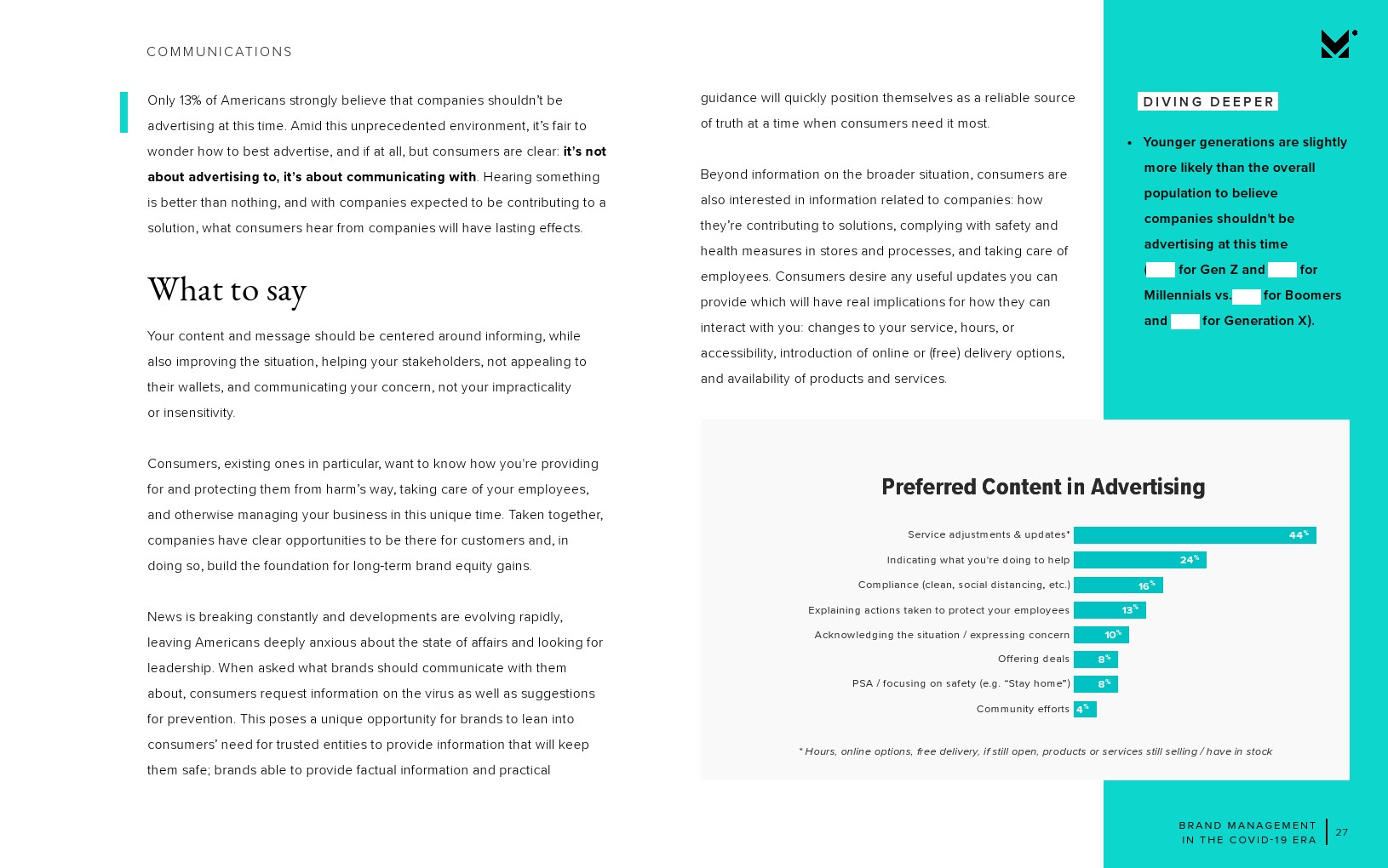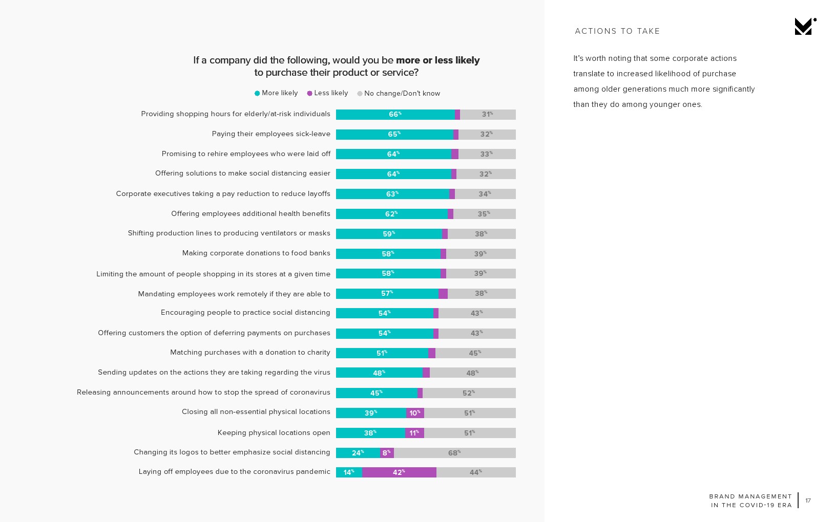 - 无论是让人们的生活变得更容易的产品,还是广泛地抗击危机,现在不是谈论价值的时候,而是向人们证明“你”正在帮助他们。