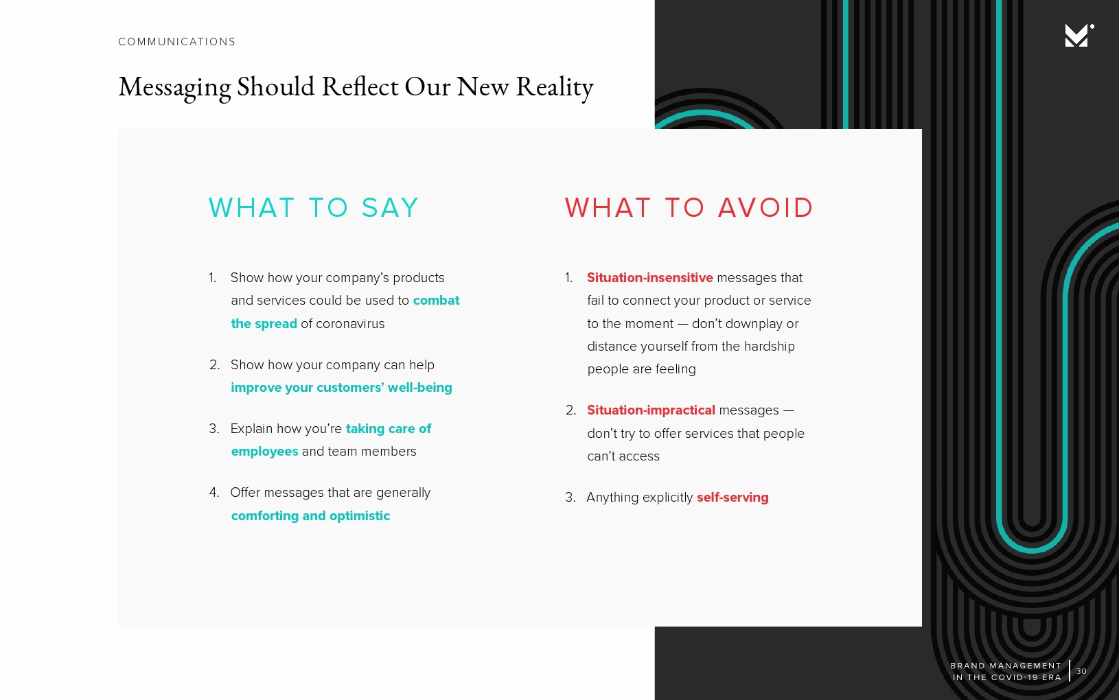 - 通过承认这一流行病的社会、金融和其他现实影响表明你正在认真对待这一情况,与人们感同身受,并提出切实的解决方案。
