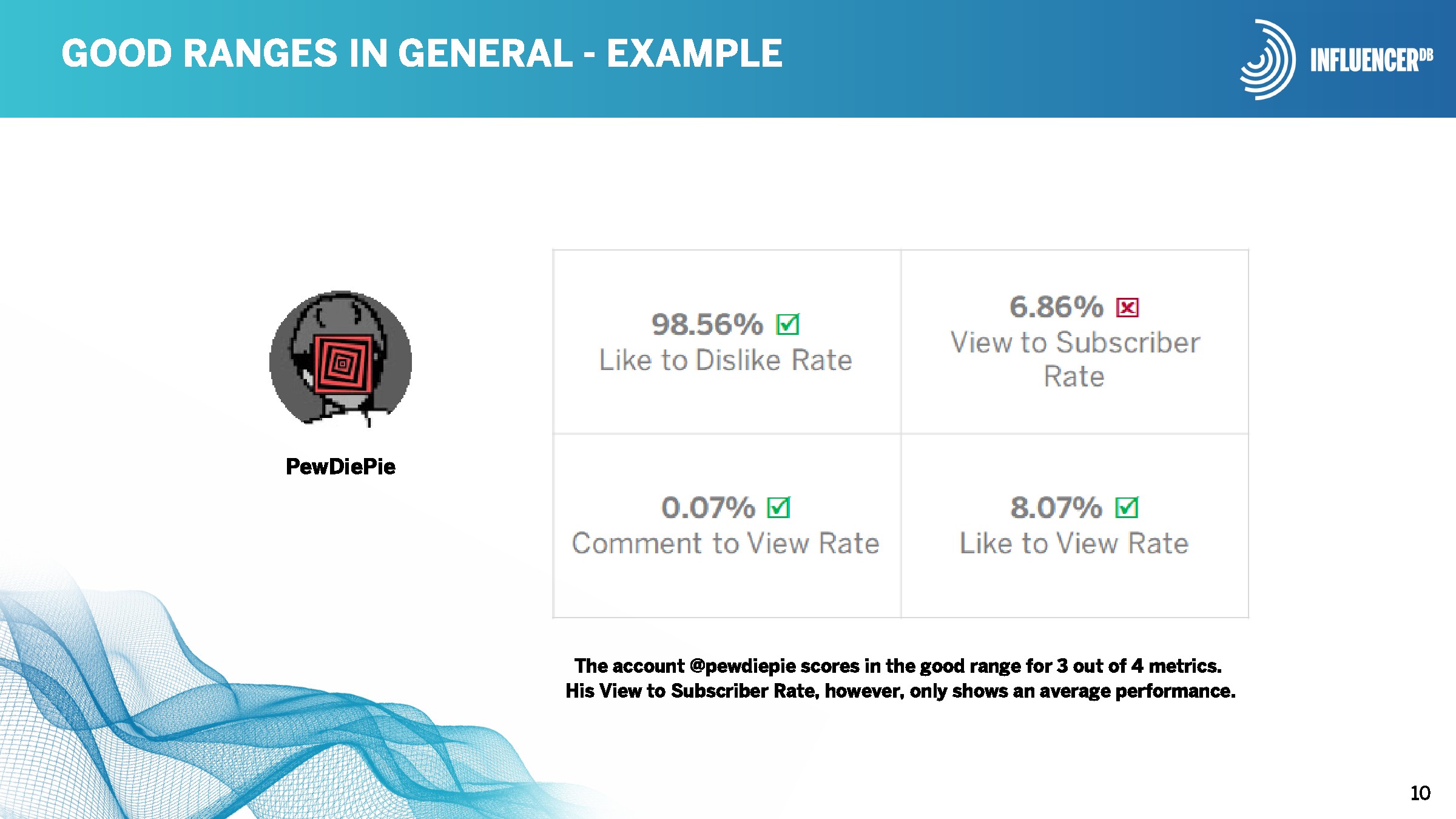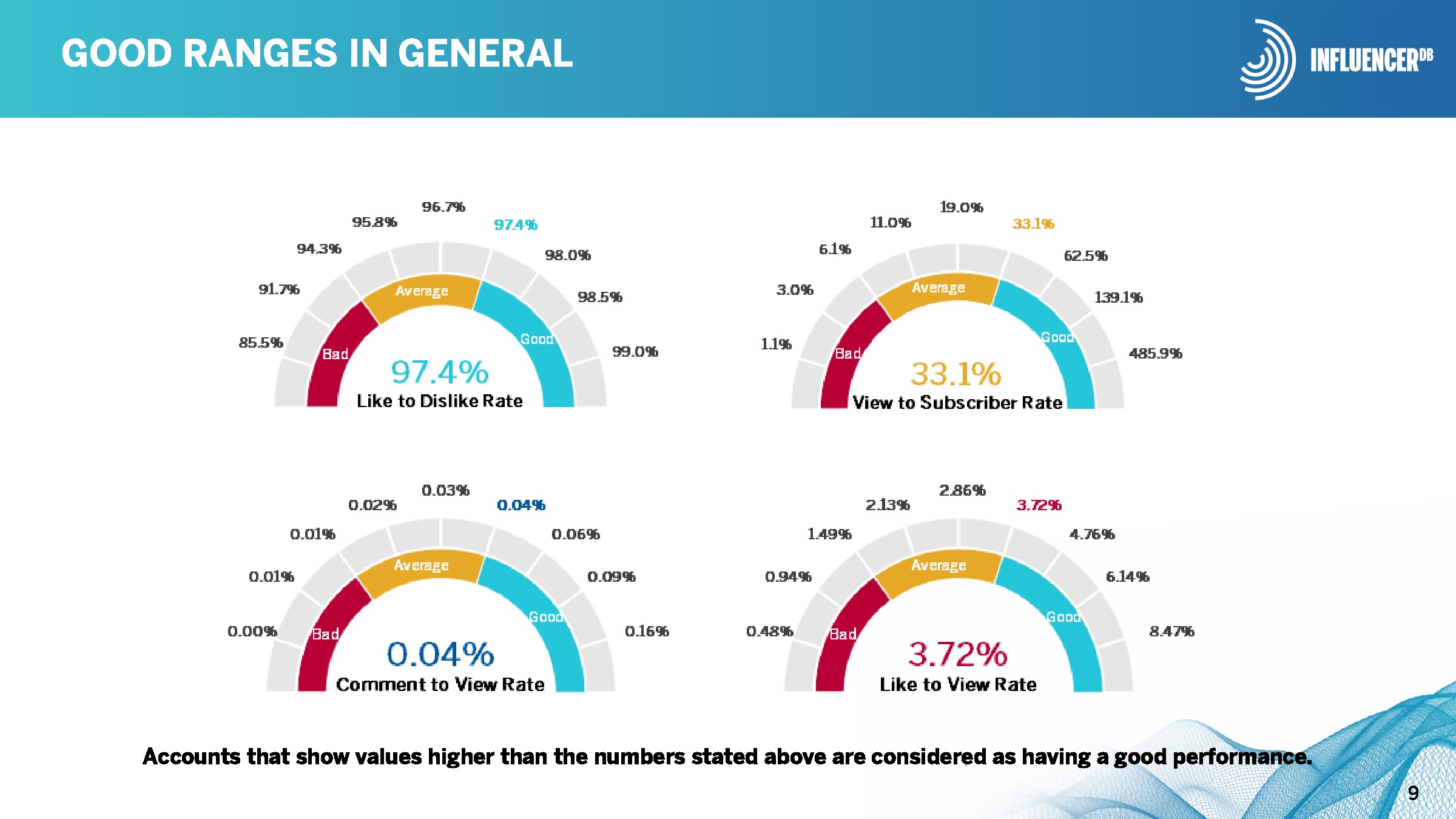 同样,那些预期订阅率(观看次数与频道订户数量的比率)为33.1%或更高的意见领袖的表现也在良好范围内。