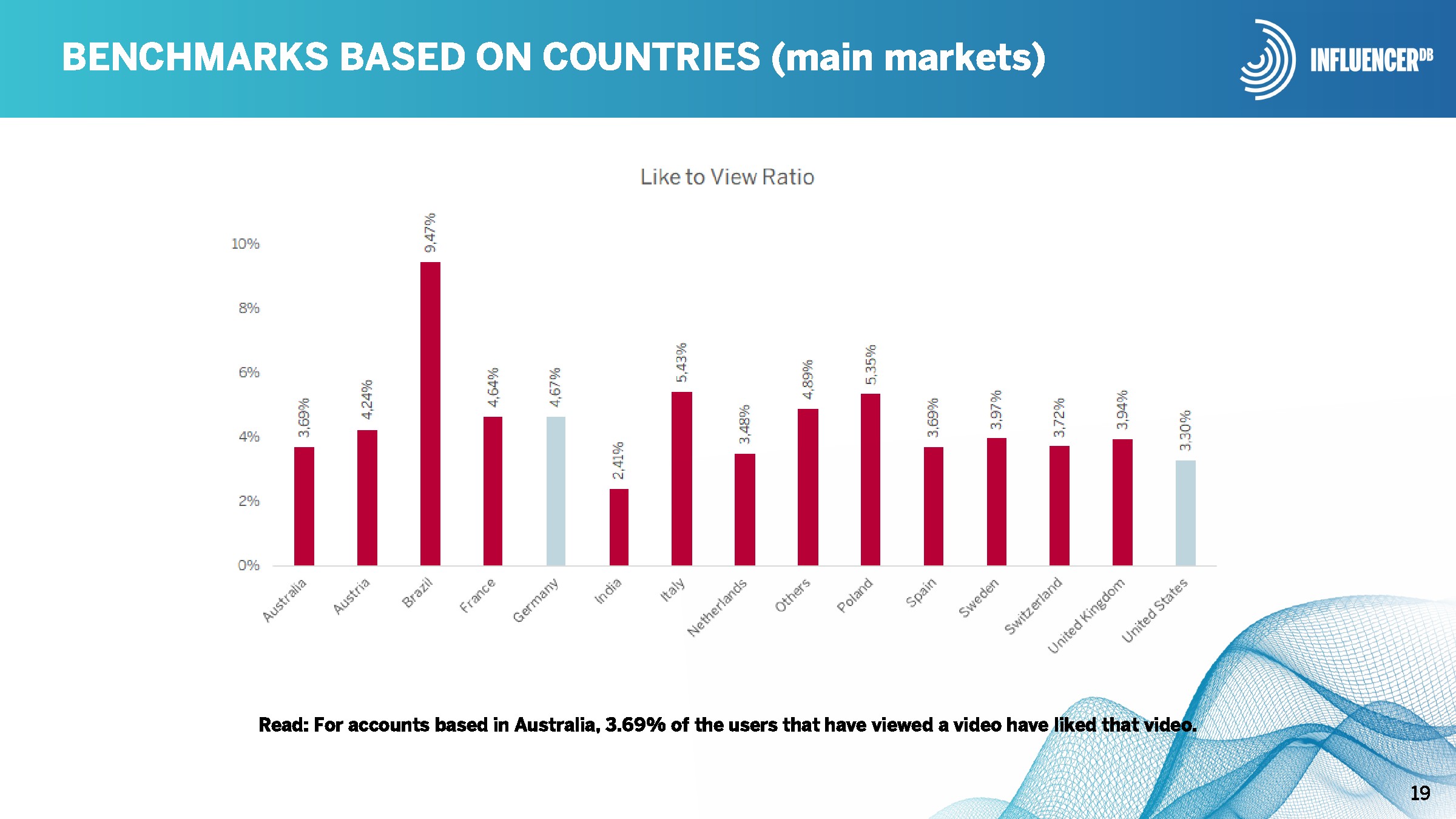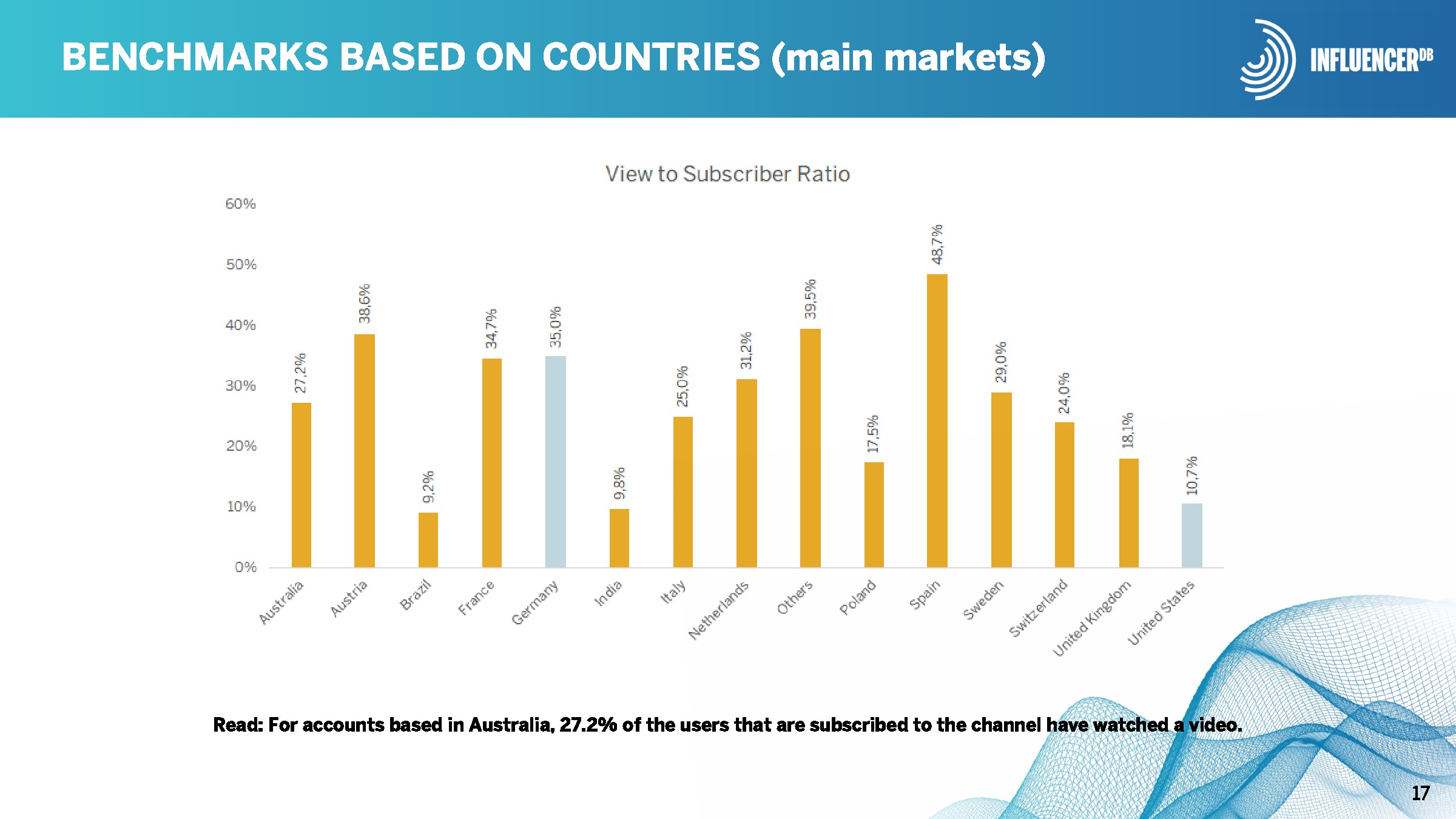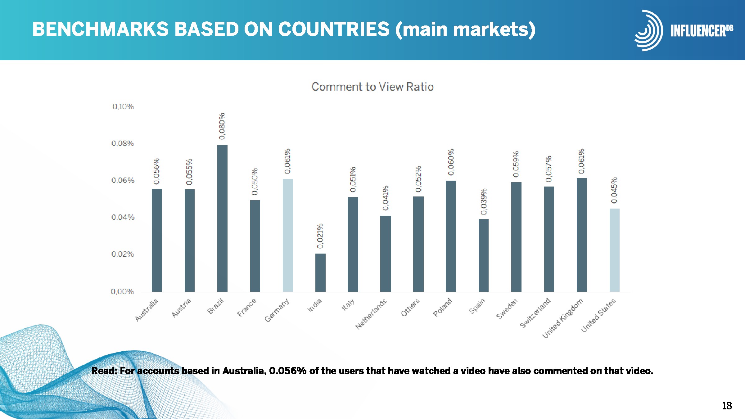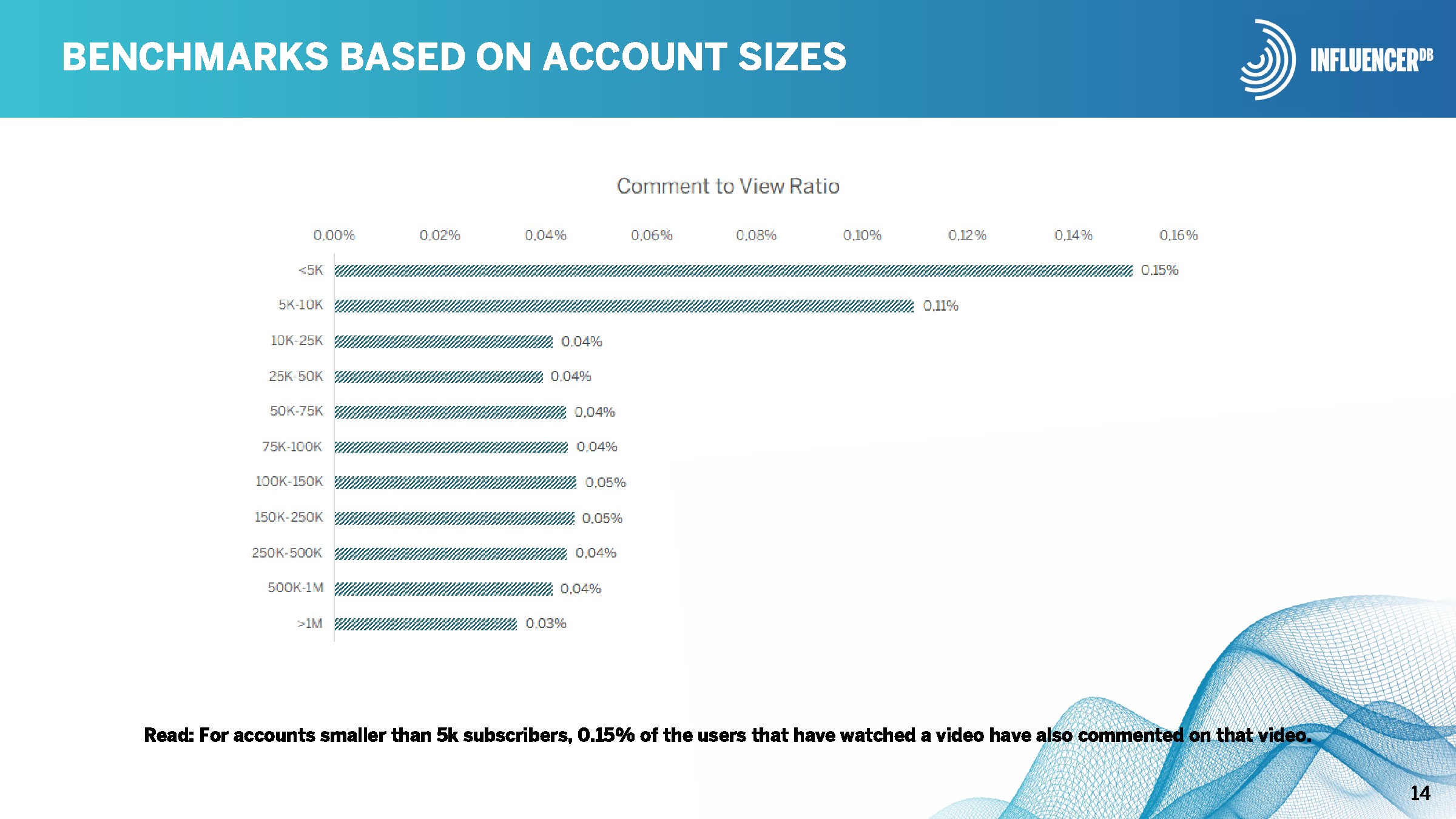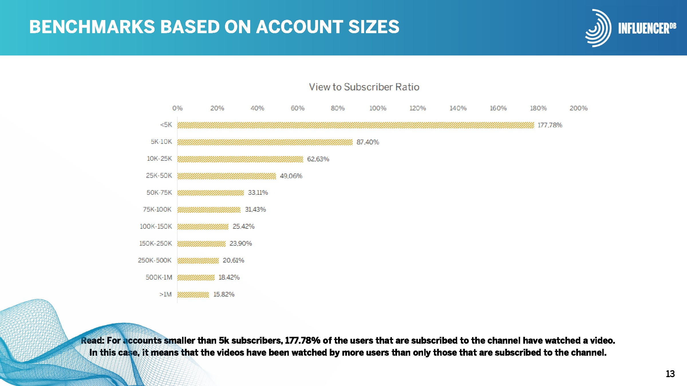 报告显示,那些粉丝不到5千的意见领袖的追随者中有177.78%看过视频。这意味着相对于订户数量,视频拥有更多的观看次数。