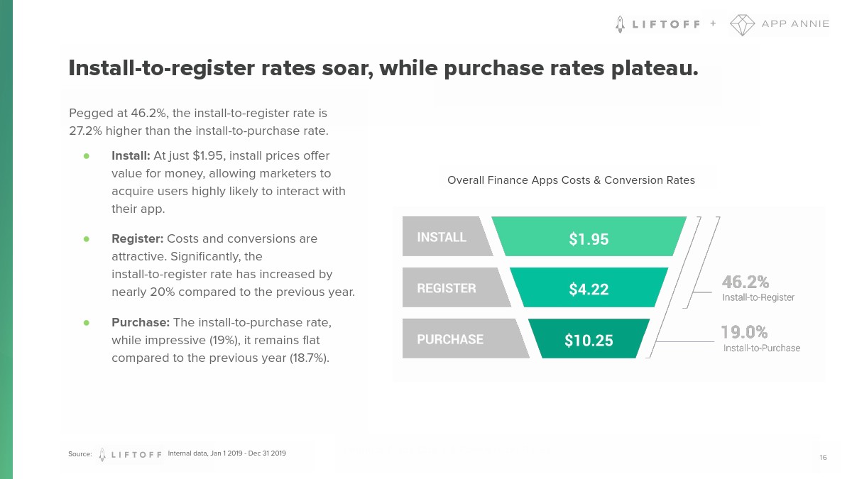 健康的安装注册率为46.2%。但用户的热情会在渠道中得到深化,19%的安装购买率是令人鼓舞的,但应该会激励营销人员达到更高的水平。