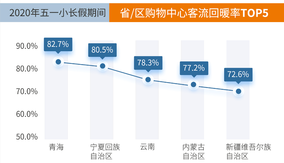 青海、宁夏回族自治区、云南、内蒙古自治区、新疆维吾尔自治区五个省分别以82.7%、80.5%、78.3%、77.2%、72.6%位列回暖前五。