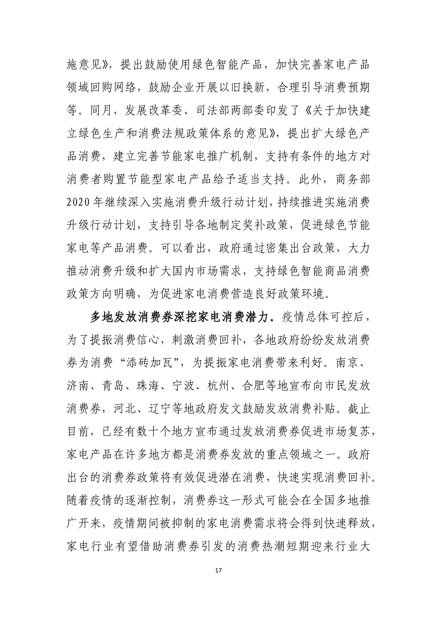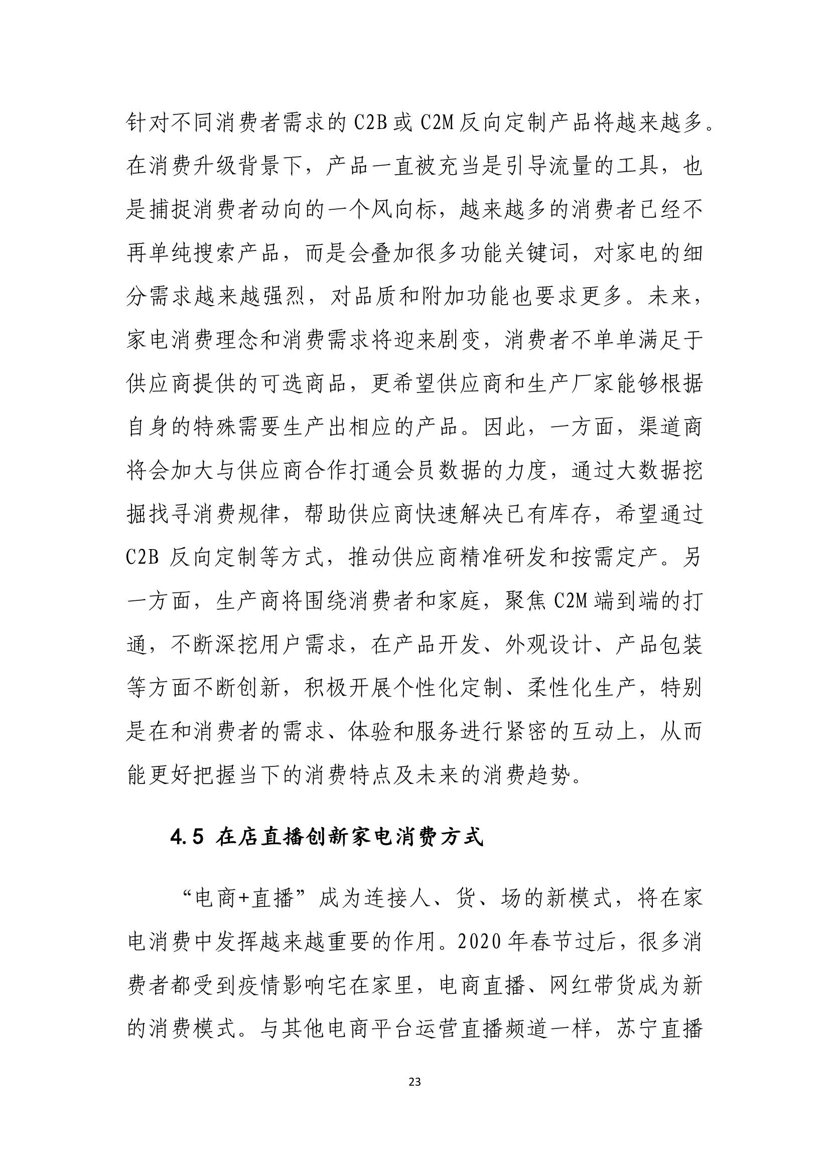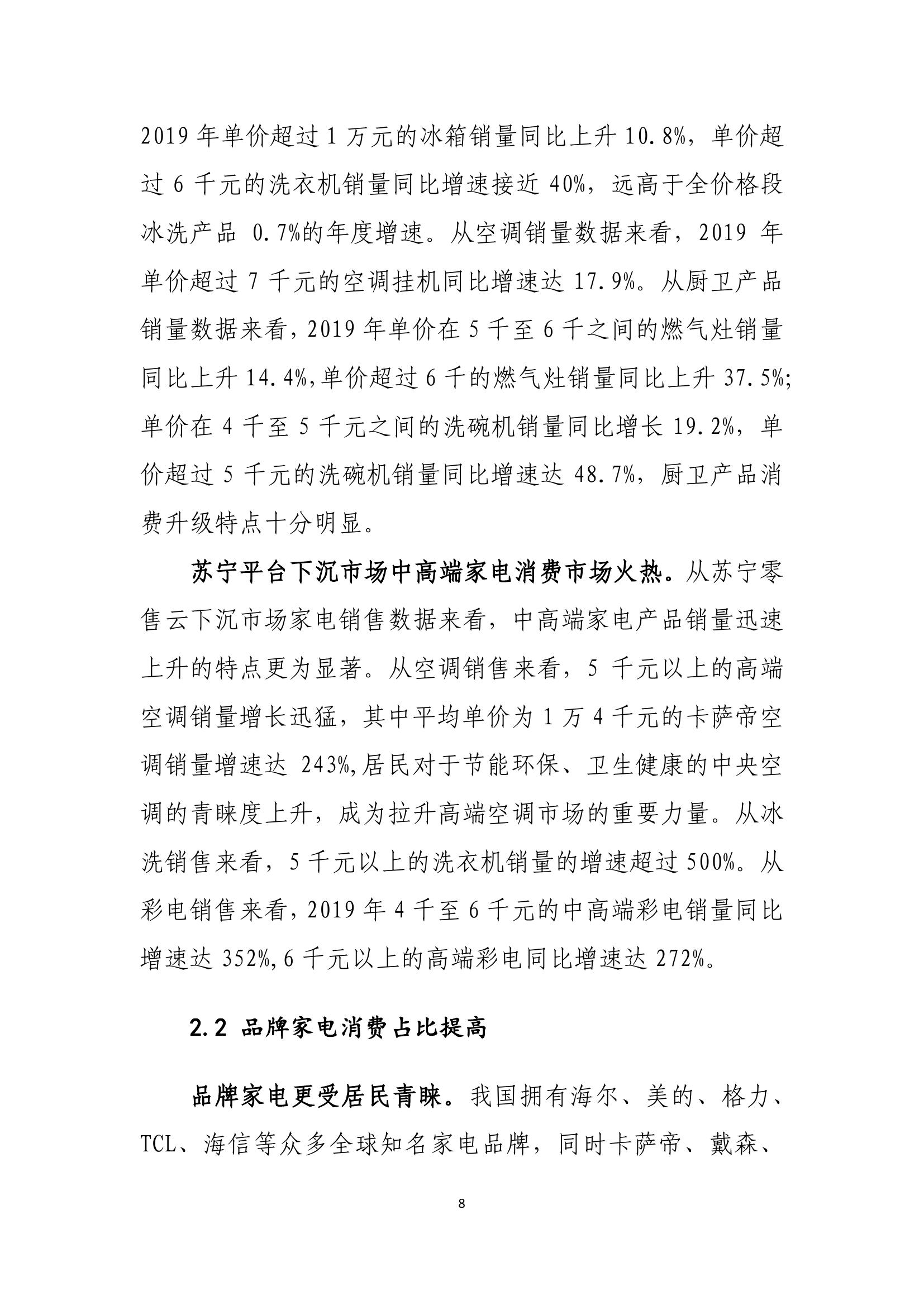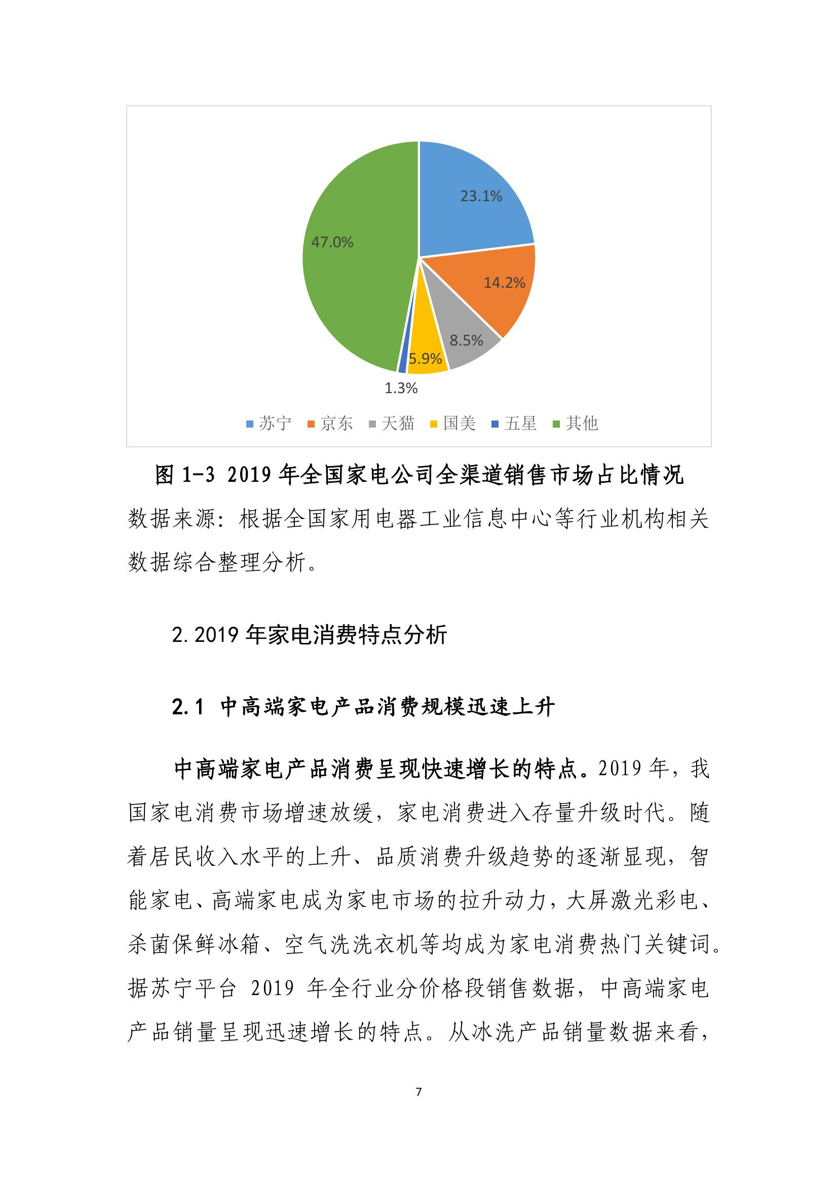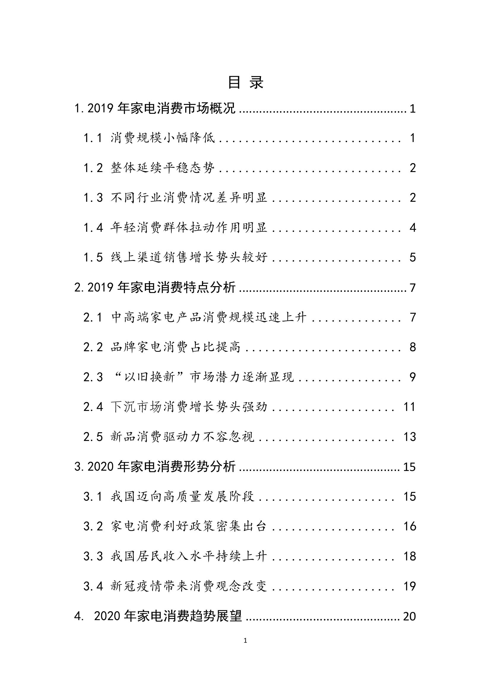 商务部研究院:2020年家电消费趋势报告 商务部研究院发布《2020年家电消费趋势报告》,综合分析2019年以来家电行业发展现状、消费政策、疫情影响等形势,对2020年家电消费趋势进行权威判断。 PDF版本将分享到199IT知识星球,扫描下面二维码即可! 更多阅读:frog:2020年趋势报告商务部研究院:RCEP对区域经济影响评估报告商务部研究院:中国与阿拉伯国家经贸合作回顾与展望2022奥维云网:2025年国庆大屏电视销量预增58%,激光投影增83%InMoment:2018年零售客户体验趋势报告爱立信:2019年十大热门消费者趋势报告商务部研究院:2019年电子电器产品消费报告商务部:2020年春季国际商品市场走势欧盟委员会:2020年欧洲经济预测(春季版)未来今日研究所:2020年科技趋势报告(366页)国际移民组织:2020年世界移民报告世界经济论坛:2020年全球风险报告2020年全球经济展望:缓慢增长,政策挑战联合国:2020年世界粮食安全和营养状况报告联合国贸易和发展会议:2020年世界投资报告(268页)
