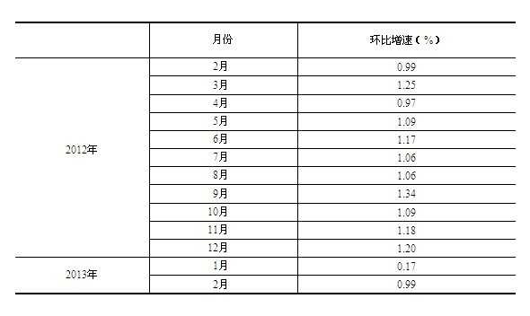根据季节调整模型自动修正的结果,对2012年2月份以来的社会消费品零售总额环比增速进行修订。修订结果及2013年1、2月份环比数据如下: